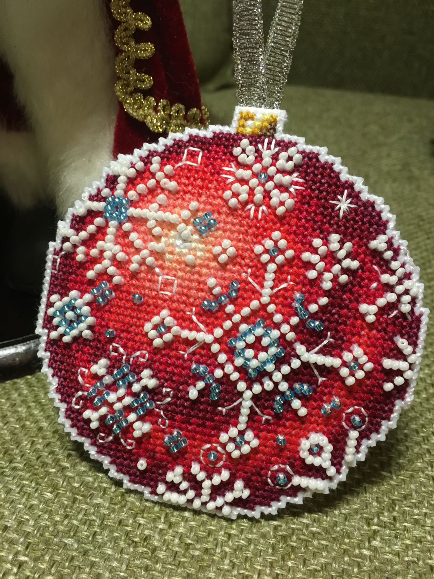 4 января 2018 Привет всем))) Всех с праздниками, и наступившими, и наступающими! Всем желаю всего самого хорошего! Как-то я потихонечку пытаюсь вернуться на форум)))) У меня вышился второй шарик от МП Студии, красный, называется «Морозный рубин». Здесь крупных бусин нет, здесь есть бэк, лёгенький совсем. Тоже немножко набила халафайбером, пухляш немножко. Здесь рисунок разный с каждой стороны. Ну и этапы бисер чуть крупнее вторая сторона Ну и готовый))) Продолжение следует))) Наталья2013, Alina1989, Морская и 8 других сказали спасибо Поделиться сообщением Ссылка на сообщение