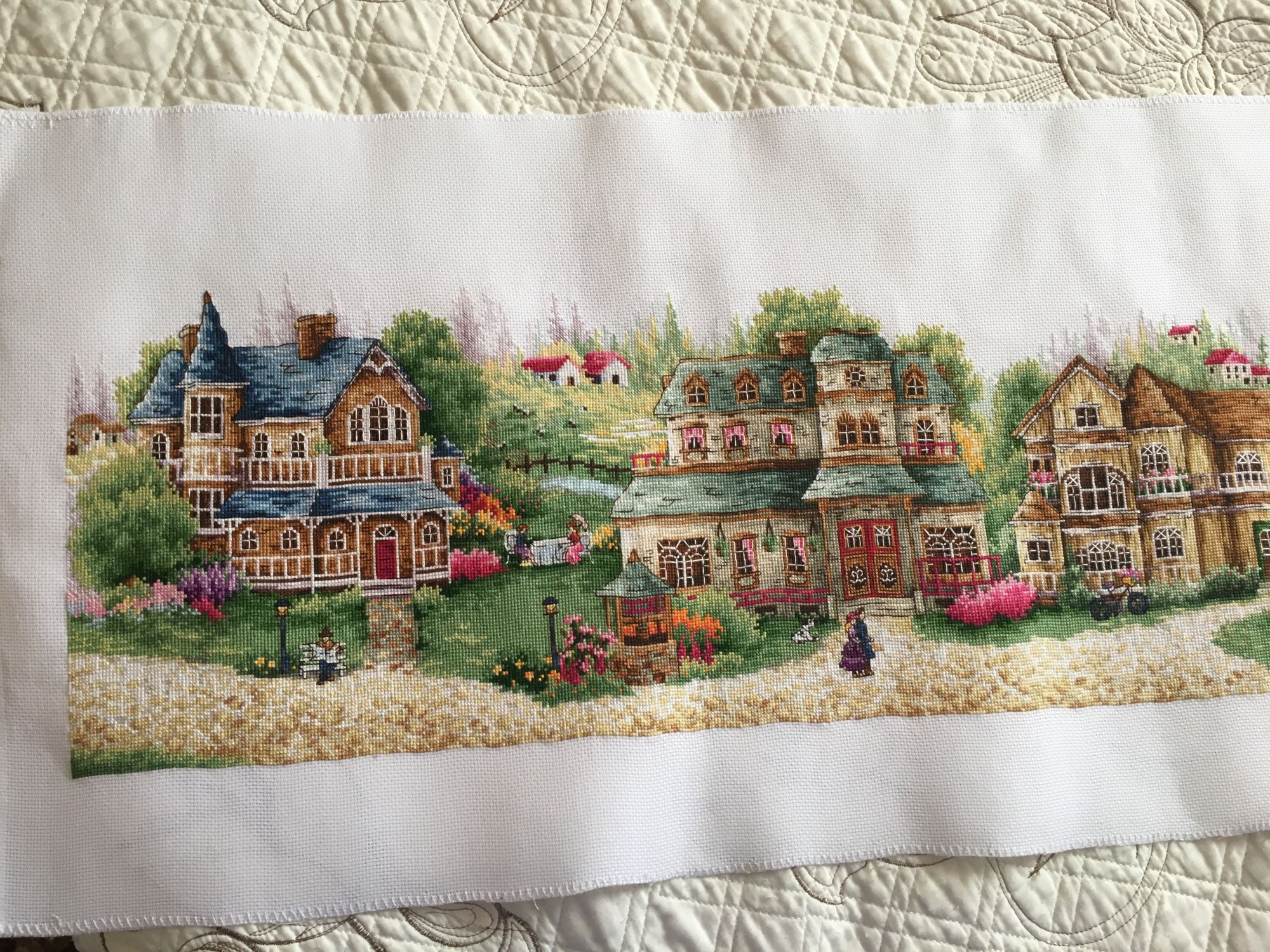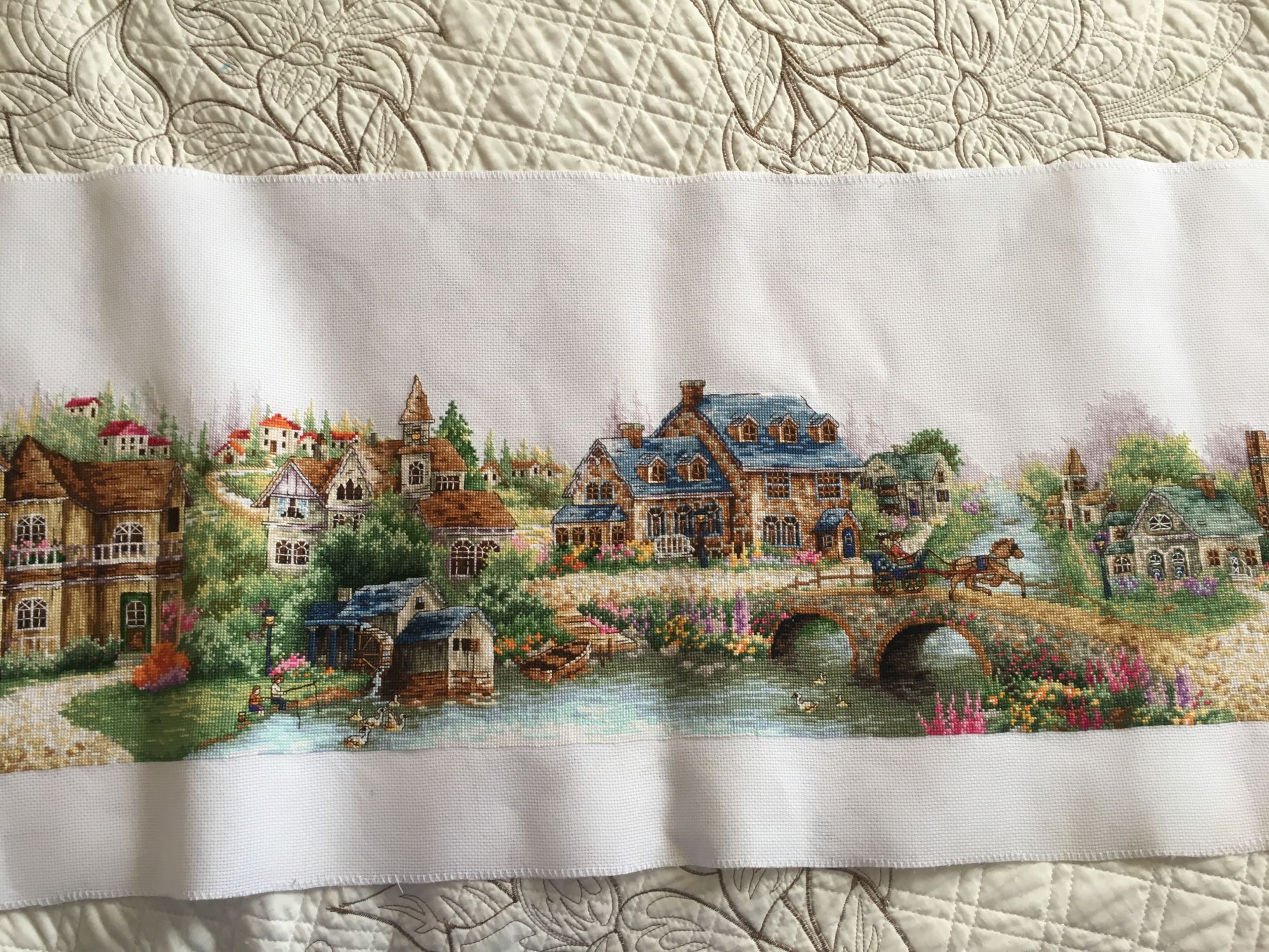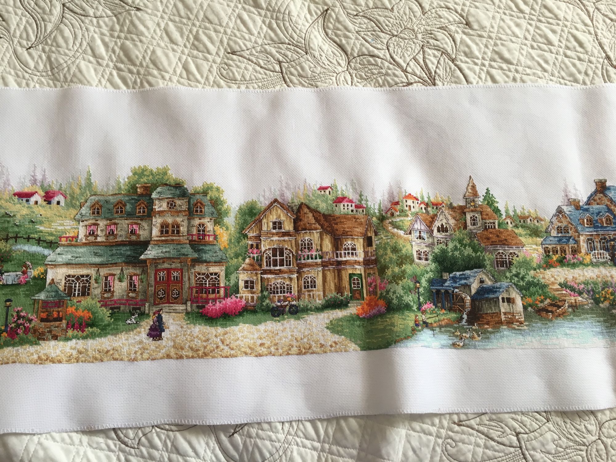 3 февраля 2018 Всем привет! Ура! Ура! Ура!!!! Сегодня у меня долгожданное позеленение галочки)))) ДЕРЕВЕНЬКА закончена!!! Этапы строительства завершающего домика а вот сколько ниточек осталось))) на еще один отшив не хватит, но много)))) Одного цвета мне не хватило, но есть у меня ощущение, что я потеряла одну бобинку (мулине хранились на бобинках, не умещались на органайзер). Не случалось со мной такого никогда... но... в остатках быстро нашла подходящую ниточку)))) В самом начале, я же решила поменять канву на 16, сложно было найти отрез канвы подходящей ширины, нашла с трудом, но почти впритык, сильно переживала, но отступы по краям остались очень приличные))) Я так рада, что она завершена. Но тут такие двойственные чувства... Я счастлива, что она завершена, Очень! так мечтала увидеть готовую!!! Но... я уже за ней скучаю... за то время, что я ее шила, все вышивальное пространство было под нее организовано... Специально под нее была куплена рама Elbessee, ну которая с винтами. Станок эстонский Оманик куплен был не для Деревеньки специально, давно его хотела, но если бы не Эстонец, раму бы я не удержала, поэтому Деревеньку и реанимировала, что купила этот станок))) Много говорю, а смысл такой - жалею, что Деревенька закончилась! Вот такой парадокс))) В завершающем отчете по работе всегда выкладываю фото того, что получилось, а сейчас не получается... Постараюсь в несколько фото показать, но цвета искажены, она в жизни поярче. Я всегда вышиваю только то, что очень нравится, поэтому у меня все работы любимые... Но Зеленая Деревенька от DOME теперь в числе фаворитов однозначно!!! Грёза, Helga5437, irinka-mandarinka и 10 других сказали спасибо Поделиться сообщением Ссылка на сообщение