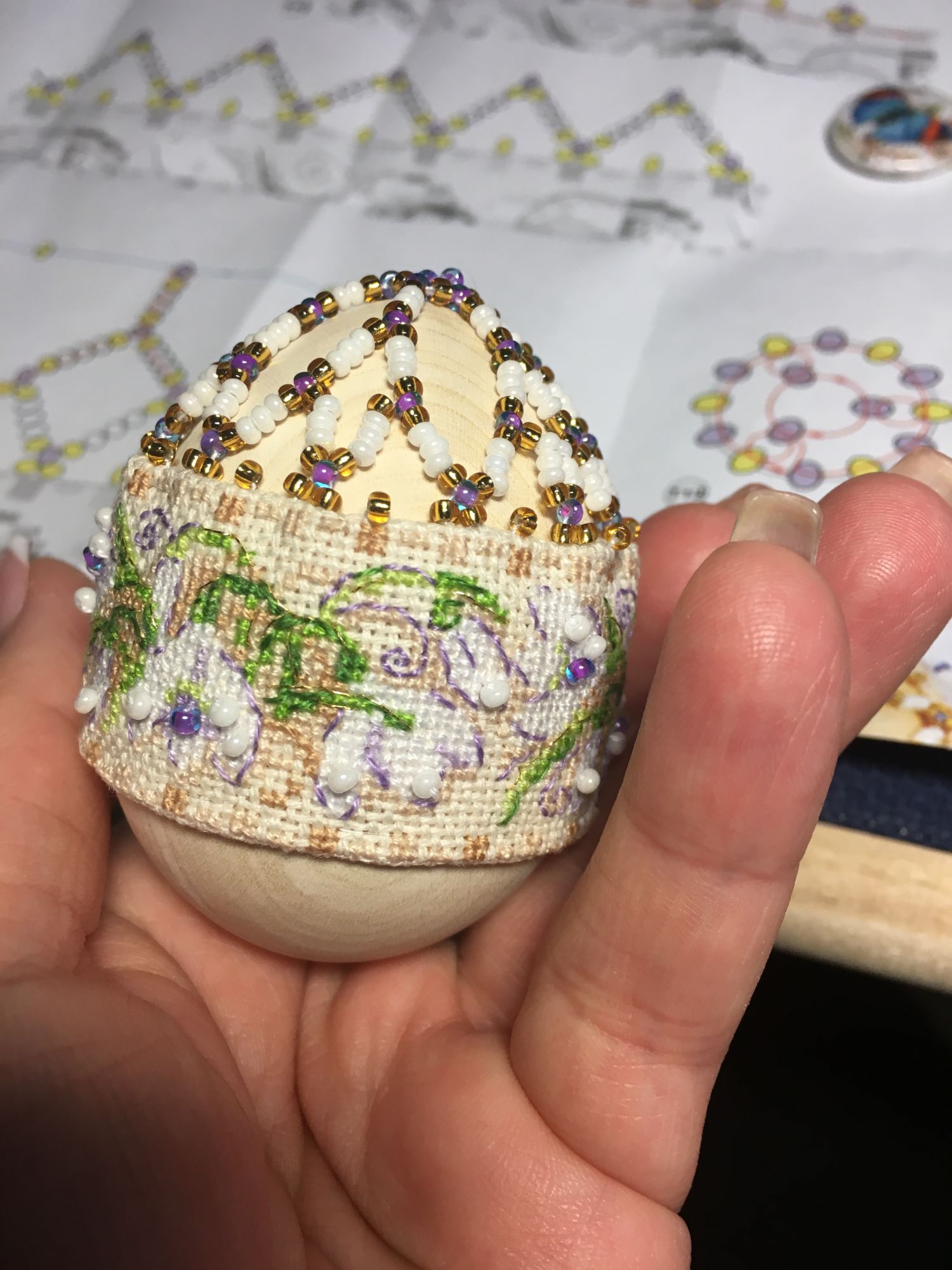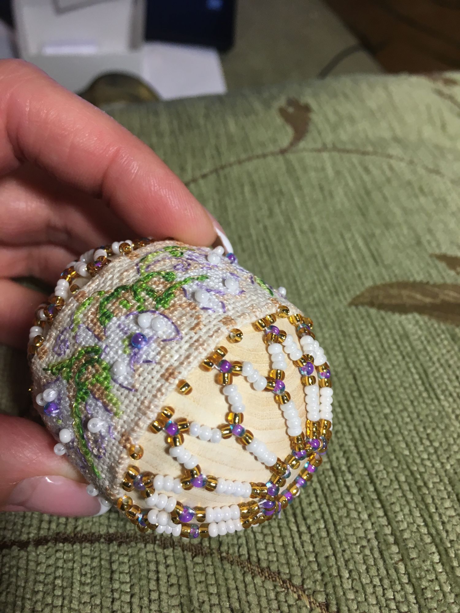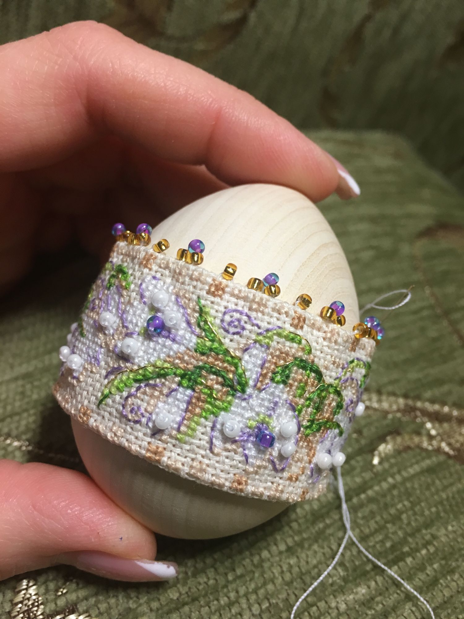 16 февраля 2018 Всем приветик! Я сегодня не просто так, а хочу ещё одну гаечку, и не простую, а золотую зелёную)))))) В прошлом году я купила несколько Пасхальных яичек от Риолис, одно сплела, второе было вышивальное, в нём было сделано с десяток крестиков, потом завалили работой, я поняла, что к Пасхе не успею и отложила на этот год. В этом году решила начать пораньше, чтобы наверняка успеть, поэтому после Деревеньки запараллелила с Луной и яичко))) Итак, Риолис В212, Пасхальное яйцо Подснежники. О материалах: Lugana 25, мулине Anchor 8 цветов, золотой металлик, бисер 3 цвета. Вышивается в 1 ниточку полным крестиком через 1 нить основы. Блин, давно не шила петитом... Но (несмотря на сложности) ооооочень понравилось шить! Я начала, как обычно, из центра, и зря! там белым по светлому, да через 1 нить, вообще не видно! Но быстро сообразила сначала вышить видимые цвета, и процесс полетел. Кстати замечу, размер далеко не маленький в крестиках 146*26. Зато так меленько, нежненько, цвета обожаю эти!!! Подготовка успела вышить в прошлом году и этот год, понеслась... Готовая вышитая часть Пришиваем бисер Ну и готовый результат вот Ну что сказать, мне очень нравится! Я так боялась не успеть опять, что Масленицу отгулять не успели, а я к Пасхе готова уже)))) Ну всем хорошего настроения и хороших выходных! nata2017, -Solovey-, НатальяП и 7 других сказали спасибо Поделиться сообщением Ссылка на сообщение