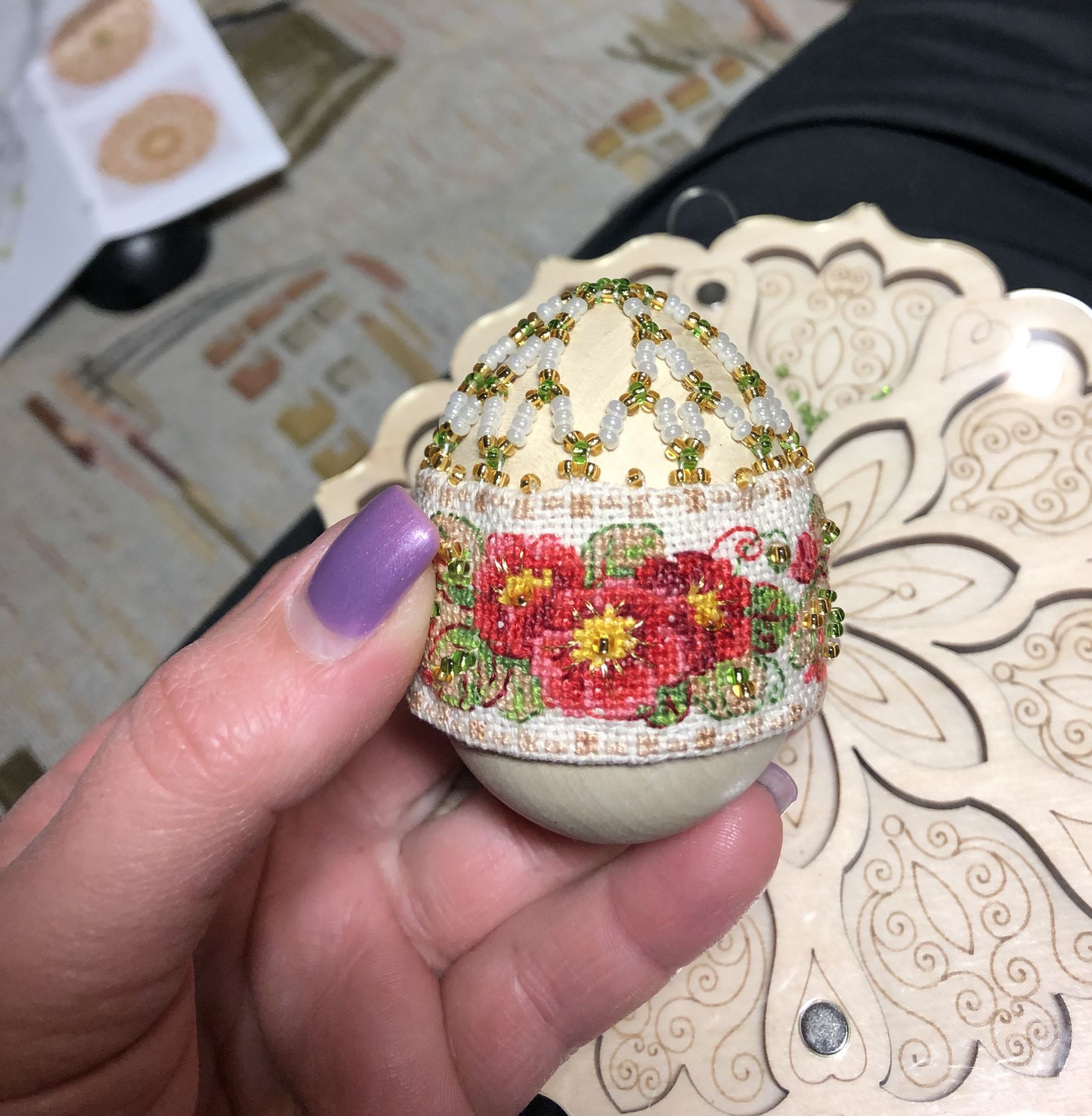 26 апреля 2019 Всем привет и отличного настроения! К нам на Юг вернулась настоящая весна, с цветением и ярким солнышком)) Настроение подпрыгнуло, хочется жить и радоваться... но так, наверное, у всех) Даже собралась показать дошитое несколько дней назад Пасхальное яйко от Риолис. Итак, Риолис В195. Вышивается на 25 Lugana через 1 нить основы, мулине Anchor 9 цветов, 3 цвета бисера, 1 цвет металлик. Это второе яичко от Риолис, оно шилось легче Подснежников, цвета всё-таки поярче.Примулы вышились очень быстро, процесс приятный, результат радует - яркий и нежный одновременно. Как это было: Готовый орнамент без бэка теперь бэк Теперь во всей красе: бэк, металлик и бисер Сборка несложная и интересная Ну и готовое Оба яичка вместе Я очень-очень довольна)))) Буду продолжать к следующему празднику однозначно! Ну и покажу, как оформила Шар любви от Земляничной полянки (Nightly Edelweiss). Освободилось местечко в спальне на стене, где висят работы в цветочно-романтическом стиле, очень захотелось туда эти розочки, поэтому рамка-пяльцы... И недавно попробовала ракраску по номерам, давно хотела. Очень понравился процесс. Но если выполнять строго по шаблону, результат оставит вопросы, поэтому немного дорабатывала от себя. Это был первый опыт, строго не судите))))) Ну вот и все новости. Всем самого хорошего настроения. Тепла в душе и на улице! Каори, Juliay, МарСанна и 8 других сказали спасибо Поделиться сообщением Ссылка на сообщение