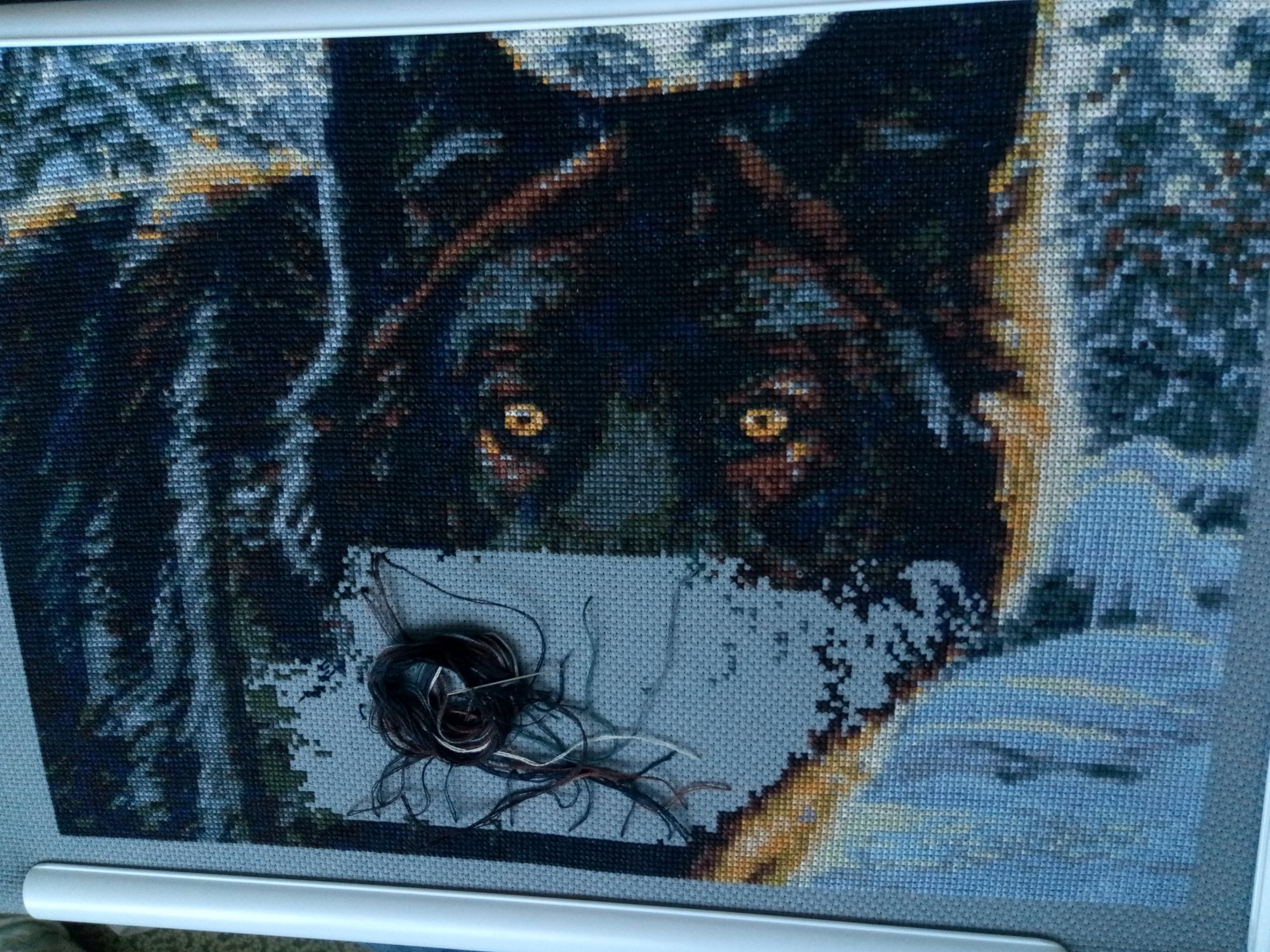 5 ноября 2018 Итак, прошлое сообщение по идее должно было стать лишь началом этого, но благодаря чьим-то кривым рукам оно вылилось в отдельное и самостоятельное. Это подстегнуло меня поскорее написать отчет, чтобы не заманивать вас в тему попусту. Что ж, как и обещал, исправляюсь. Anchor PCE760, Vintage Rolls on the Beach - продолжение Здесь мне даже есть, что показать (правда немного). Выложу вместе с той фотографией, которая сейчас грустит рядом с Димовским орнаментом (хотя им скорее всего весело вместе). Процесс идёт весьма интересно, еще чуть-чуть, и меня поглотит волна дробного бекстича и фрузелков в центре крестика Типичный classic, я б даже сказал, pleasantly (это была очень сложная и несмешная шутка-отсылка, лучше не вдумывайтесь). Да, а еще эту работу ой-ой-ой, как сложно сфотографировать. Еще сложнее, чем волка. Поэтому фотография какая-то такая, надеюсь, к следующему отчету получится сделать лучше. Dimensions 08872, Violin Ornament - финиш Вообще понятия не имею, что здесь можно написать. По концепции процесс напомнил Мамину Чашку. Тоже сначала быстро шьешь главный объект, а потом еще столько же времени потеешь над фоном. И в конце тоже красиво (но это всегда у ДИМа). Тут фотографий много, потому как я в тот раз выложил всего одну, а процесс-то, как говорится, уже того. UPD: Первую фотографию вроде как не надо переворачивать, я специально так ее сделал Kustom Krafts 98567, Black Wolf - финиш Волк. Все, что смог, написал в галерею. Заканчивал его какими-то спринтерскими забегами: парковкой пошло очень быстро, все-таки это было правильным решением. Снег справа вышивал по цветам, и было очень сложно сориентироваться, а потом решил начать доделывать волка парковкой снизу, чтобы все края были уже видны и оставалось лишь маленькое пятнышко пустой канвы в центре. Это определенно придало сил. Цвета там были намешаны очень сильно: на одной фотографии видно, как на одном квадратике не только припаркована куча ниток, но еще и виднеется множество разноцветных микростежков от предыдущих квадратов. Работа классная - ничего не могу плохого сказать (кроме того, что это прогон, лол). Все фотографии хотелось бы для процесса) Спасибо всем за внимание, всех люблю-обожаю и с удовольствием почитаю ваши комментарии!) Цыпа, fenix34, татьяна0674 и 42 других сказали спасибо Поделиться сообщением Ссылка на сообщение