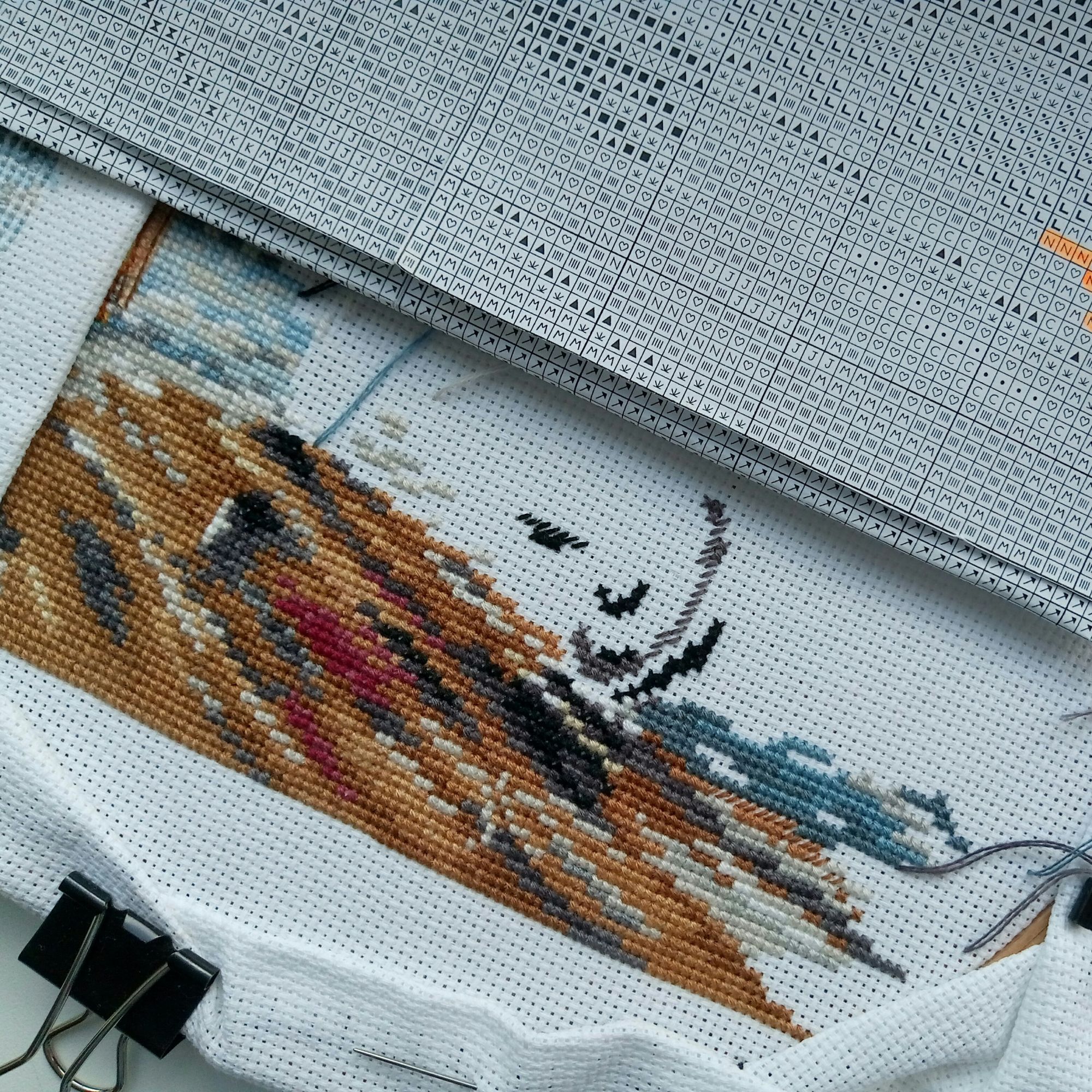 21 июля 2019 Добрый день! За то время, что меня здесь не было, произошло много чего интересного, в том числе и на вышивальном фронте. Давайте начнем со старых процессов. Это пляж Anchor, тут продвижения в духе "ковырял часто, но по чуть-чуть". 16 канва - мой идеальный идеал, состав этого набора не перестает меня радовать, вышивать очень приятно. Времени было мало из-за сессии (опять сдал на 4 и 5). Сейчас этот набор остался в общежитии, в то время как я уже две недели в Барнауле. А теперь перейдем к очень старым. Это "Акварельные розы" от Риолис, последняя фотография в гаечке 2015 года, надо чуть-чуть обновить-дополнить. Тут уже, наверное, половина, по диагонали. Процесс, который на самом деле тоже очень старый, начинался одновременно с обелиском от Heritage, но сюда не выкладывался. Bicycle afternoon от Dimensions. БЕЗ ГАЕЧКИ, пожалуйста. Потом найду все старые фотографии и все вместе их выложу. Сейчас хочу просто показать, сколько уже вышито (около половины). И две новые работы (случайно вышло): Первая - это Lanarte 34905 Chinese woman. Вышивается в одну нить на льне - потрясающие ощущения. Очень яркие цвета - скучно не будет. Начал, кажется, впервые, с правого нижнего края. Вторая - старинный набор от Janlynn - "Portait of Christ" #023-254. Вот, как-то так, неожиданно. Предположительно, буду переделывать нос, мне он не нравится - картошкой. Но это нужно будет поработать в PM, а ноутбук остался в СПб, так что торопиться с вышивкой не буду. Если ничего внятного не получится - оставлю как есть. Спасибо за внимание S4astlivaja, Виттария, Маняша и 38 других сказали спасибо Поделиться сообщением Ссылка на сообщение