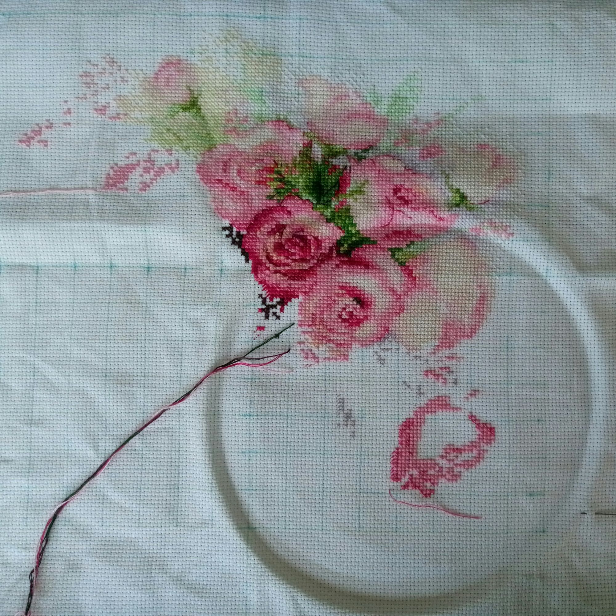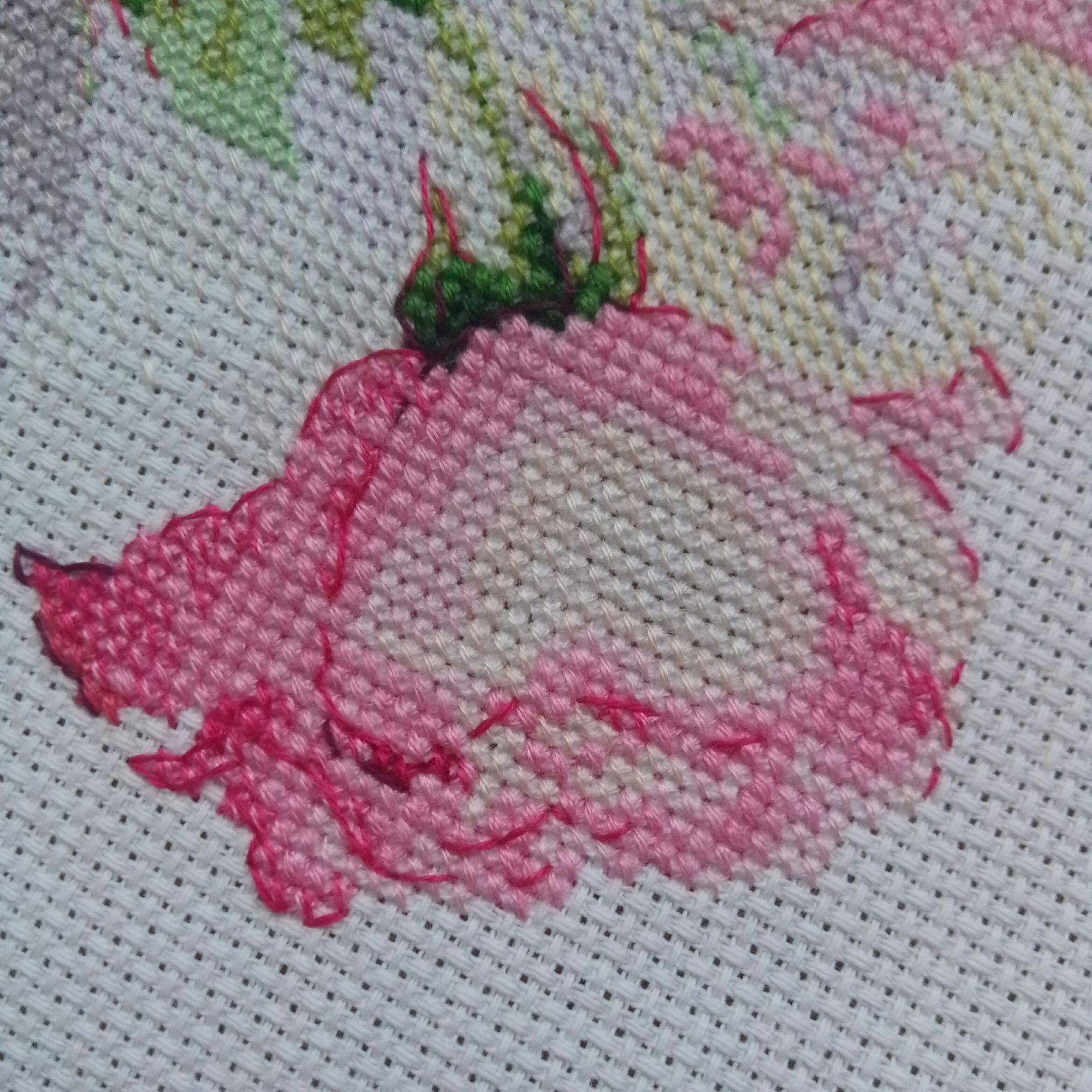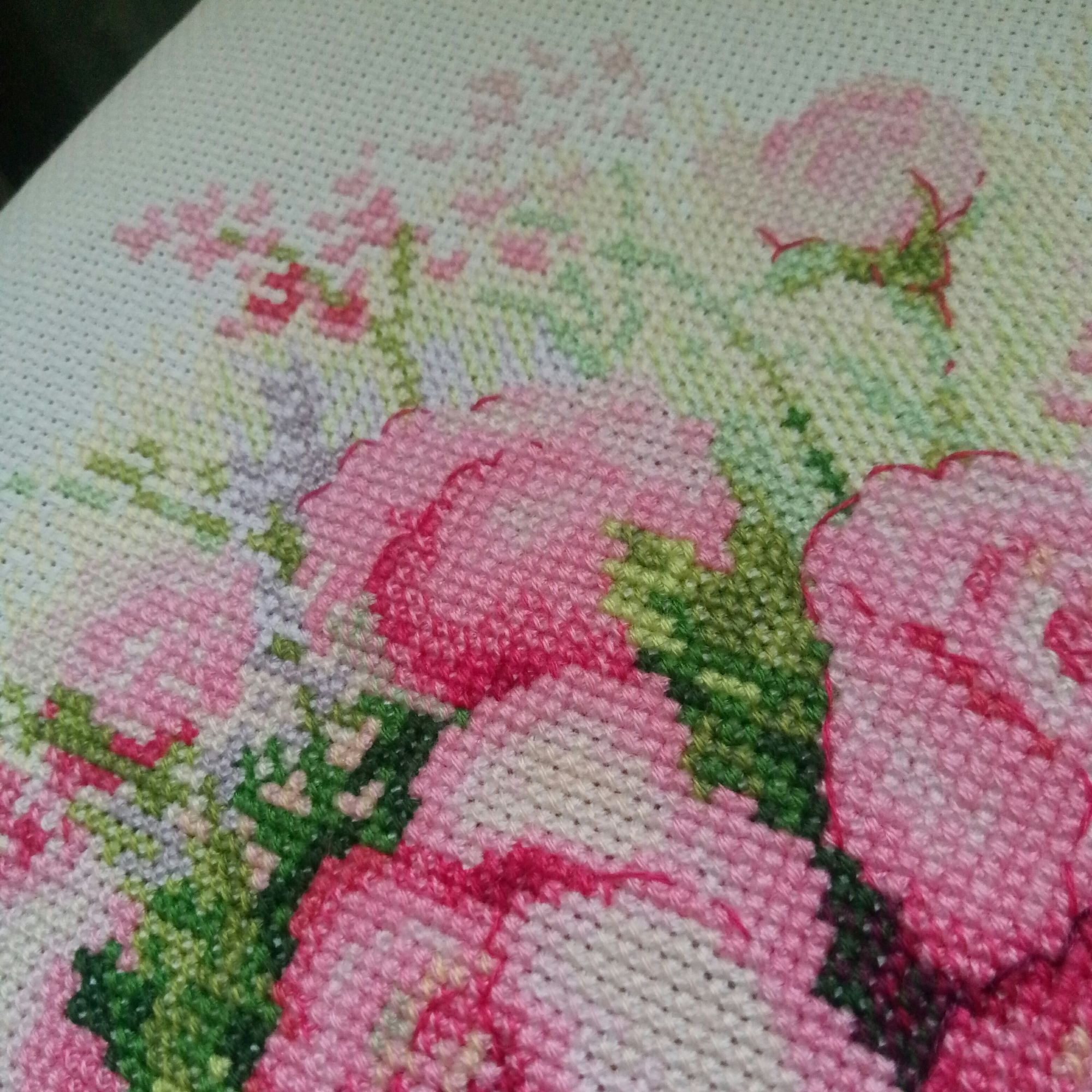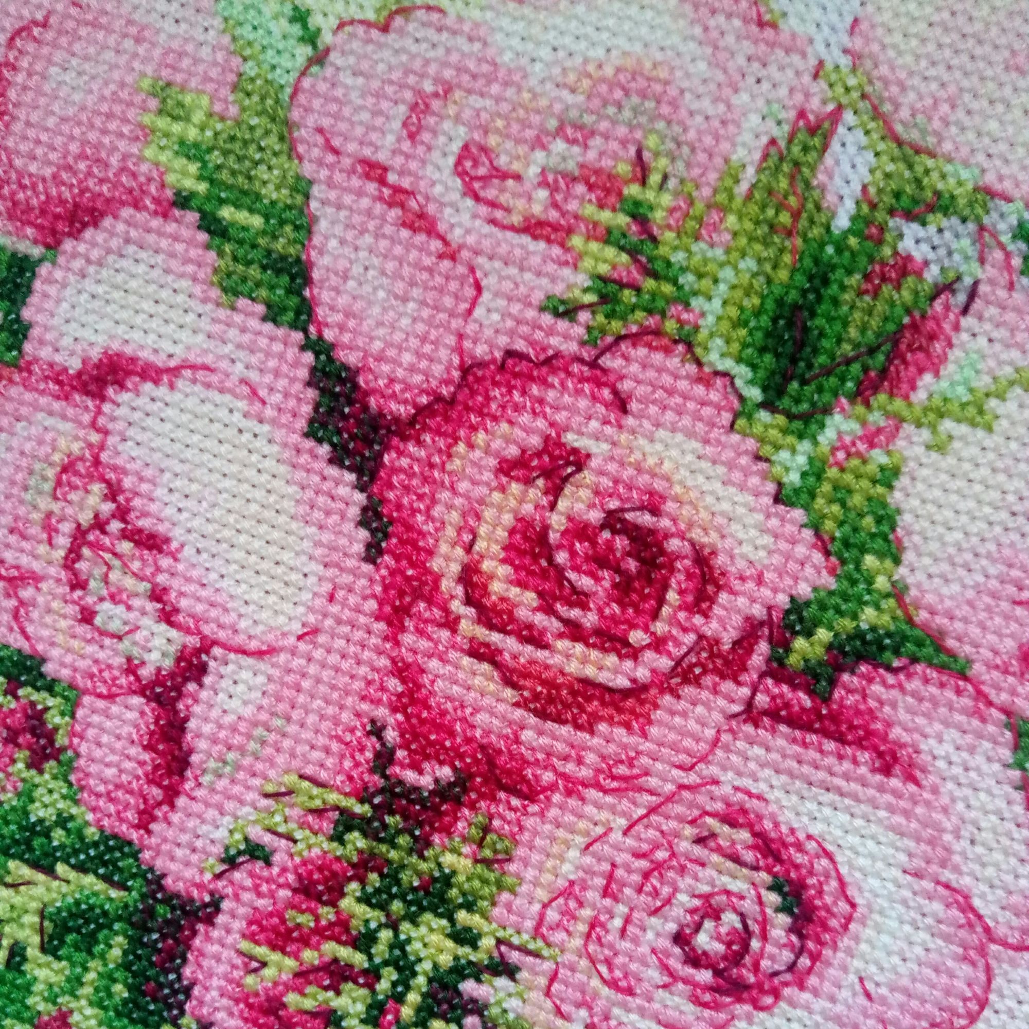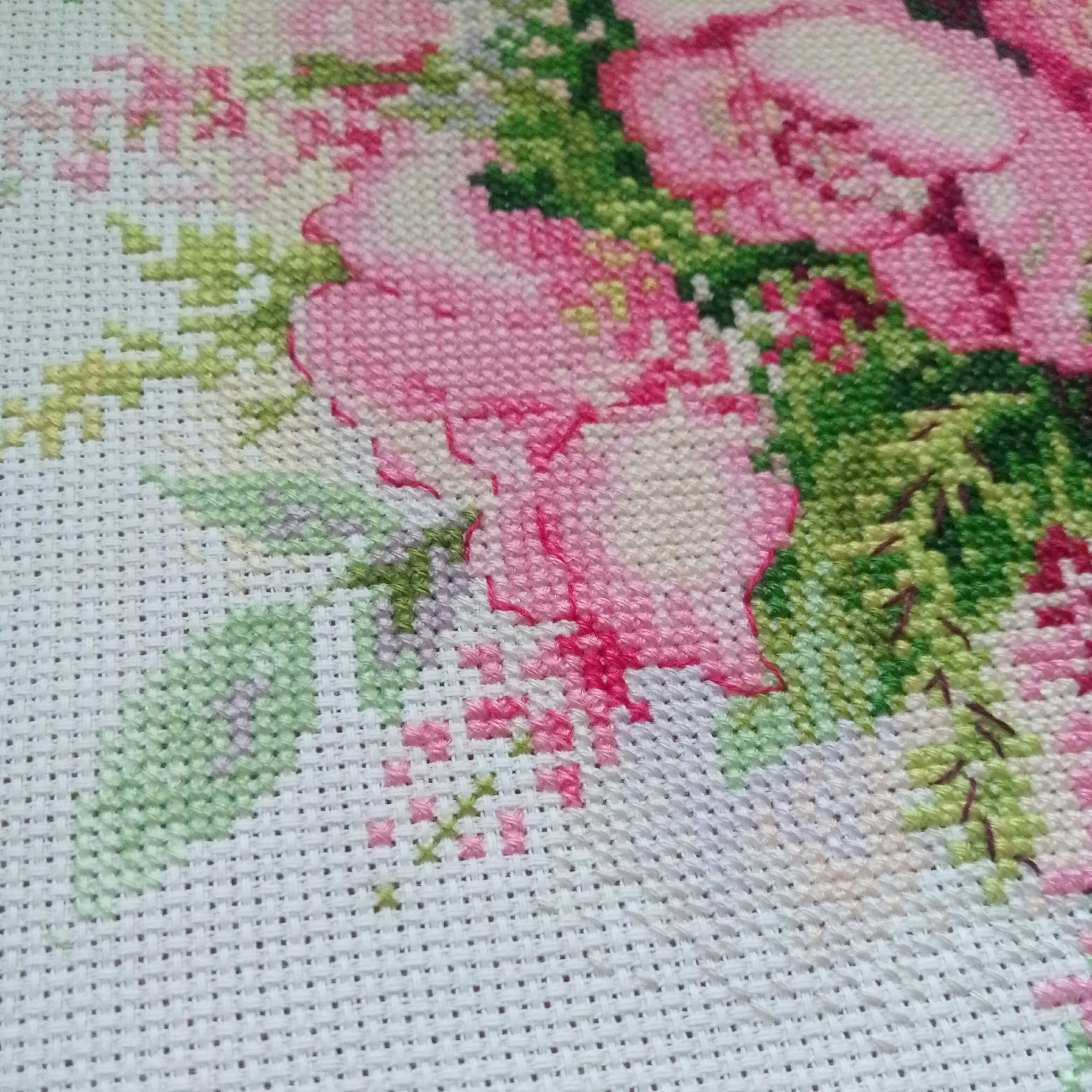 25 августа 2019 Привет всем! Я тут принес продвижение (и завершение) акварельных роз. Теперь самая старая красная гаечка позеленеет - ура! Закончил давненько, но пофотографировать получилось только сейчас. В целом ощущения: мягкая канва, приятная на ощупь, но из-за мягкости натяжка получалась довольно слабая, а мне нравится посильнее. Ещё один цвет упорно рвался. Грешил бы на иголку, но не получается - не в том месте рвалось. Два розовых цвета сливаются в один, хотя некоторые нюансы как раз должны были выделяться потемнее. Очень необычные бленды и разные стежки (не так, как у Дим, но все равно неплохо). Хотя у Дима, который я сейчас шью, фантазия по-моему западает - там только два полукреста и один крестик в одну нить, все остальное крестом в две. Ксен40, Natashik1978, titania и 23 других сказали спасибо Поделиться сообщением Ссылка на сообщение