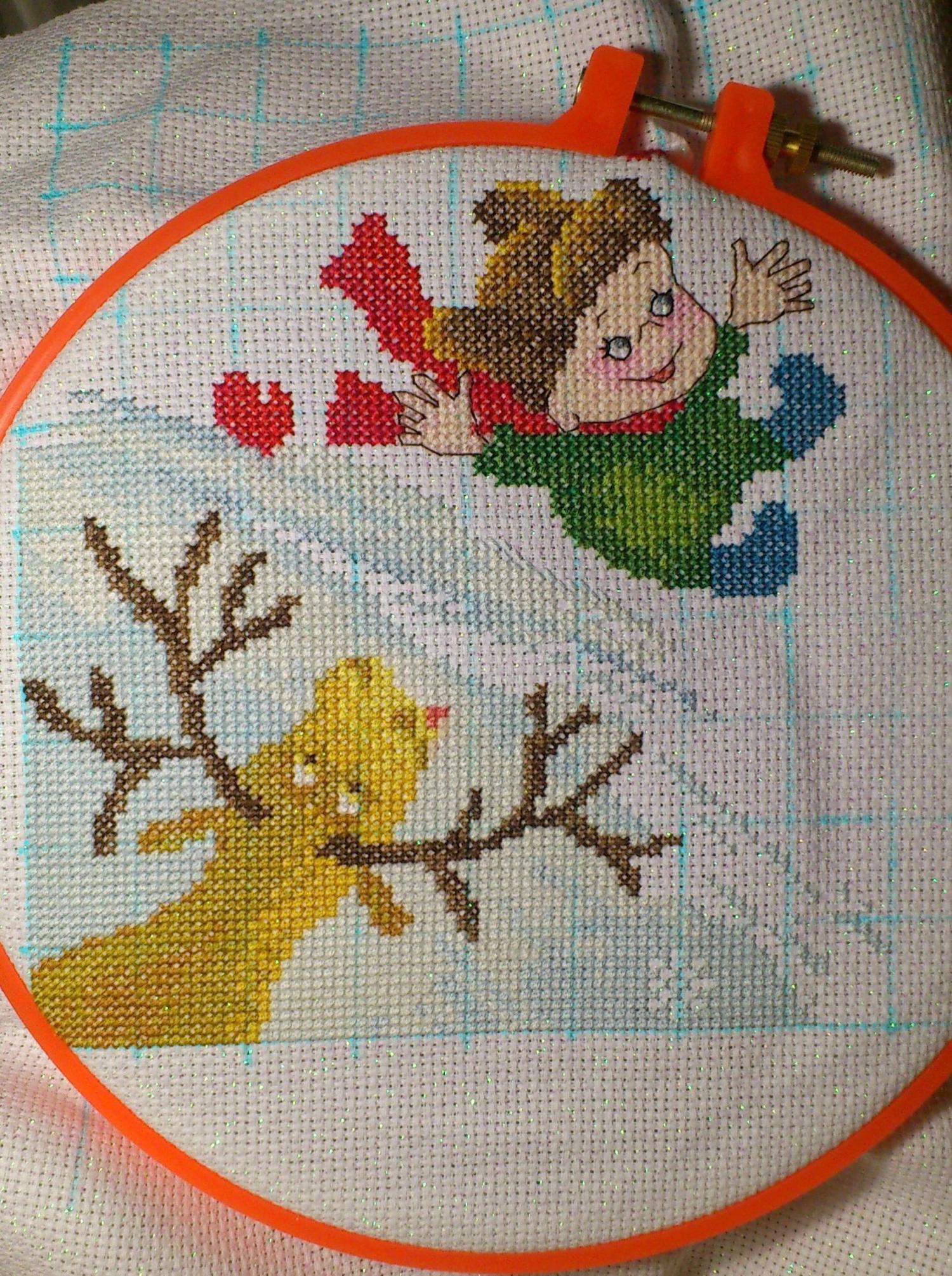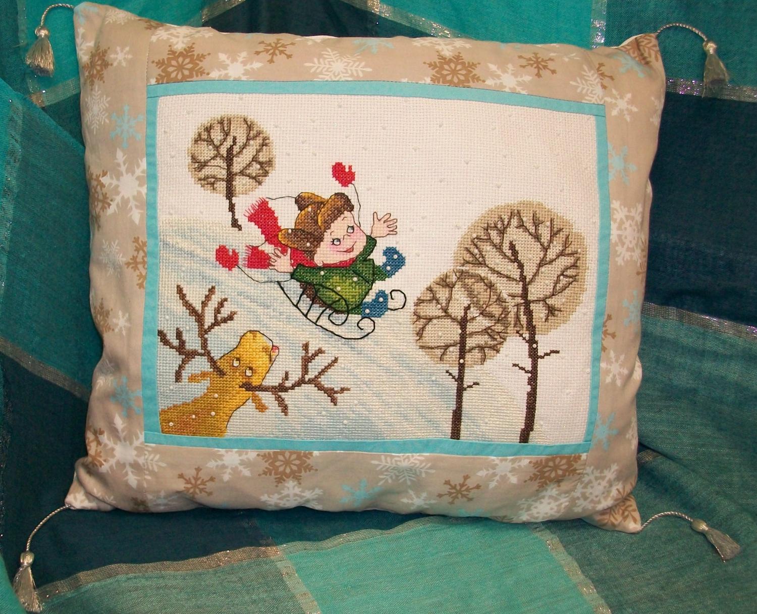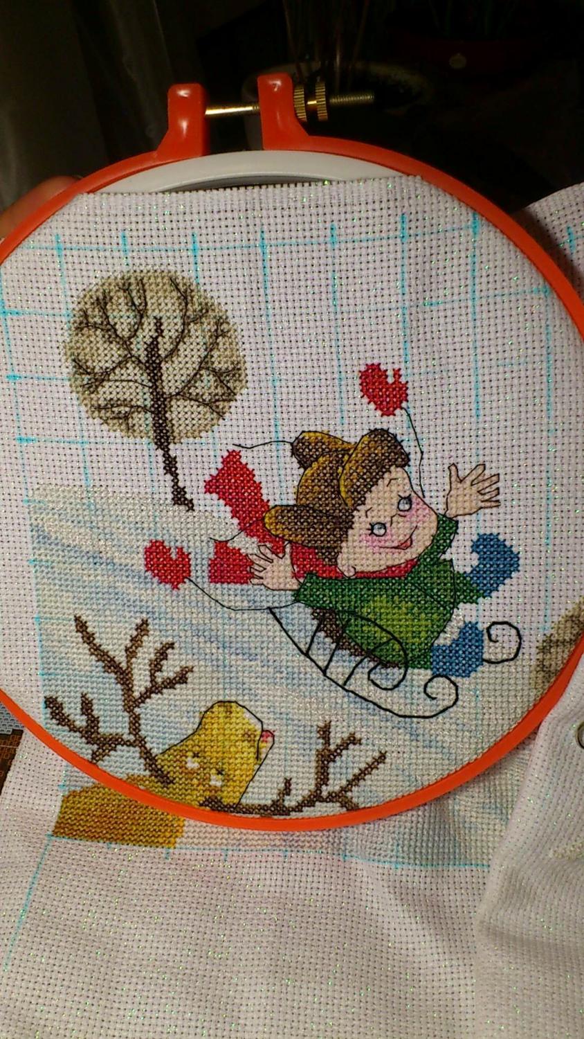 12 января 2015 ЗДРАВСТВУЙТЕ, ДОРОГИЕ РУКОДЕЛЬНИЦЫ!!!! девочки, огромное спасибо всем за поздравление!!! очень приятно ваше внимание!!! всех тоже сердечно поздравляю с Новым 2015 годом и рождеством!!! не было возможности всех поздравить лично! но была свободная минутка, я ко всем заглянула, посмотрела... правда написать не хватает времени... да и "недуг" в последнее время одолевает меня... и бороться с ним что то совсем нет сил...но обо всем по порядку!!! вышла сегодня на работу... заглянула пока была минутка ко многим на огонек...и вот собралась с силами, чтоб отчитаться обо всей проделанной работе, т.к. все сюрпризы получены и можно раскрыть все карты 1. участвовала я в зимнем сюрпризе! выбирала между 2-х работ этой и этой Посовещавшись с девочками и мужем))) остановилась на первой))) Марья Искусница "Горка". схемку взяла в ПМ, ниточки подбором! активно и увлеченно принялась за работу. она приносила мне оч много положительных эмоций... да еще "подстегивал" азарт игры! вот мой процесс в деталях чтобы выделить сани, сделала их не нитками мулине, а ирис (так они вроде называются... для вязания крючком)... мне показалось так гораздо красивее))) а еще обыскалась снежинки... которые как пуговки сверху идут... нет нигде.. хотя помню- видела... но перед праздниками всё связанное со снежинками просто расхватали( пришлось делать без них. оформить вышивку решила в подушку. вот так)) в целом очень понравился процесс... никаких сложностей... до середины работы всё шло просто на ура...но потом настали "тяжелые времена"... делать было все просто не выносимо... и очень боялась, что не доделаю...не успею..понимала, что надо вышивать, но не было сил... саму подушку шила в последние 2 дня... после работы... до поздна... шила первый раз и поэтому получилось немного кривовато (за что мне очень стыдно :blush но переделать не было просто никаких сил... это первое, что я сделала))) параллельно с этим на работе я вышивала еще один маленький подарочек (всё в тот же зимний сюрприз) 2. новогодние варежки))) увидела их вот в таком виде и загорелась сделать))) у меня ж мальчик на санках... а позади то варежки развеваются))) да еще и на варежках бисер (а у мальчика на санках тоже снег из бисера)... короче всё как раз в тему))) но опять же в силу своего самочувствия (в конце ноября, начале декабря) сделать смогла только 2... вот как все продвигалось))) потом еще за один вечер (тоже в последние деньки перед отправкой) сделала снежинку из бисера... и вот что получилось))) ну подведу итоги моих стараний для зимнего сюрприза))) подушечка готова, варежки (хоть и не все) сделаны, снежинка сделана... а еще символ года... и сделала (опять же под тему варежек и снежинок) открыточку... вот такая была моя самодельная часть)))) 3. а еще я участвовала в "партизанском отряде" заключался он в создании открыточки для нашей Сашули (Aleksandra)... выбрала мишку Физзи. вышивается ну очень при очень легко))) ну и готовая открыточка))) 4. ну и в новогодние каникулы (пусть совсем немного), но я всё же уделила внимание моим позабытым- позаброшенным утятам было стало 5. а еще на работе я начала новый процесс Panna- Свидание при луне в планах тоже оформить ее в подушку и подарить любимой подруге. при том хочу в небе процитировать слова песни "дружба крепкая"... которую мы так любили с ней петь в институте... да и сейчас иногда поем, когда встречаемся (а бывает это редко... живем теперь в разных го