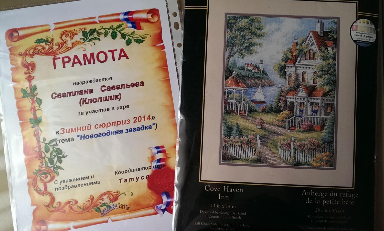 22 апреля 2015 всем большой привет!!! а я к вам наконец то с отчетом)))) приехала от родственников... немного поленилась дома (не знаю почему- страшная лень напала)... но сегодня готова поделиться с вами! (а поделиться есть чем :wink 1. метрика. можно сказать- с пылу, с жару))) закончила я ее (ну кроме имен... имена и дату впишу уже ближе к свадьбе)... намучилась с золотыми нитками... и как то тяжело пошли фрузелки...но потом вроде приловчилась более или менее))) промежуточное фото) ; и итог) ; ну и фрузелки поближе (мои корявенькие :crazy сделала чуть-чуть больше фрузелков, чем по схеме. и добавила одну розу (на самом верху), т.к. без нее получалось четное число роз... что мне не очень понравилось ой... уже всё разместила и вспомнила, что еще одну деталь забыла- ключик... ну это уж я потом доделаю... а то уже постирала ее... 2. вчера ходила на почту... и знаете что мне пришло?! ни за что не догадаетесь подарочек от нашей Татусечки за зимний сюрприз!!! не выдержав вскрыла пакет сразу на почте... сидела и тихонько попискивала от удовольствия! это наборчик из моих давних хочушек... а еще грамота Танечка, большое тебе спасибо!!! это было очень неожиданно и безумно приятно!!! и вот как жить?! как с такой красотой можно спокойно жить... раньше всегда был у меня один набор который я вышивала...и только после того как его доделаю, я бралась за другой.. а тут... столько всего уже у меня... и всё так хочется скорее сделать... ох... шла с почты и боролась с собой! решила всё же в ближайшее время начать то, что хотела до этого- живую картину... но еще почему то появилось желание повышивать бисером Париж... так что пока думаю за что хвататься 3. ну и моя помощница))) честно спала со мной на диване, когда я вышивала))))) не такая уж она и толстая, как мне показалось на фотографии, присланной мужем... видимо она там просто так лежала... так что на диету ее сажать не буду кстати! я когда домой зашла, она ко мне на ручки давай проситься, лапы мне на ноги поставила и давай тянуться. я ее взяла, вот она меня целовала- нацеловывала... и мурчала, мурчала, мурчала!!!))))) соскучилась! хотя она часто целоваться лезет (когда с работы прихожу, например)... но тут прям она меня зацеловала)))) Antarktida, Бондаренко, Сметанка и 9 других сказали спасибо Поделиться сообщением Ссылка на сообщение