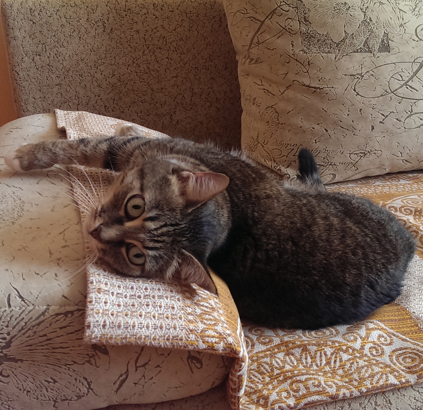 12 апреля 2015 всем привет!!! отпуск мой еще продолжается... и иногда появляется возможность по вышивать... может не так много, как хотелось бы, но всё же.... свадебная метрика... было/стало) правда освещение не очень и цвета немного не такие, как на самом деле! и боялась, что из-за моего вышивального упадка не успею в срок сделать метрику. поэтому взяла вышивку поменьше. но идет она довольно легко, так что зря я переживала)))) т.к.я еще гощу у родителей, то муж с кошкой, соответственно, дома вдвоем! и периодически они меня радуют всякими ммсками и забавными смсками примерно такого содержания: "Вот как быть?! Коша спрашивает где Светка, а я не знаю что ответить,т.к. не говорю по- кошачьи" или "Тебе нужна другая подушка. эта занята" и фото... Увидев Мусю пришла к выводу, что кто то (по моему возвращению домой) сядет на небольшую диету ну а пока я отдыхаю, общаюсь с родственниками... и заряжаюсь положительными эмоциями! пузо мое растет (при том кажется,что за эту неделю увеличилось оно значительно)! сына активно пинается, толкается и упирается!!! при том излюбленное место "упирания" строго слева от пупка... интересно почему?! и пиночки его стали более конкретными, уже не перепутать ни с чем но до рёбер пока еще не достает!!! bukina88, irinka-mandarinka, Бондаренко и 8 других сказали спасибо Поделиться сообщением Ссылка на сообщение