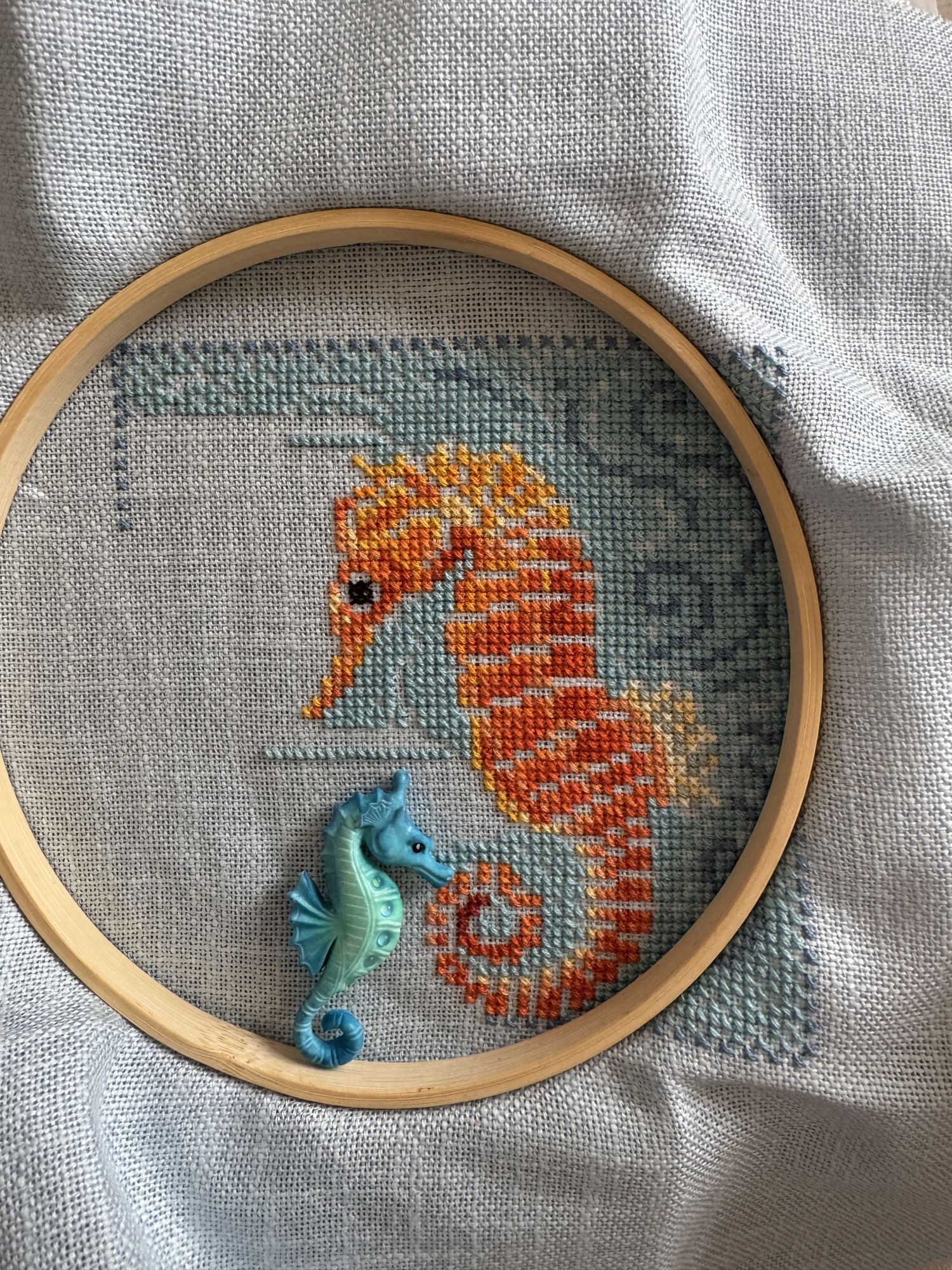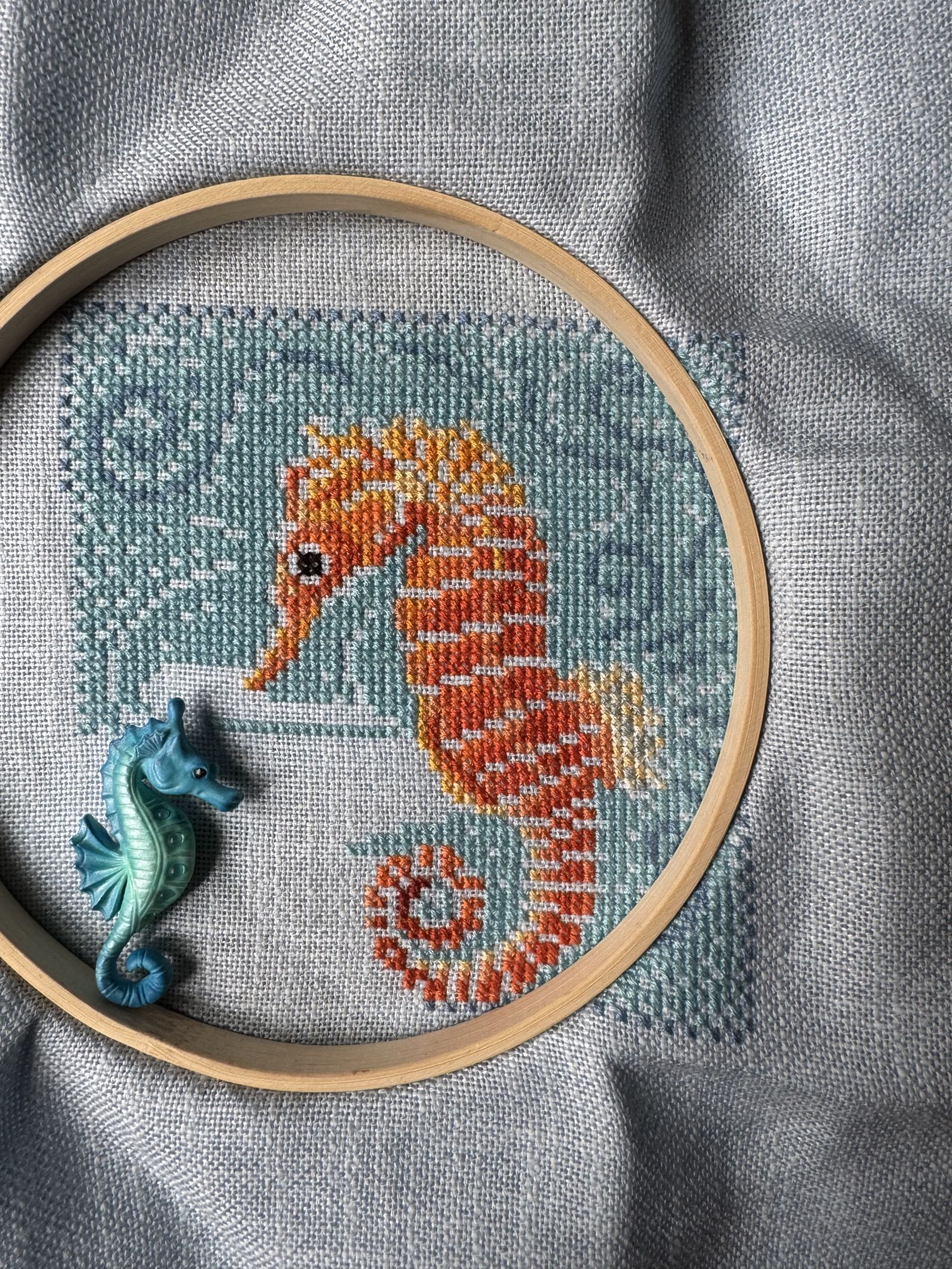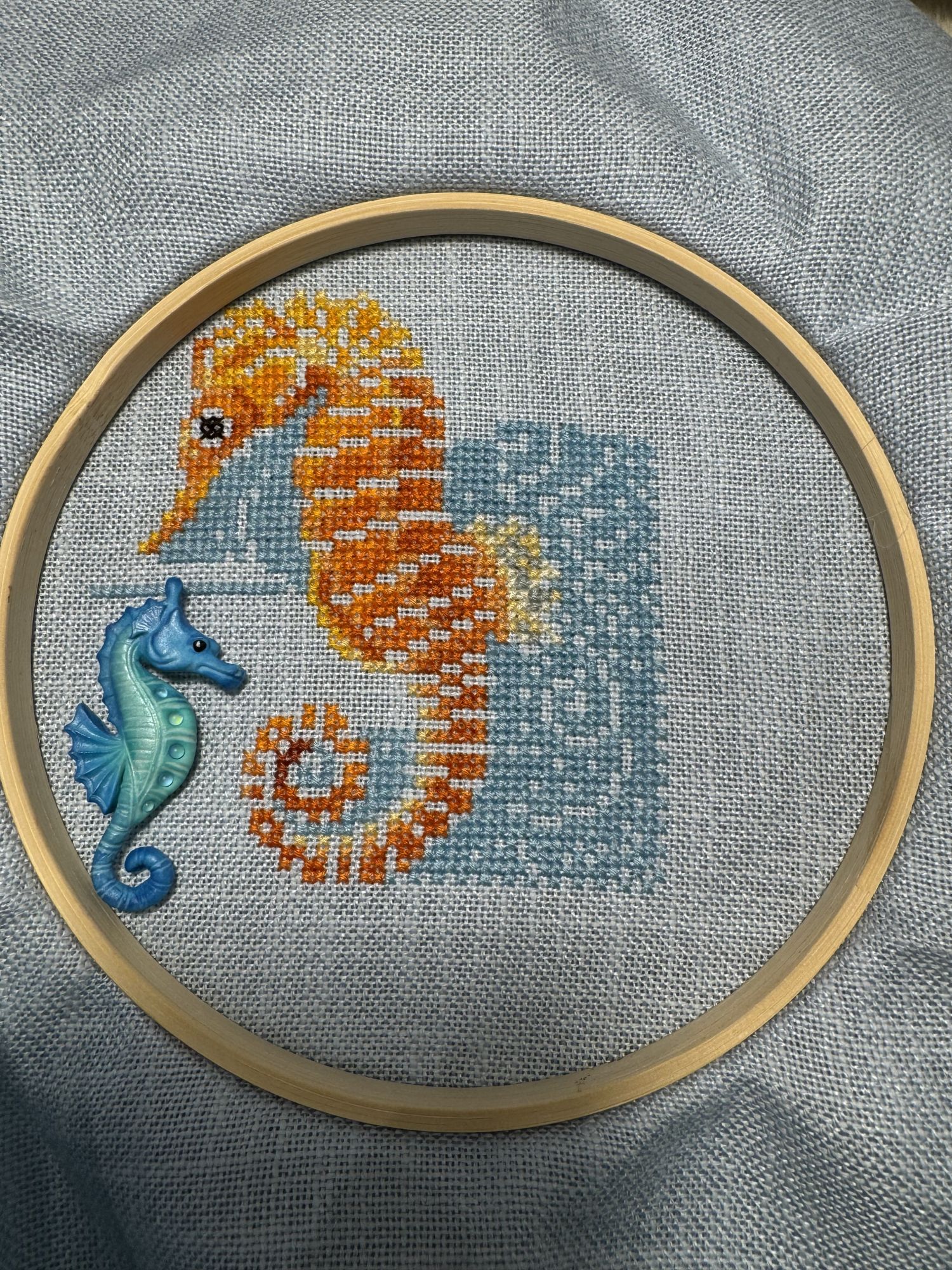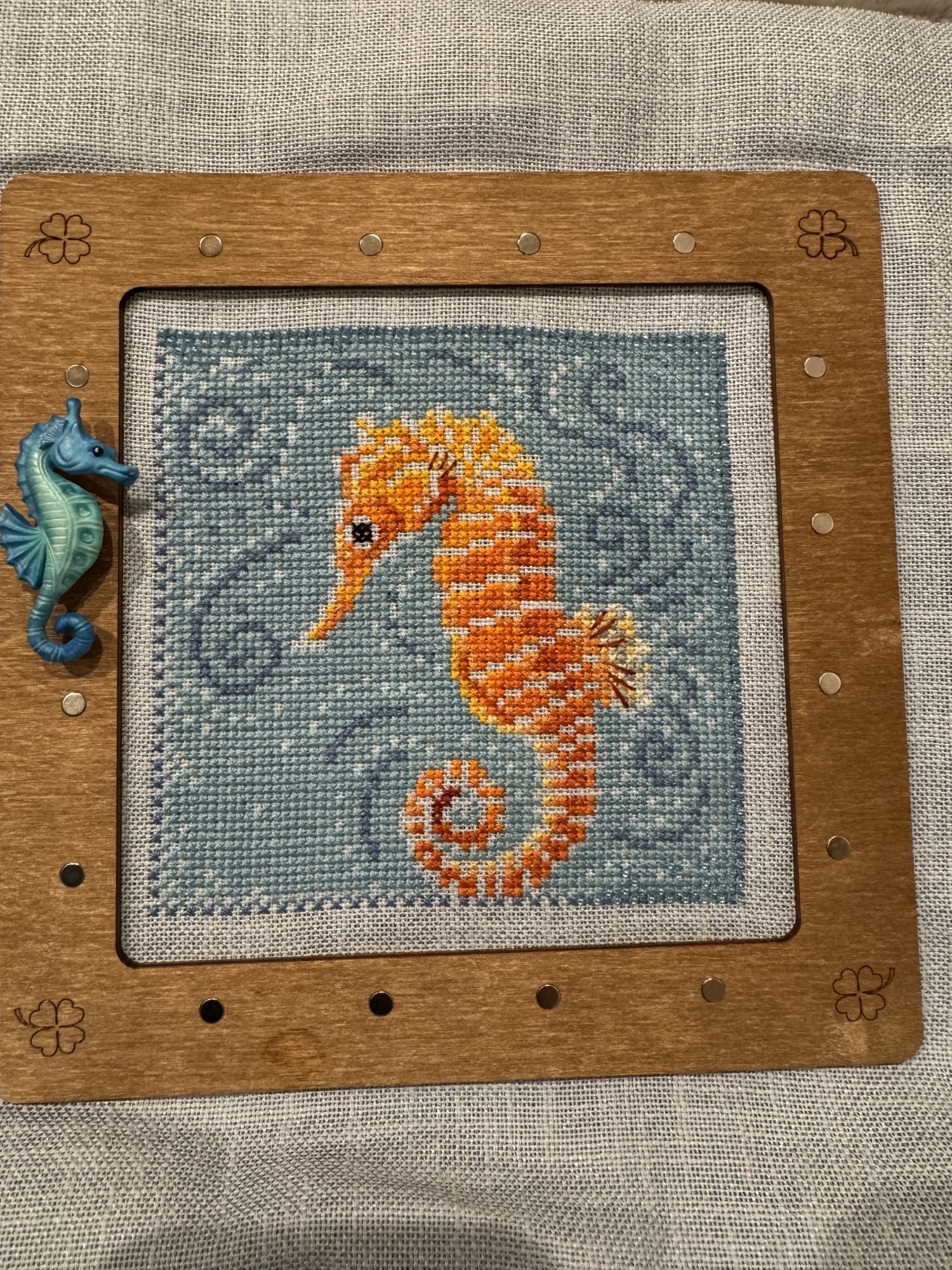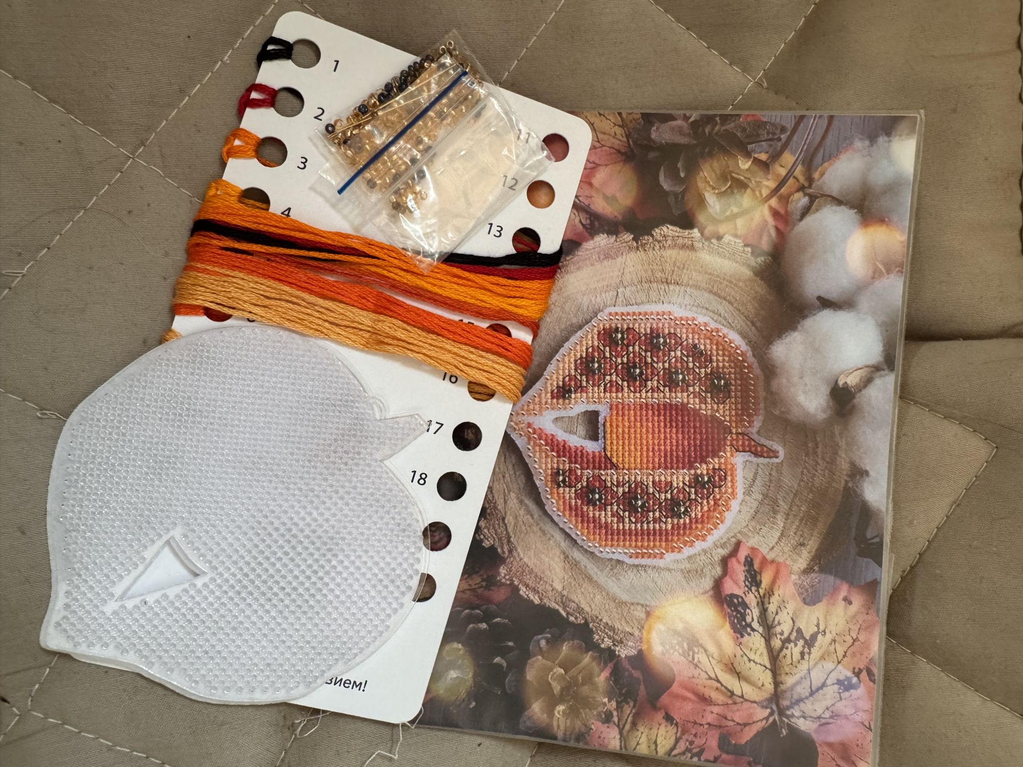 8 октября 05.10.2025 в 20:01, Agusia сказал(а): Всем, здравствуйте! У меня опять три новых процесса, правда, один из них успела уже закончить. 1. Морской конек от Милл Хилл. Очень хотела приобрести эту серию, но наборы исчезли из продажи, либо попадались за дорого. Поэтому приобрела сборку на ткани от Шелковой нити. Пока все очень нравится: основа, кажется Ева, нежно голубого цвета. Мулине нарезано длинными пасмами, как и у Милл Хилл. До бисера пока не добралась, поэтому впечатлений нет. Единственный минус - игла. Она маленькая и очень мягкая. Гнется в разные стороны, поэтому заменила. 2. Физалис от Надежды Григорьевой. Старт и быстрый финиш. Второй набор от этого дизайнера. Претензии только к золотому бисеру - он оказался с крапинками, как будто облезает. Но я не стала заменять, потому что не заметно. Задник из ветра белого цвета, хочу покрасить в оранжевый. 2. Камин от Надежды Григорьевой. Покупка с осенней ФР. Так понравился набор, что решила тут же начать. Увидела Морского конька , пришла посмотреть поближе. Я тоже вышивала по сборке из ШН, канва была у меня голубая, неизвестного производителя точно. Иглы у них странные, нитки вставить очень сложно, я никак не найду иглу для пришивания бисера 15, заходит только тонкие, но очень длинные иглы. Какими иглами вы пришивание бисер 15? Agusia сказал(а) спасибо Поделиться сообщением Ссылка на сообщение