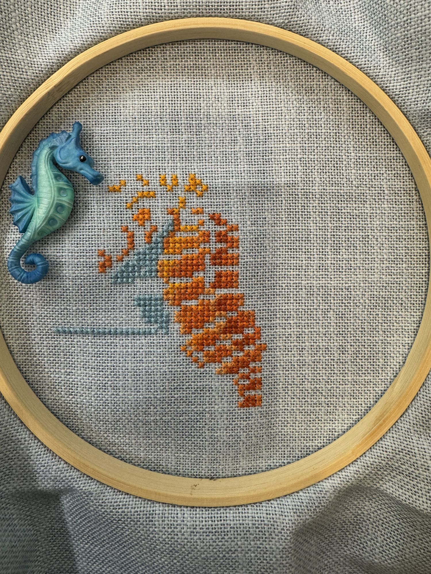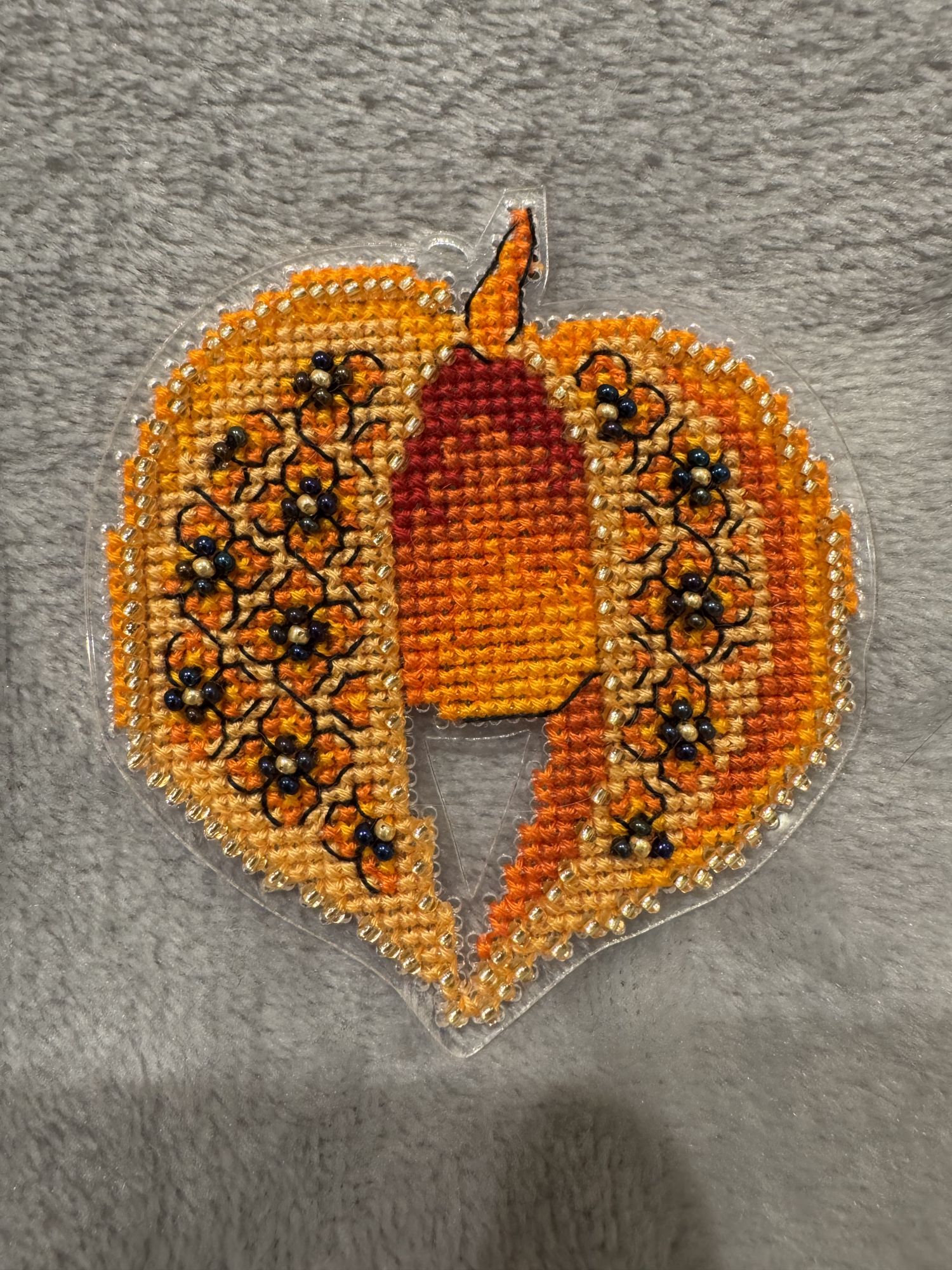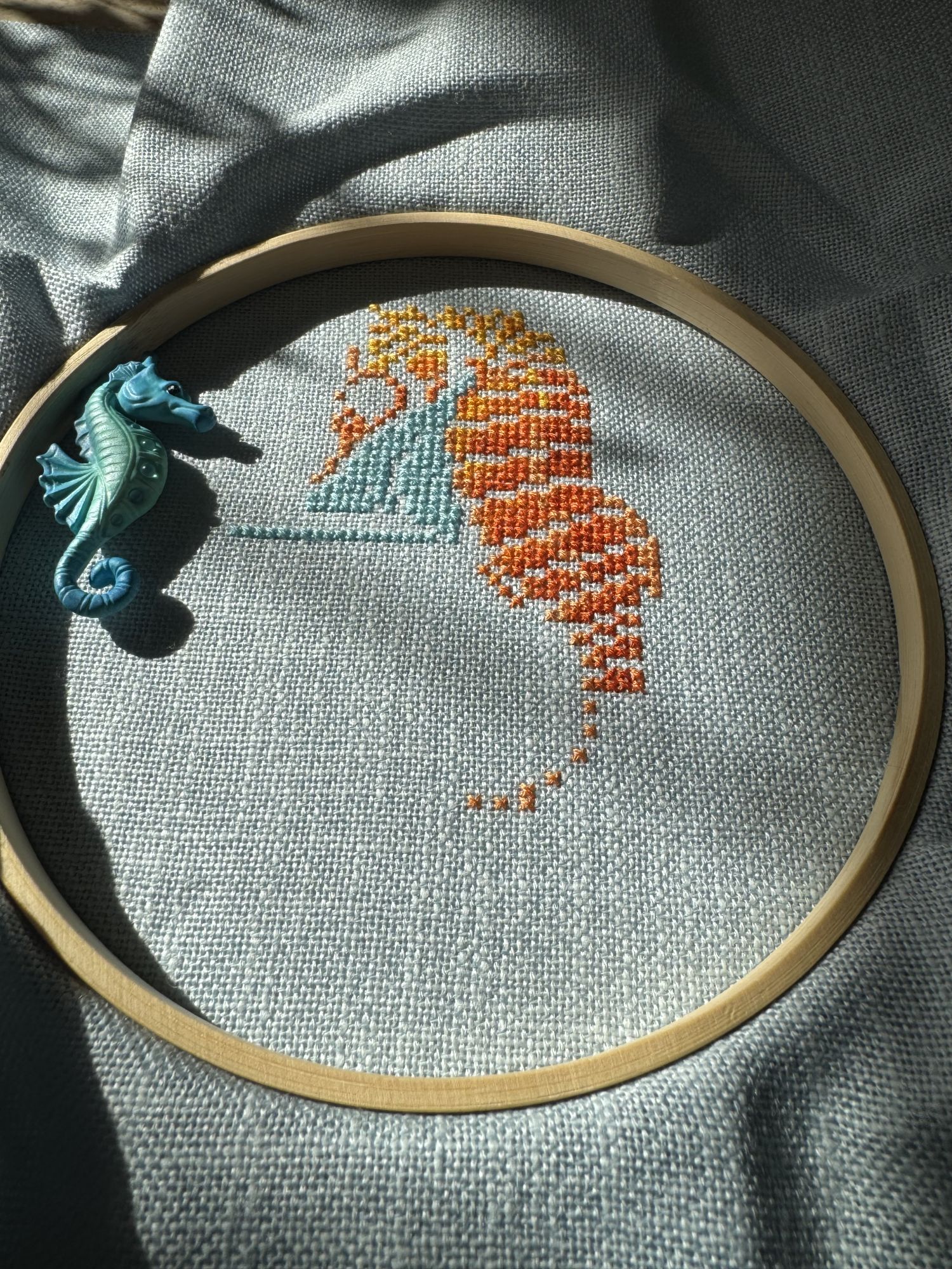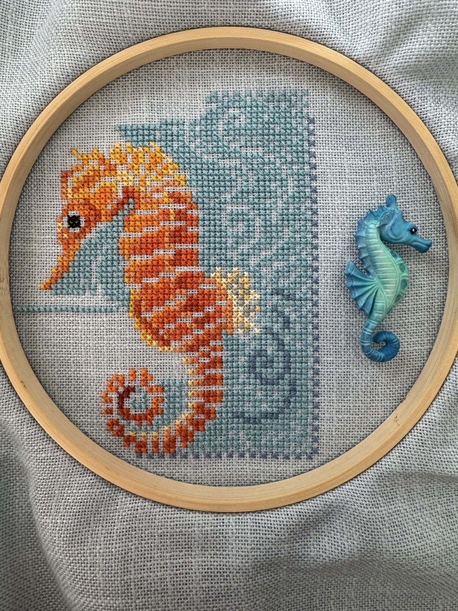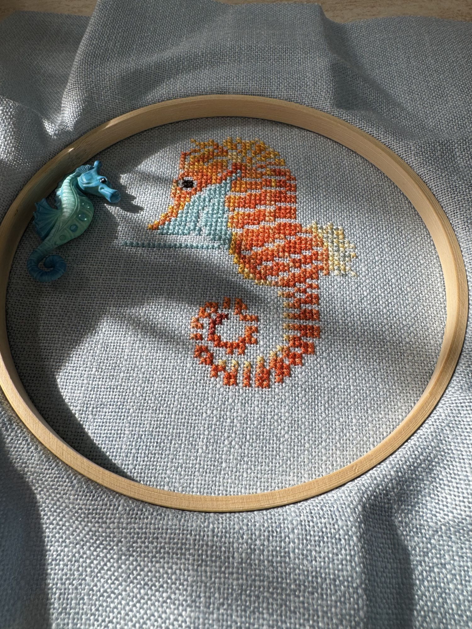 8 октября 05.10.2025 в 20:01, Agusia сказал(а): Всем, здравствуйте! У меня опять три новых процесса, правда, один из них успела уже закончить. 1. Морской конек от Милл Хилл. Очень хотела приобрести эту серию, но наборы исчезли из продажи, либо попадались за дорого. Поэтому приобрела сборку на ткани от Шелковой нити. Пока все очень нравится: основа, кажется Ева, нежно голубого цвета. Мулине нарезано длинными пасмами, как и у Милл Хилл. До бисера пока не добралась, поэтому впечатлений нет. Единственный минус - игла. Она маленькая и очень мягкая. Гнется в разные стороны, поэтому заменила. 2. Физалис от Надежды Григорьевой. Старт и быстрый финиш. Второй набор от этого дизайнера. Претензии только к золотому бисеру - он оказался с крапинками, как будто облезает. Но я не стала заменять, потому что не заметно. Задник из ветра белого цвета, хочу покрасить в оранжевый. 2. Камин от Надежды Григорьевой. Покупка с осенней ФР. Так понравился набор, что решила тут же начать. Увидела Морского конька , пришла посмотреть поближе. Я тоже вышивала по сборке из ШН, канва была у меня голубая, неизвестного производителя точно. Иглы у них странные, нитки вставить очень сложно, я никак не найду иглу для пришивания бисера 15, заходит только тонкие, но очень длинные иглы. Какими иглами вы пришивание бисер 15? Agusia сказал(а) спасибо Поделиться сообщением Ссылка на сообщение