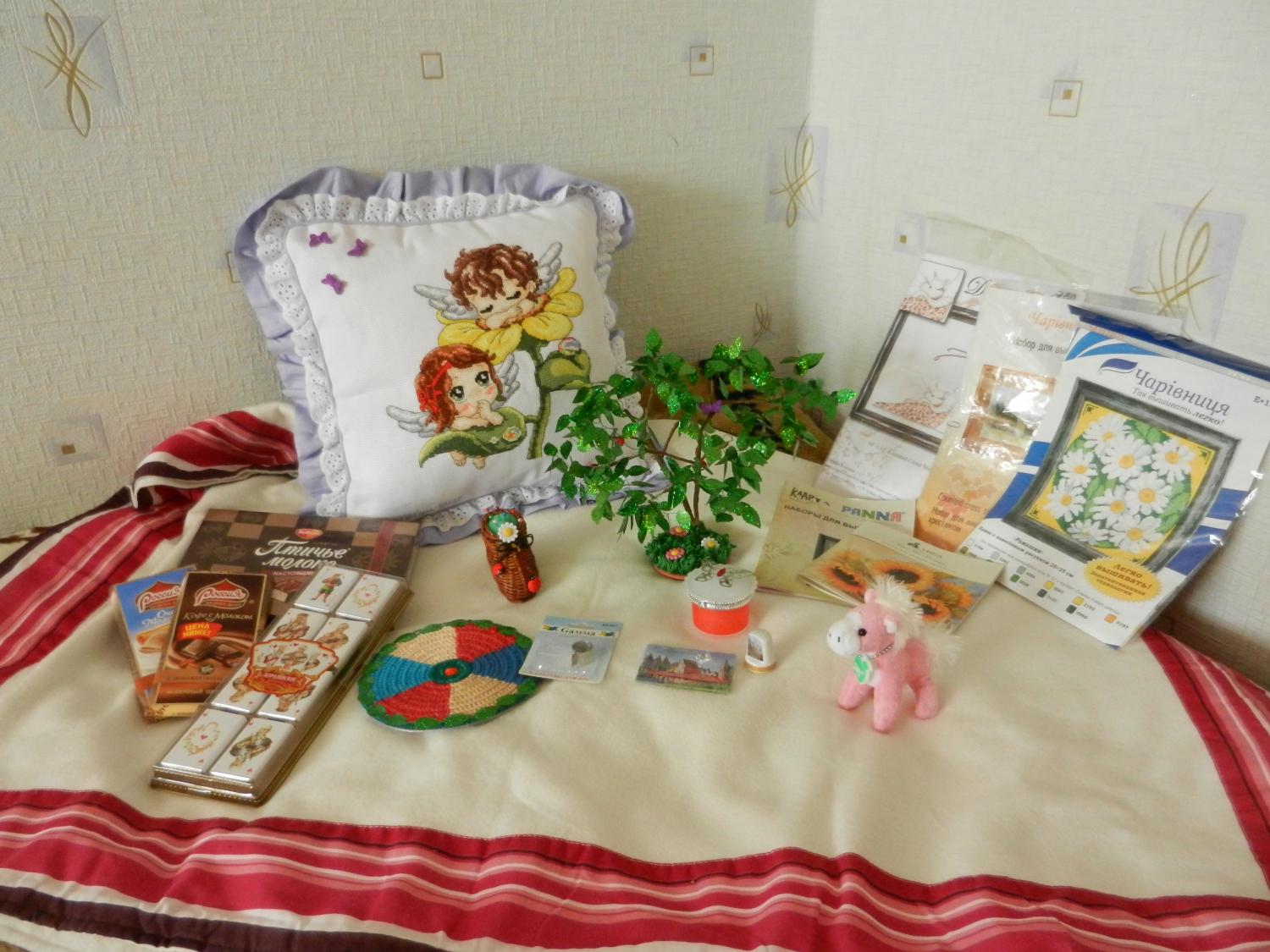 14 мая 2014 Мой фоторепортаж готов! Повторюсь, сидела обложившись всеми этими сокровищами и млела от счастья! Рядом в кроватке топталась Влада и недоумевала - "мама улыбается, но на меня не смотрит... непонятно..." Итак... Обзорная фотография: А теперь подробности! Подушка - абсолютно чУдная, милая и нежная подушка! Вернее, вышитая наволочка, в которую вдета подушка. Прошу обратить внимание на пришитых внизу божьих коровок - позже объясню причину этой просьбы. Канва с нанесенным рисунком (канва похожа на страмин, так что скорее всего это будет тоже подушка), 2 буклета-каталога (Алиса и Панна+Кларт), и схемы с образцами ниток нескольких хочушных наборов. О, эти кошки от Design Works, эти стильные мерзавки - лениво развалившиеся на предметах женского туалета. Я с них балдею Теперь они у меня есть и они будут вышиты! Милая игольница в виде башмачка, тоже с божьими коровками. (фотоаппарат крутила как на душу легло, так что ракурс иногда сомнительный) Подставка. Возможно, предполагается, что на нее можно поставить кружку, например. У меня рука не поднимется! Также я от Оли получила пластиковую заготовку для второй такой, буду учить новый вид рукотворчества. А еще на фотографии очень полезный рукодельнический гаджет - наперсток с резаком. Маленькая шкатулочка (наконец-то серьги перестану бросать просто перед зеркалом), и дочья лошадка (именно ее, в письме так и было написано). Лошадка еще и покрупнее - очень милая. Сладенькое, магнитик "Сосновый Бор" и наперсток "Санкт-Петербург" (думаю, что декоративный) И еще один подарочек, просто поразивший меня - шикарное, великолепное, просто восхитительное деревце из проволоки и пайеток! Сколько в него вложено труда и стараний! Девочки, это нечто!!! И еще раз прошу обратить внимание на божью коровку А как оно блестит У нас окно выходит на юго-западную сторону и как раз после фотосессии заходящее солнышко в окно посветило - это потрясающе! Каждая пайетка переливается и сверкает. Только, боюсь, что это сфотографировать так и не получилось. А теперь небольшое отступление от темы - История про божьих коровок. Началась история прошлым летом, когда выпускание божьей коровки на улицу из комнаты стало нашим ежевечерним ритуалом. Муж даже начал подозревать, что это одна и та же, возвращается ежедневно и недоумевает, почему ее выселяют. Позже, где-то в конце осени, мы на прогулке увидели в окне соседнего дома приклеенную к стеклу большую божью коровку. Женька (муж) пошутил: "Она следит за нами! Они нас преследуют!!!" Когда он покупал дочке кормежный стульчик, первый который принесли со склада оказался с божьими коровками. Женька посчитал, что это судьба и не стал менять. Когда я ему показала желанный подарок на 8 марта (сейчас у меня в процессах - ромашки с коровками от Краса и Творчество), он вздохнул "опять они..." (по хорошему вздохнул) В общем, божьи коровки нас "преследуют" уже давно. И сейчас, похвасталась мужу всем полученным от Оленьки великолепием. Он за меня порадовался, подарки порассматривал. А потом говорит: - Они нас действительно преследуют. Ну вот представь, играющих, кроме тебя, 16 человек. И барышня, украсившая свой сюрприз именно божьими коровками, отправляет его именно тебе. Это судьба! Так что Оля угадала даже с этим! Вот такие у меня сокровища! Talestra, vodonika, Lapyshok и 44 других сказали спасибо Поделиться сообщением Ссылка на сообщение