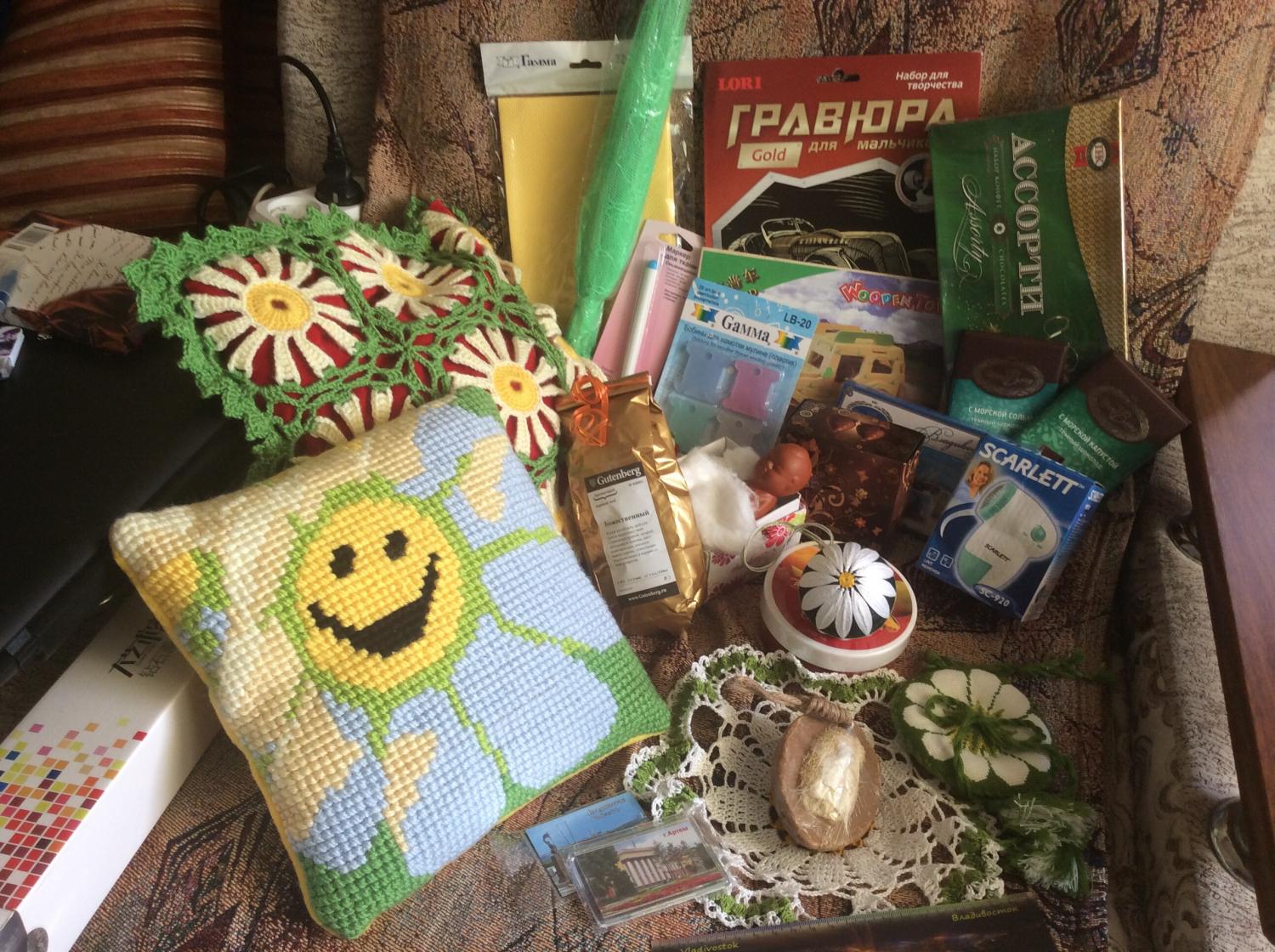 19 мая 2014 Уррррррррраааааааа!!!!!!!!! Я уже с сюрпризом!!!!!))))))) я так счастлива, просто не описать словами!!!! Только я прочитала утром Анино сообщение о том что посылочка ее уже должна быть на месте, хотела после садика зайти на почту, но подруга маникюрша позвонила и попросила приехать пораньше, я записалась еще давно на сегодня, мол на почту после зайдешь, думаю ну ладно.Пока у нее была позвонил муж и говорит, тебе тут извещение пришло, на нем написано "Авиа" я тогда сразу догадалась от кого!))) На обратном пути захожу на почту , а там народу, как людей,))) стоять не меньше часа, а я голодная))) Пошла домой сварила борщ, поела и бегом на почту, пришла , а там ни кого , я спокойно получила свой мешок счастья и довольная пошла домой!))) Вот общий вид моего багацтва))))) Анечка, большущее спасибо тебе от меня и от всей нашей семьи!!!! У тебя получился замечательный ромашковый сюрприз!!! Зря ты переживала, я никаких недочетов не обнаружила, все всем очень понравилось!! Теперь по порядку)) 1. Вязаную подушку с ромашками и наполненую гречневой шелухой сразу муж утащил со словами " а это моя будет, хоть что то и мне достанется"))) а это обратная сторона 2.Милая подушечка смайлик очень жизнерадостная!! 3. Набор с алмазной вышивкой - новый для меня вид рукоделия, с удовольствием буду осваивать!!! 4. Уже ставший знаменитым шоколад с морской солью и морской капустой( надо сказать всегда немного завидовала девочкам которые такой получали))) С солью уже попробовали, очень интересный вкус, сочетание сладкого и соленого мммммм....... мне понравилось!!! Еще шоколад с видами Владивостока. 5.Куча всяких рукодельных и очень полезных мелочей - канва яркого желтого цвета, маркер для ткани( только подумывала, что надо новый прикупить)), бобинки для ниточек( их никогда не бывает много)))). 6. Игольница - ромашка 7. Замечательнейшая салфетка связанная крючком - тоже ромашка!!! 8. Чай и вкусные конфетки, надо за варить, никак руки не дойдут)) Что то уже со счету сбилась))) так всего много!!!! В общем еще были наборы для творчества для моих мальчишек, ароматное мыло , крем, такой прикольный глиняный писающий мальчик, сначала не поняли чего это он мокрый такой)). Да , еще шар Темари тоже в виде ромашки, ракушка( ее кстати не сразу нашли, думали в коробочке и правда машинка лежит)) Свисток или даже скорее дудка очень мальчишкам понравилась, а вот собака моя не оценила, испугалась и вся тряслась, когда они дудели)) meledi2006, Lapyshok, Юла и 36 других сказали спасибо Поделиться сообщением Ссылка на сообщение