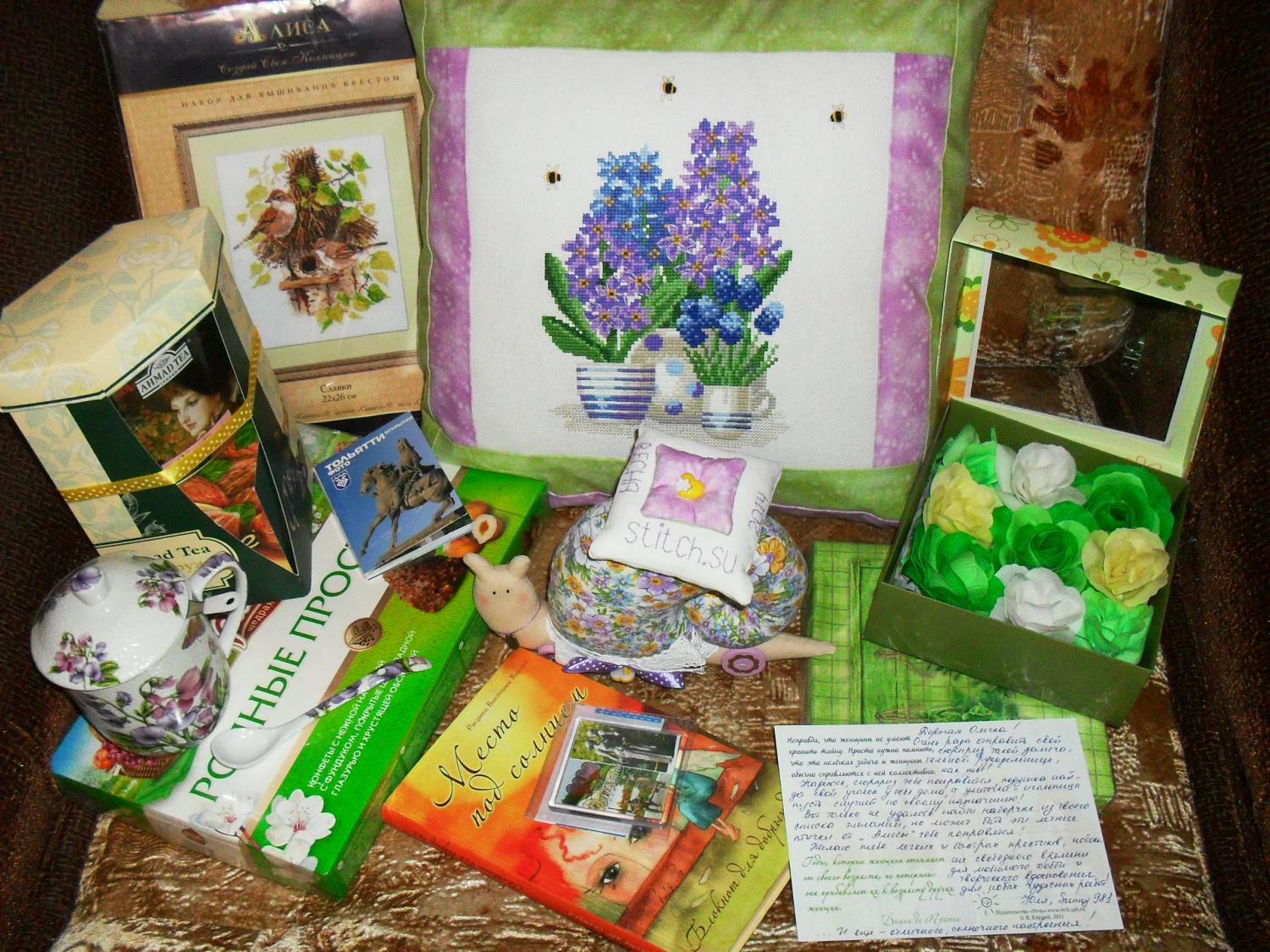 27 мая 2014 Перевела дух и хочу поделиться со всеми приехавшему ко мне сюрпризу из Тольятти от Юлечки - Sunny981. Сказать,что я в восторге, это ничего не сказать. Приятно было готовить сюрприз, а еще с большим трепетом ожидала ответного сюрприза. Впервые принимала участие в этом волшебстве и думаю не последний. Итак, сегодня добрая фея прислала мне подарки, я до сих пор пребываю в состоянии, как будто выиграла миллион. Спасибо Юлечка тебе огромное за доставленную радость. Внучка вцепилась в коробку и отдала мне ее только после того как я пообещала ей конфеты (уверена была, что они там есть) общий вид подушка чудо из чудес, сказала всем, что на нее можно только смотреть. Это первая вышитая подушка в моем доме, сколько я их вышивала, а как говорится сапожник без сапог улитка-игольница, но у меня рука не поднимется втыкать в нее иголки, поставила на самое видное место Набор от Алисы птички "Славки", розы-мыло аромат от них как от хороших духов, салфетки зеленые - весенние Блокнот для добрых дел "Место под солнцем", магнит на холодильник Тольятти и открытки с видами Тольятти Вкусности к чаю и восхитительная чашка с ситом внутри, крышкой и ложечкой. восхитительная открытка с добрыми пожеланиями Юлечка золотые ручки Dania, Бондаренко, belyasik и 30 других сказали спасибо Поделиться сообщением Ссылка на сообщение