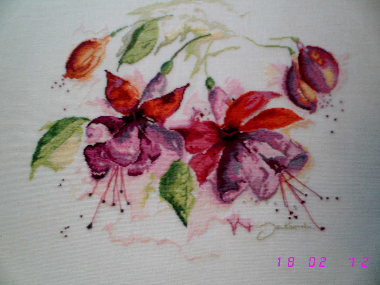 15 ноября 2011 А с фуксией такая история-очень нравится, но...очень большая. И я не долго думая убавила ее наполовину, стала крестики что в наборе идут в 2 нитки шить в 1, а те что в 1 пришлось делать полукрестом. Сейчас я бы не стала так шить, а взяла бы Беллану 20 и вышивала по ней как в наборе-в 2 и в 1 ниточки (но через 1 нить). Размерчик поменьше,и мороки знааачительно меньше. Жаль, что раньше была не знакома с этой тканькой, но она плотнее льна из набора. Поделиться сообщением Ссылка на сообщение