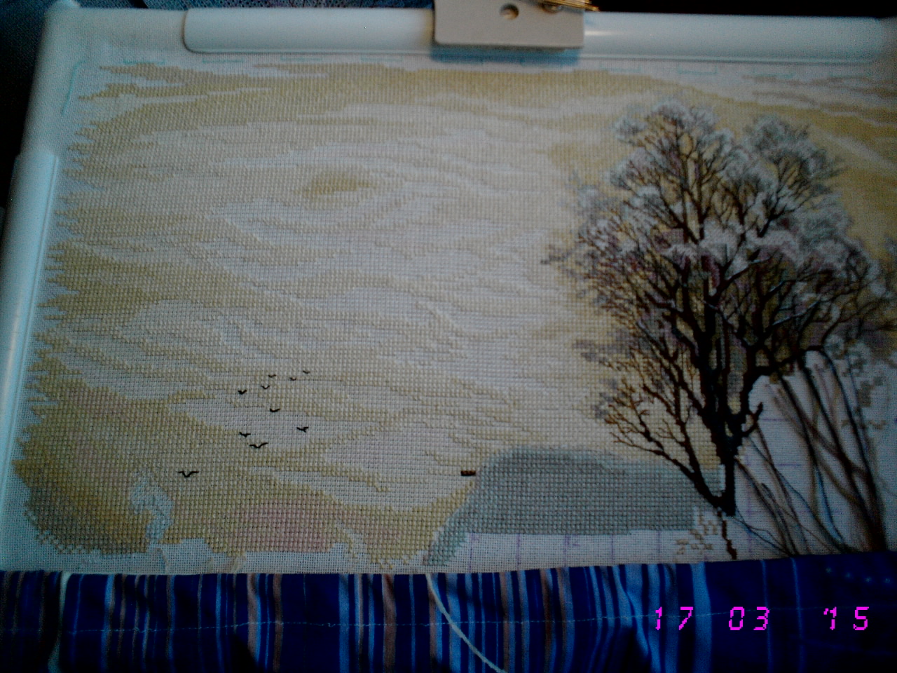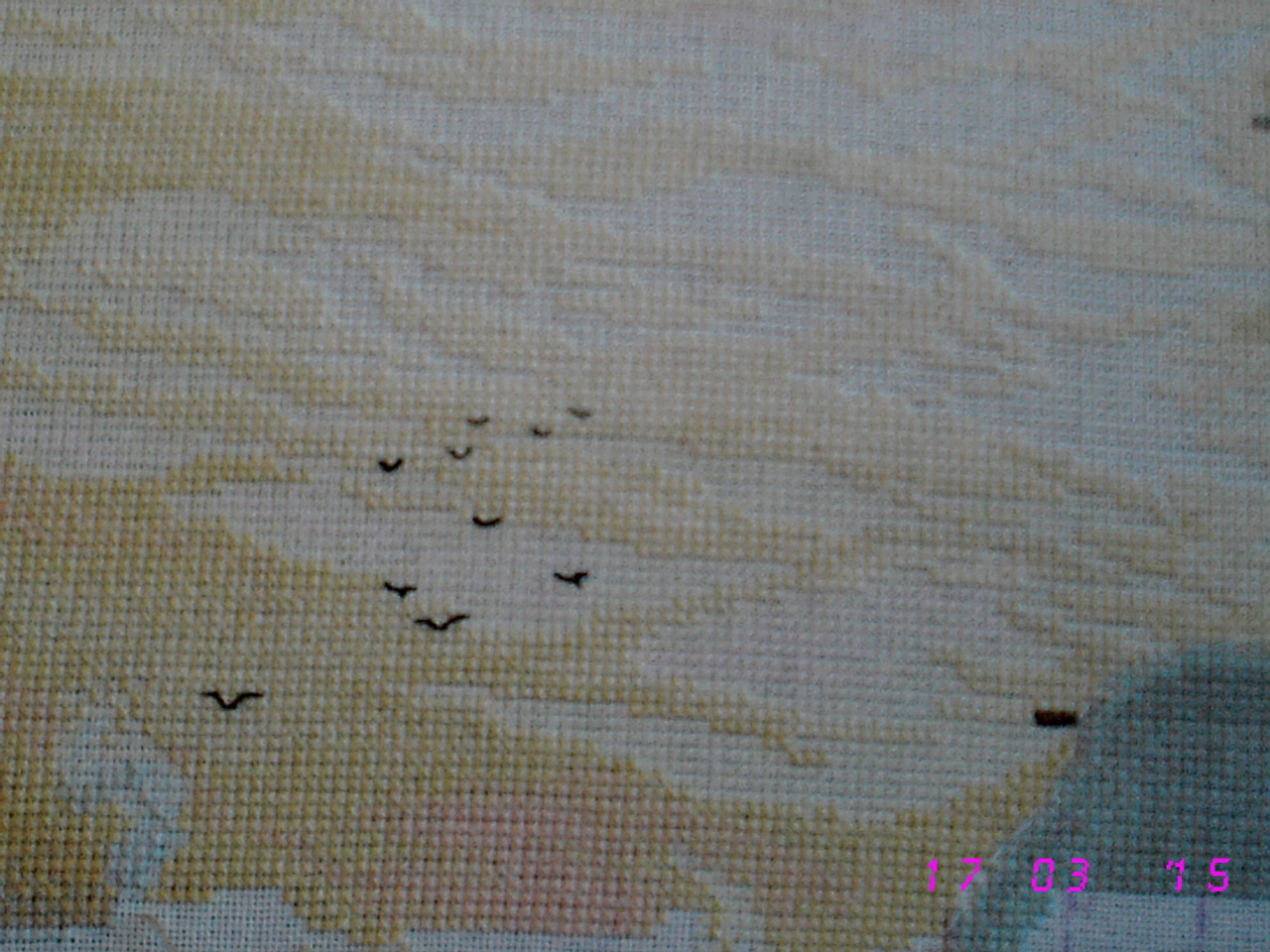 17 марта 2015 Вышилось бесконечное небо слева. Должна отметить, что шить было совсем не скучно! Даже появилась крыша ближнего дома и продолжаются вырастать веточки дерева. И поближе птички и веточки, как смогла Маняша, Lusha73, alex_sterh и 14 других сказали спасибо Поделиться сообщением Ссылка на сообщение