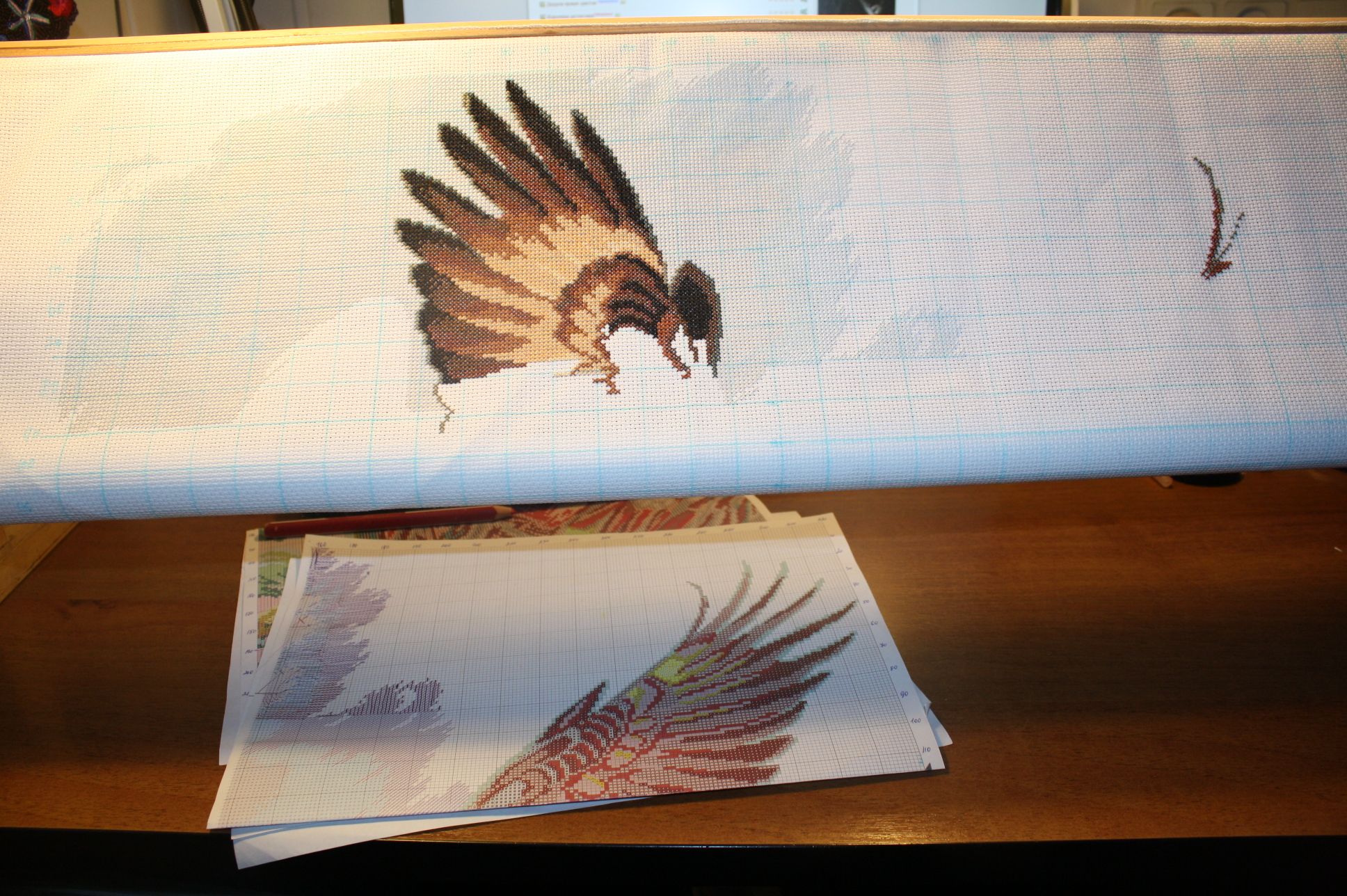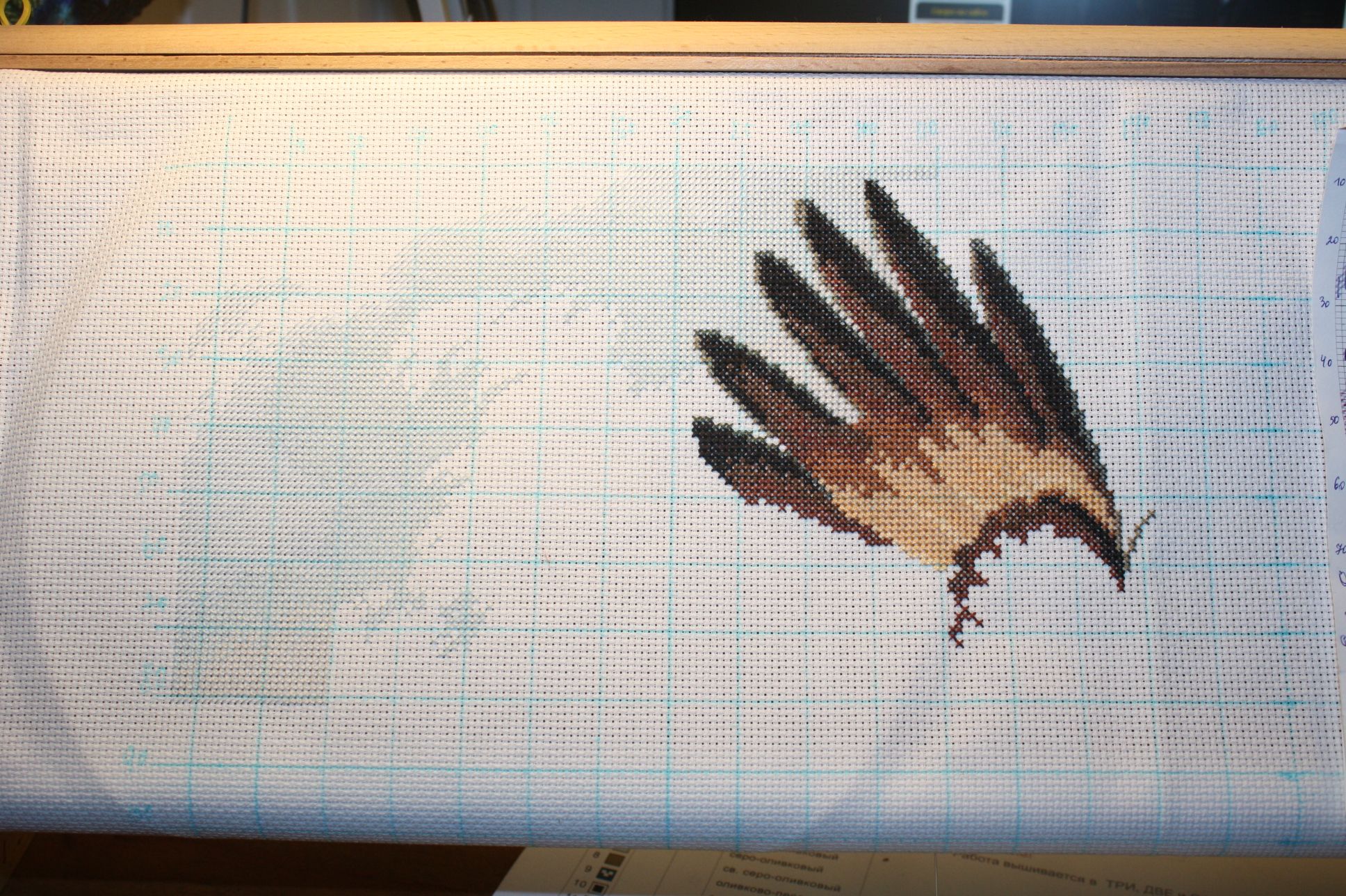 30 мая 2017 Девочки, всем огромное спасибо! Орлы потихоньку шьются. Очень много фона в одну ниточку. Размах крыльев у орла такой огромный, что сфотографировать нормально не получается. Схема нормальная, продуманная. Некоторые коричневые оттенки ниток настолько близкие по цвету, что при искусственном освещении толком не различаю. Готова примерно треть работы, сейчас буду немного перекручивать раму. katushka90, lesik, Кисуля и 2 других сказали спасибо Поделиться сообщением Ссылка на сообщение