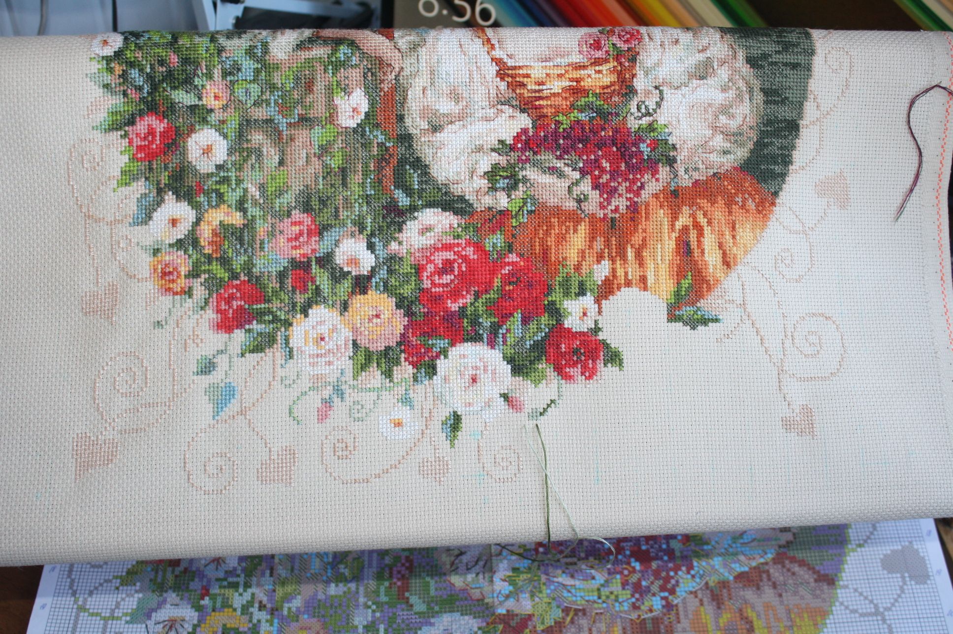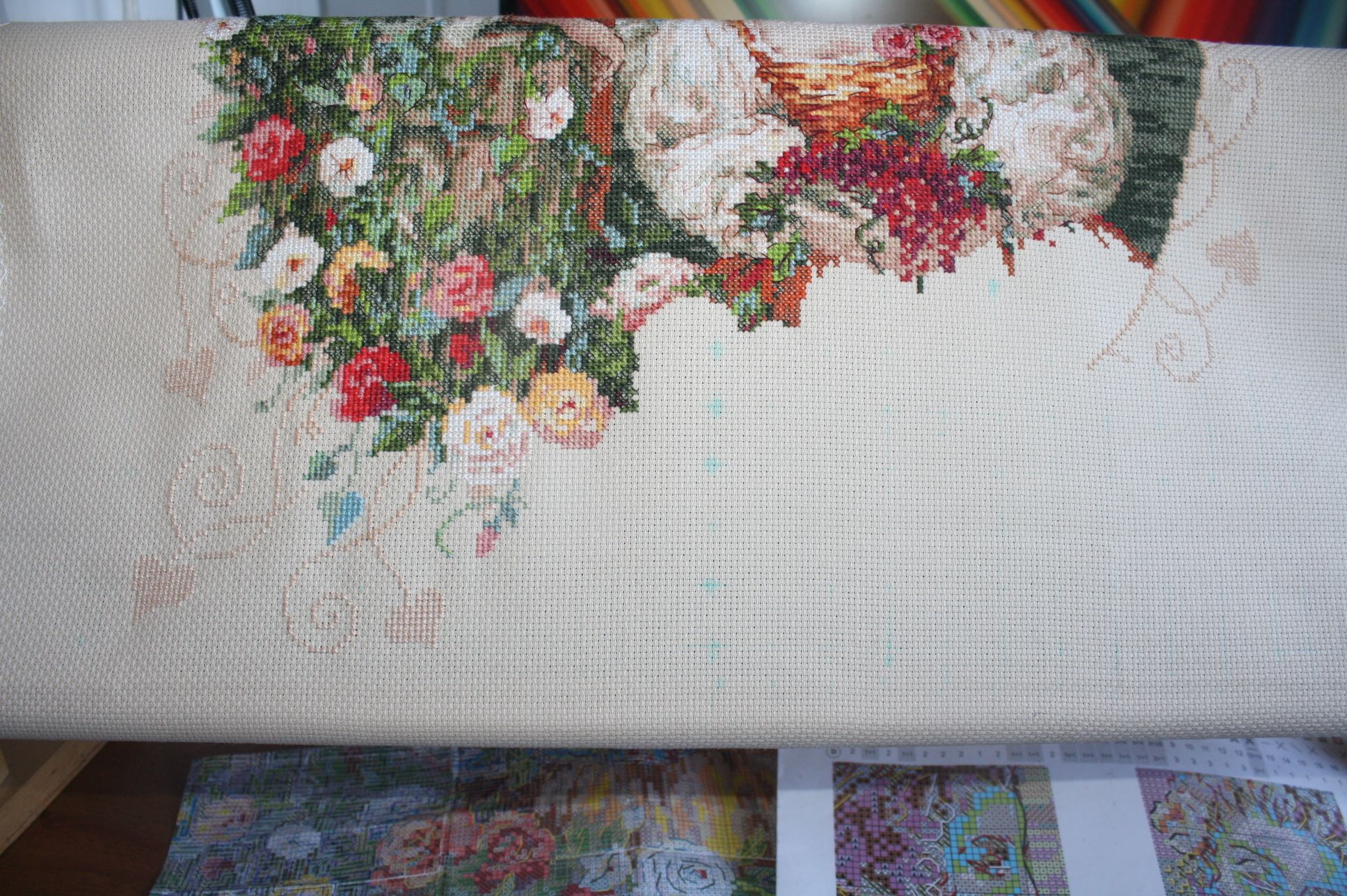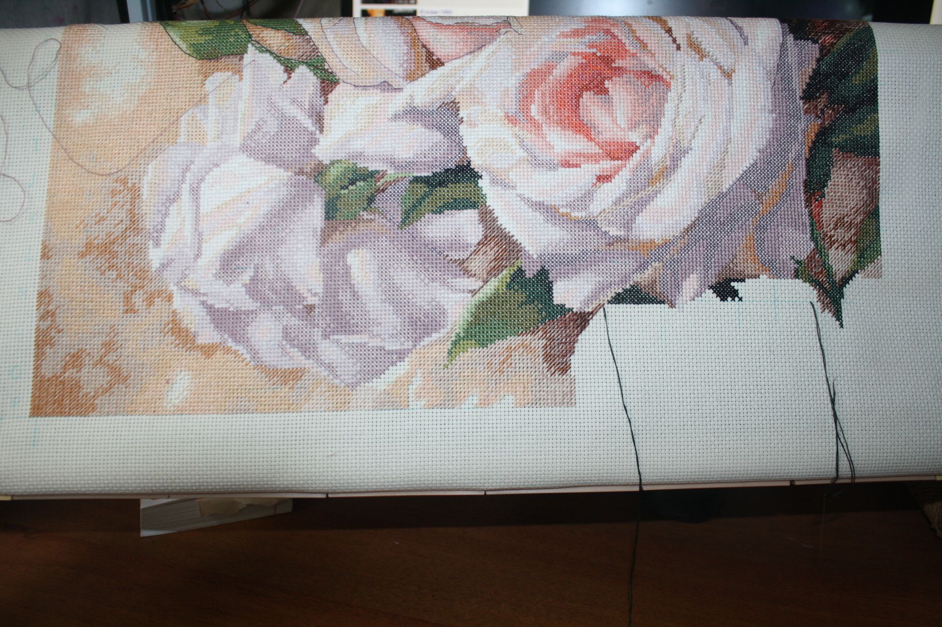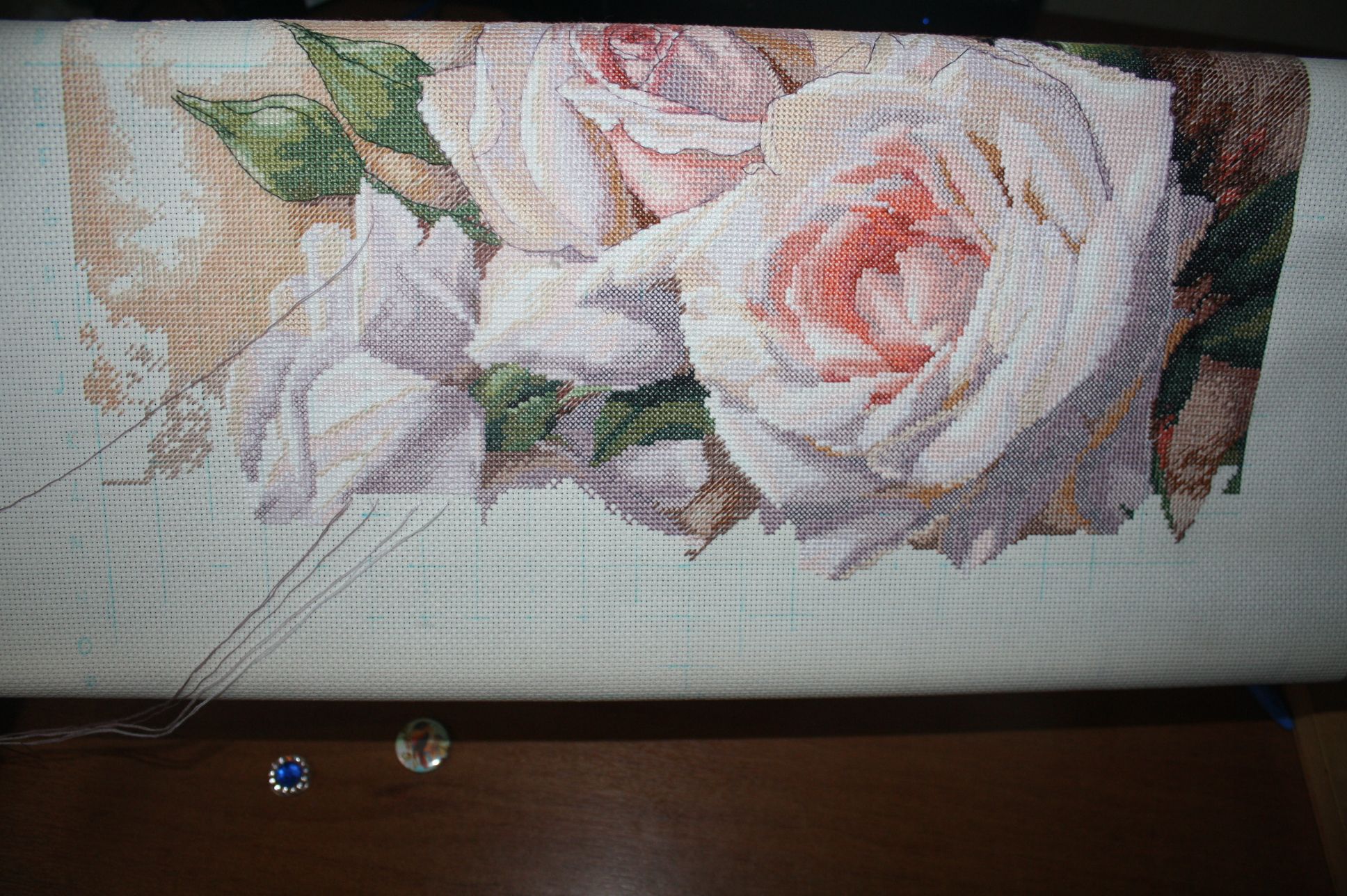 31 июля 2018 Закончила свои розы. Шила с 03 июня по 30 июля. Из отшитых Димов пожалуй самый легкий в исполнении. Только под конец надоело вышивать бледно-сиреневыми ниточками, захотелось каких-то цветов поярче. Белые розы вышиваются совсем небелыми нитками, белых там совсем немного. Очень странно, но номер 15356 закончился и его немного не хватило, 18403 черный закончился весь, прямо до последней ниточки использовала, 14223- осталась одна ниточка. Остальных всех хватило. То ли я стала такая неэкономная, то ли ниток мало. Из-за того, что 15356 закончился пришлось фон внизу работы шить тем что было, взяла очень близкий цвет из этого же набора. Наверно только очень ярый ценитель этого дизайна найдет разницу, мне самой не особо видно. Осталось за малым: оформить и подарок для мамы готов! Ветер, yesenia_autumn777, AngelN и 9 других сказали спасибо Поделиться сообщением Ссылка на сообщение