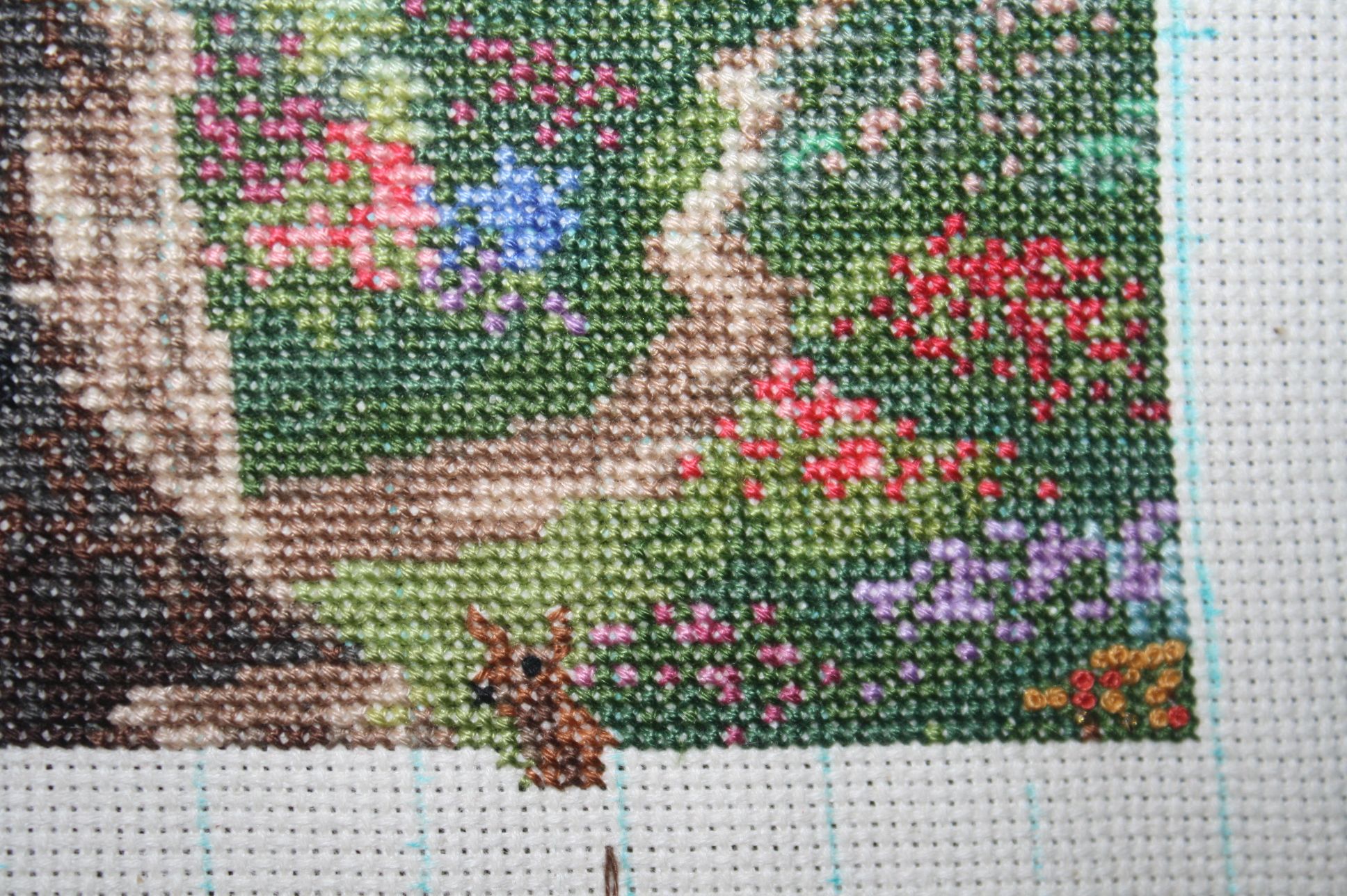 26 мая 2019 Готова ровно половина! Верхний правый угол дался тяжело. Когда закончила его, со стороны кажется что шить совсем ничего, а когда шила , казалось , что никогда это не закончится. Зато результат очень красивый. Блестящей ниточки использовалось так много, что под конец стала переживать, что не хватит и экономила со всех сил. Но хватило и даже осталось. Умудрилась перепутать бэк на замке: надо было в 2 светло голубой, а я каким-то образом сделала в 1 светло коричневой.. поспешишь -людей намешишь... не нужно торопиться, все таки 3 планшетки с нитками сыграли злую шутку со мной. Выпарывать очень сложно, можно повредить блестящую ниточку, там бэк очень часто несчетный. Решила оставить как есть, издали смотрится нормально. На этой половине уже начали появляться цветы-фрузы, специально сделала фото-макро и там же появилась голова олененка. Там ушки - сплошные недокрестики, но он из-за этого получился таким миниатюрным и милым. Пока его не отбэкивала, сделаю сразу весь, как полностью его вышью. Некотрый бэк умышленно не делала или делала в одну нить, так показалось лучше. Ну и чищу схему от непонятных черных крестиков не к месту. maui, Lady_flame_))), Дикая белочка и 8 других сказали спасибо Поделиться сообщением Ссылка на сообщение