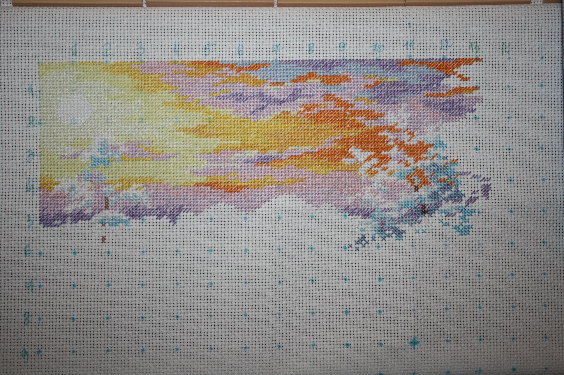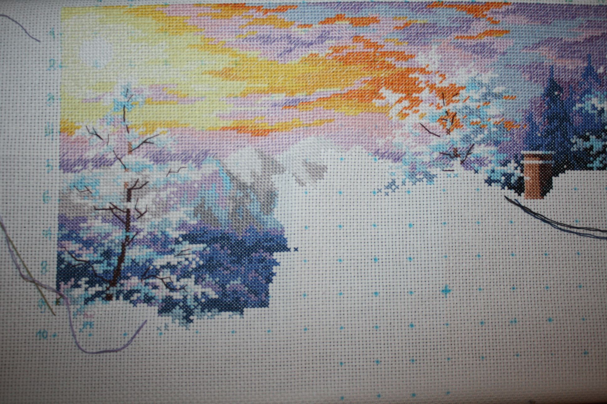 14 января 2020 Чудесная игла, 45-08, Зимняя сказка, 33 цвета, нитки Гамма, нарезаны безобразно, разная длина ниток в нарезке, это очень заметно когда идут блэнды. Небо всё полукрестом в 4 нити. Вся картина у меня почему-то воспринимается в синих тонах, но пока шью небо и синего тут мало. Накрылся фотоаппарат и фото с подготовкой накрылось. Ветер, Egelia, ЛАДОМИРА и 3 других сказали спасибо Поделиться сообщением Ссылка на сообщение