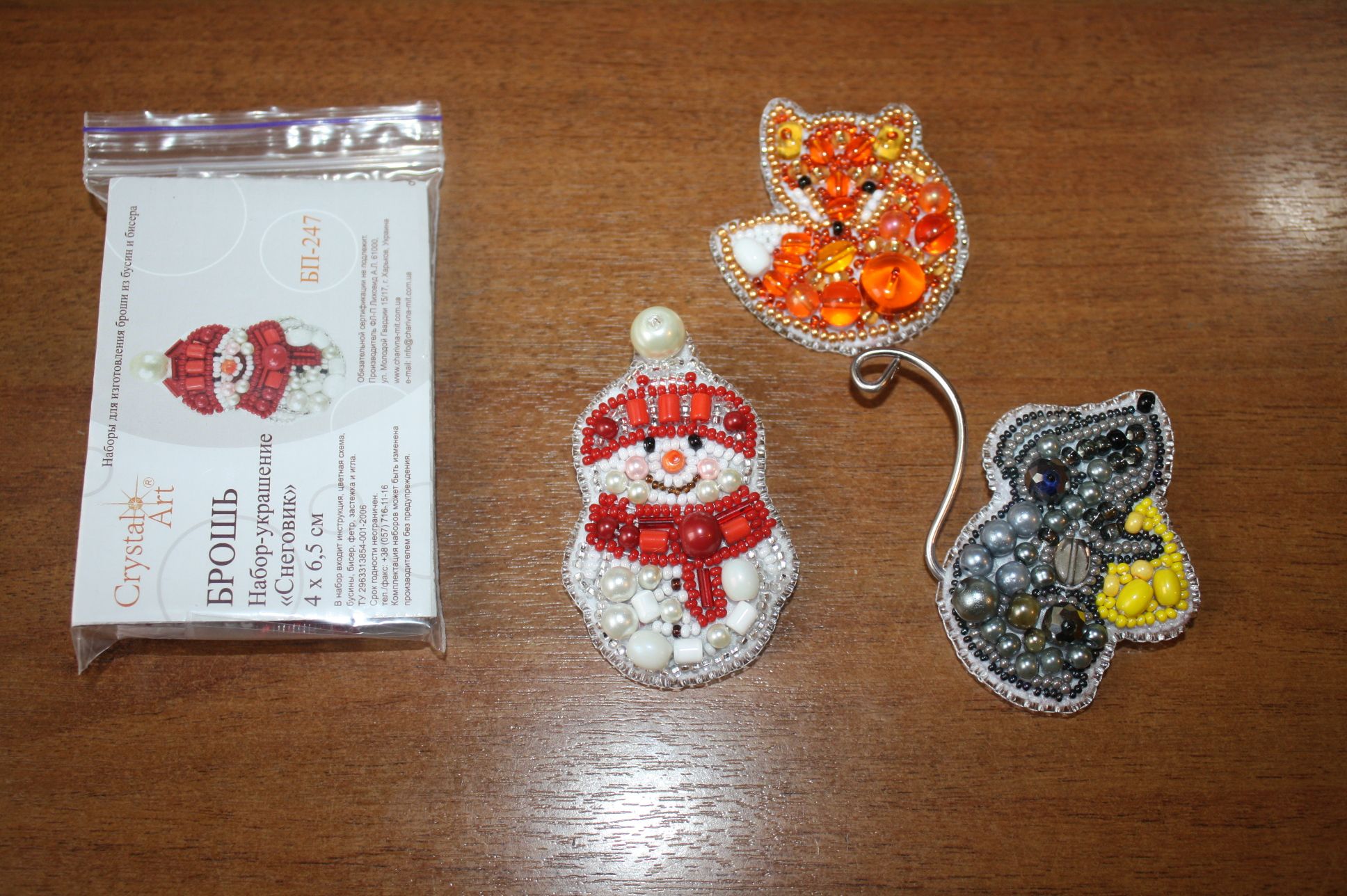 9 февраля 2020 CrystalArt , БП-247, Брошка "Снеговик". Когда начала, то хотела сделать магнитом, потом все-таки сделал брошью. Милота. Вышивается быстро. Такие украшения можно делать и без покупки набора, если есть куча всяких бусинок. Я чего-то накупила аж 7 наборов, теперь развлекаюсь. В наборах не вложены нитки, а так все удобно, все бусинки в разных пакетиках. Я даже коробку использовала для того, чтобы вырезать задник. Остатки от набора сохранила, чтобы к следующему НГ по мотивам сделать снеговичков в небольшие презенты. Сделала уже три брошки. Делаются быстро, так что не успеваешь фотографировать. У мышки так прочно пришила хвостик, что так просто не оторвешь . Иногда отходила от схемы , между большими бусинками вшивала мелкий бисер, чтобы не бросались в глаза просветы. Особенно много вшивала дополнительно у лисички. Бусины пришивала дважды, чтобы сидели прочно. Кисуля, Дикая белочка, irinka-mandarinka и 5 других сказали спасибо Поделиться сообщением Ссылка на сообщение