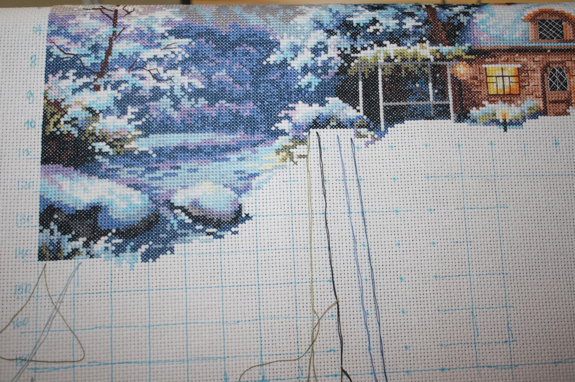 16 января 2020 Китайская зимняя тишина. Финишное фото. При каком бы свете не фотографировала, снежок не видно, но его там ооочень много. Вся картина во фрузелках, а на небе его ну никак не видно. Каждый фрузелок отдельно закрепляла. Часть бэка делал произвольно. Где-то на половине работы услышала, что китайская канва сильно садится и поэтому большую часть бэка оставила по потом. Так вот результат: до стирки 46,5*29,1 см, после стирки и глажки 45,5*28,6 см. Никакой усадки по 2-3 см, как говорили нет, бэк который был сделан заранее не провис. Бэка много, но т.к. не успела дошить работу до 31 декабря, потом его делала частями в очень спокойном режиме и поэтому от него совсем нет усталости. yesenia_autumn777, ЛАДОМИРА, Кисуля и 4 других сказали спасибо Поделиться сообщением Ссылка на сообщение