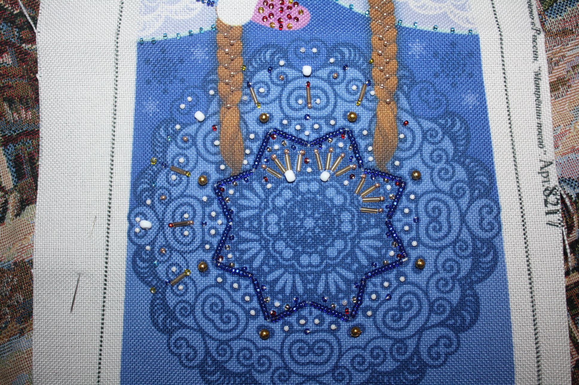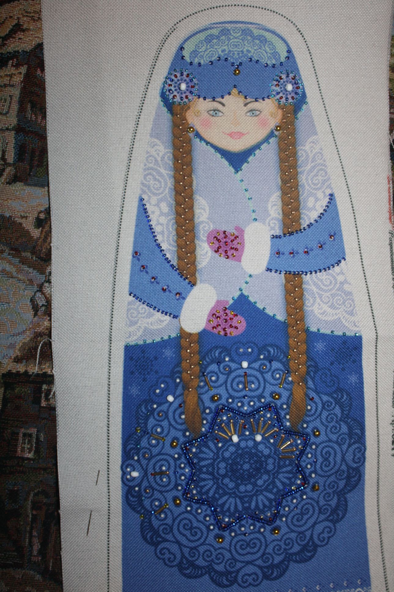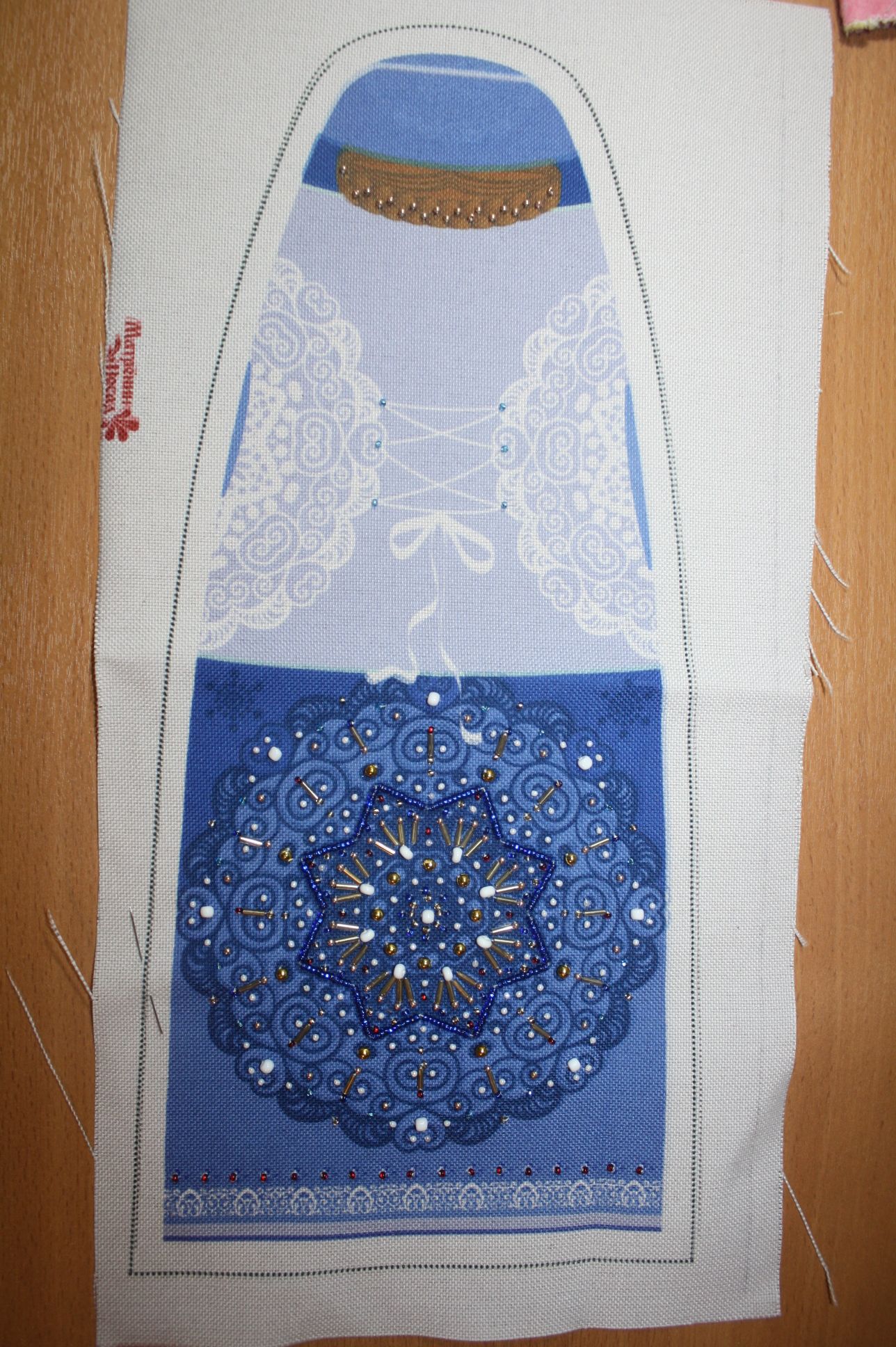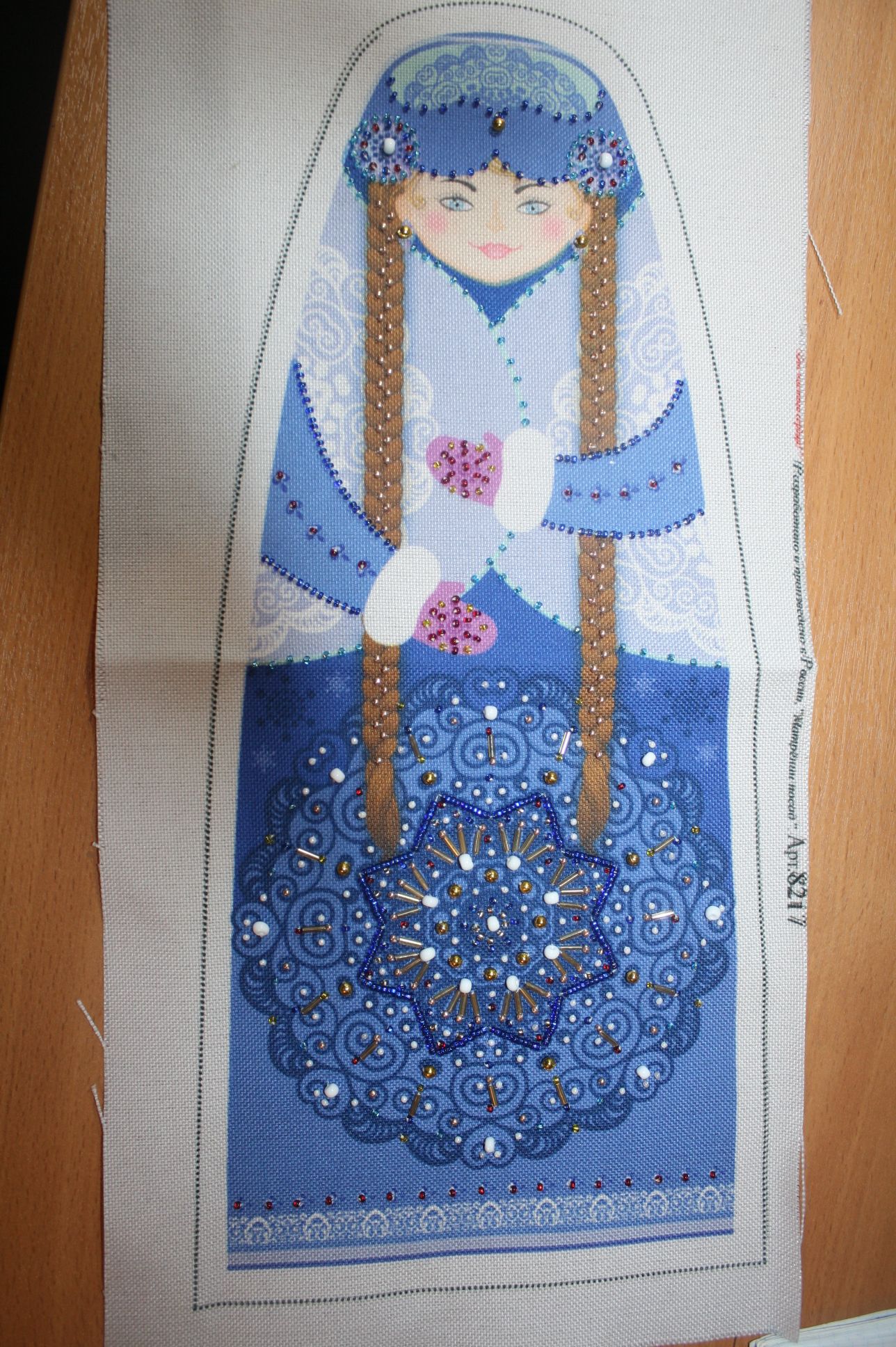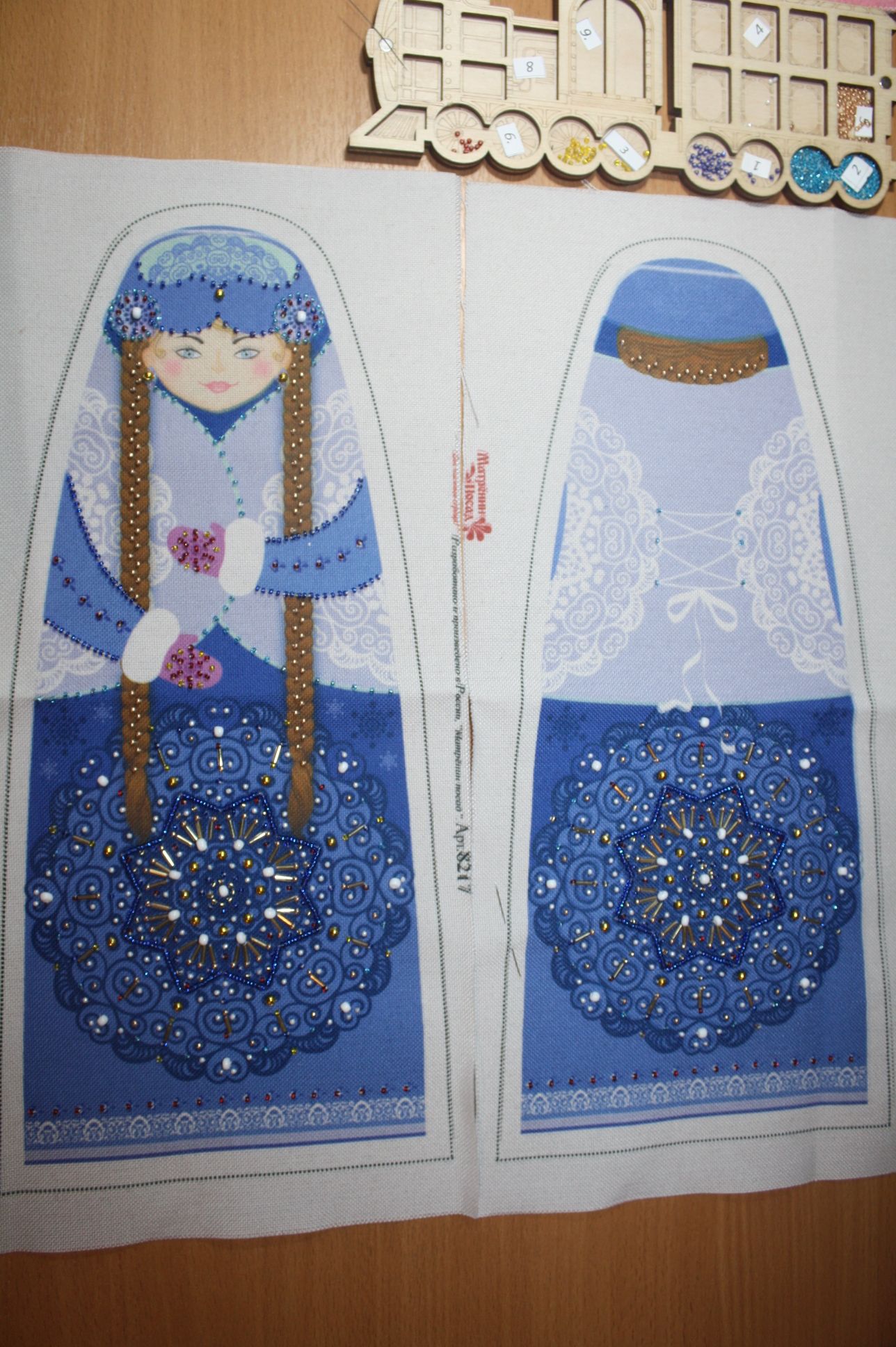11 декабря 2020 1. Продвижение по Павлину 2. Дед Мороз сшит. Пришила подкладку, укреплять не стала. Стоит устойчиво. 3. Матренин Посад, арт 8217, Снегурочка. В пару к Деду Морозу. Шьется на порядок легче, сшивается тоже легче, т.к. нет очень близко к краю пришитых бисеринок. Качество комплектующих среднее, что-то хорошего, что-то плохое. Белые бусины пришлось очень сильно выбирать, тесьма тоже не очень, но набор стоил недорого, поэтому грех жаловаться. Результат мне очень нравится. Не укрепляла дополнительно, сшила подкладку из тонкой подкладочной ткани. Для понимании размера поставила рядом бутылку шампанского. Одевается/снимается с бутылки легко. Выглядит нарядно. Будет стоять под елкой с Дедом Морозом. Ксен40, irinka-mandarinka, SusannaT и 5 других сказали спасибо Поделиться сообщением Ссылка на сообщение