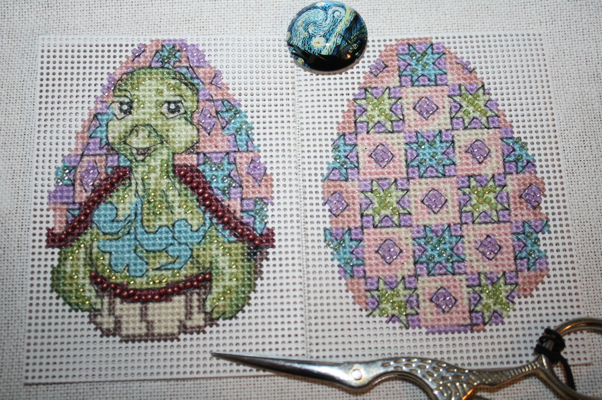 22 февраля 2021 1. Закончила черепашку. Превосходный результат. На такую малютку очень много бэка. Задняя часть невероятно красивая. Сшивала как-то неожиданно долго и сложно. Хотелось красиво сшить, но то нитка путалась , то ложилось некрасиво и через бумажную дурочку тащить 6 нитей как-то боязно было, а вдруг все порвется. По итогу бросила париться и сшила как смогла. Первый блин получился немного комом, но это если уж совсем сильно приглядываться. 2. Продвижение по новогодней юбке. Готов четвертый персонаж- центральный пес и лапка кота. Ну тут никаких проблем. Огроменная канва с огроменными крестиками. Как ни странно- смотрится все хорошо, нет никакой пиксельности. yesenia_autumn777, ЛАДОМИРА, Кисуля и 3 других сказали спасибо Поделиться сообщением Ссылка на сообщение