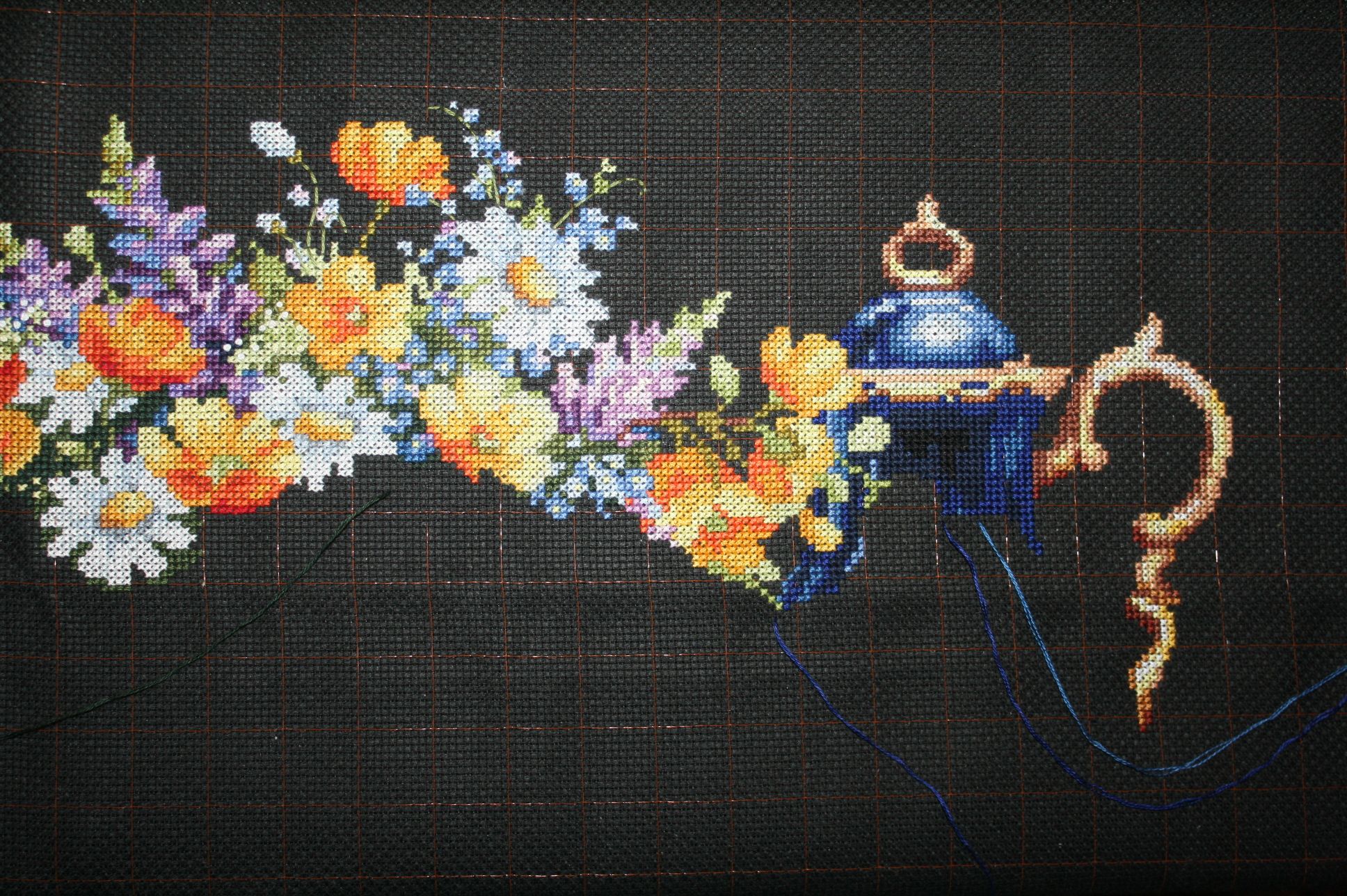 1 апреля 2021 1. Небольшой новый процесс. MH JS 20-1912 Kitty. В пару к собачке. Вышивала по перенабору по ключу. 18 цветов ДМС, 4 цвета бисера.В щеках изменила цвет с розового на бежевый. Вышивала на белой пластиковой канве. Сзади закрыла белым фетром. Никаких проблем. одно удовольствие и теперь у меня есть парочка в новогодних шапках. 2. Панна, арт СО-1578, Венок изобилия. Канву заменила на более крупную, похожую на мешковину. Это из неопознанного, купленного лет 10 назад, когда я еще не вышивала вообще. Очень похожую на ту, что раньше вкладывал Риолис. 3. Продвижение по Чудесной игле. Наконец-то дошла до чайника. Из-за цвета этого чайника набор и был куплен. 4. МН, Домик из сахарных печенек немного продвинулся. Как ни странно, но из-за отсутствия разметки ужасно неудобно считать крестики в рамке и ошибиться нельзя. Ксен40, Дикая белочка, ЛАДОМИРА и 6 других сказали спасибо Поделиться сообщением Ссылка на сообщение