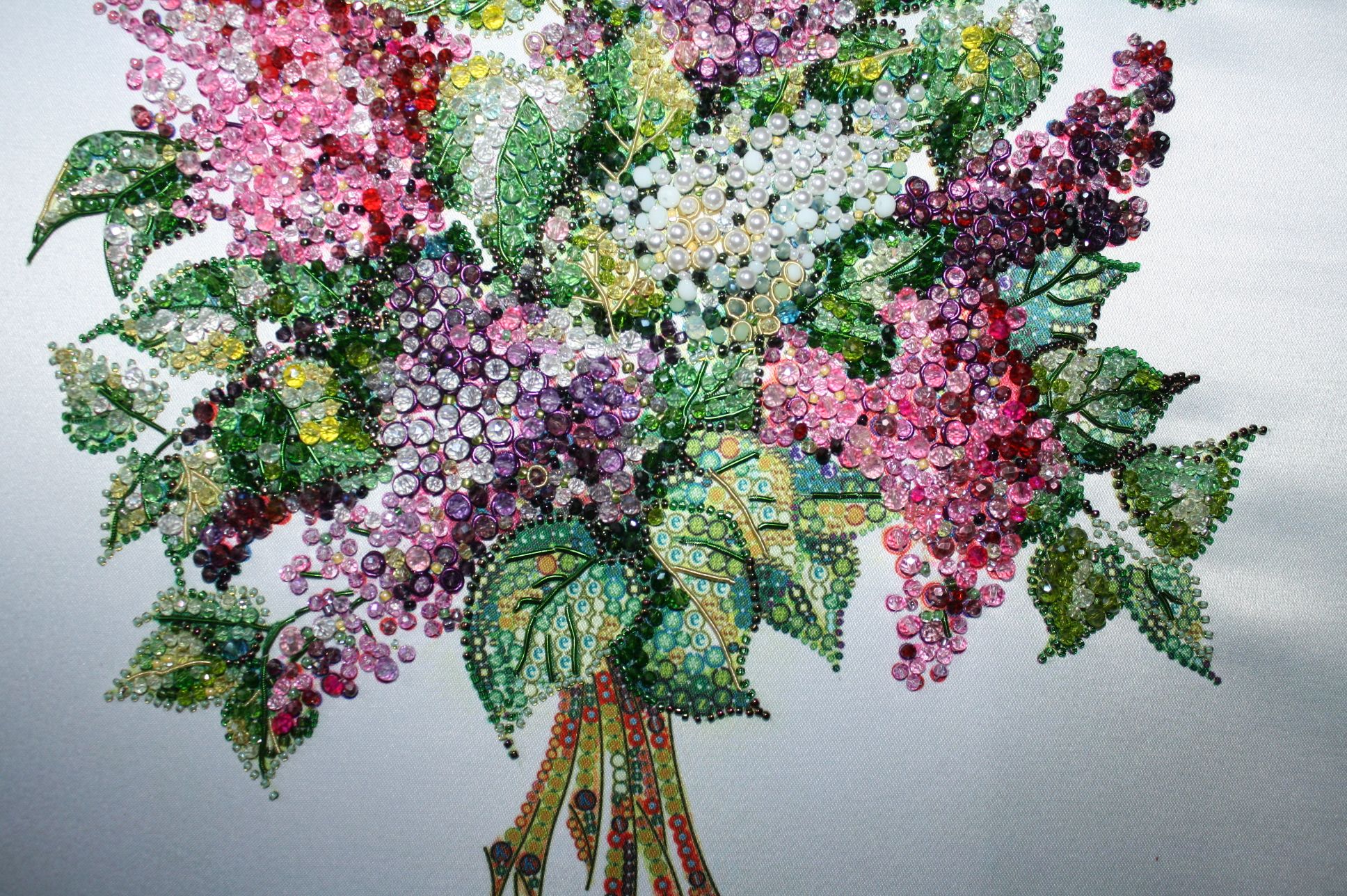 23 сентября 2022 maui,Оля, спасибо! Мышек я всё-таки закончила! У меня случилось 2 финиша: 1. Образа в каменьях. Красота, всё блестит и переливается. Но 77 видов бисера и бусин-это как-то многовато. На правую нижнюю гроздь не хватило канители, скорее всего по моей же вине. Поэтому я там вшивала дополнительно бисер и бусины, чтобы гроздь не была "лысой". 2. Моя Химера. 350*472=165.200ххх. Начала 19.06.2019г., закончила 24.09.2022г., по калькулятору дат= 3 года 3 месяца и 5 дней. Ни один из моих гаджетов не делает нормальное финальное фото. Вживую всё не так контрастно. Смотрится замечательно. Размер на 16 канве вышел приличный -55*75 см. Если бы шила упорно каждый день, то закончила бы гораздо быстрее, но на этот процесс выделяла один день в неделю. Дикая белочка, Фенечка З, Valentina22 и 6 других сказали спасибо Поделиться сообщением Ссылка на сообщение
