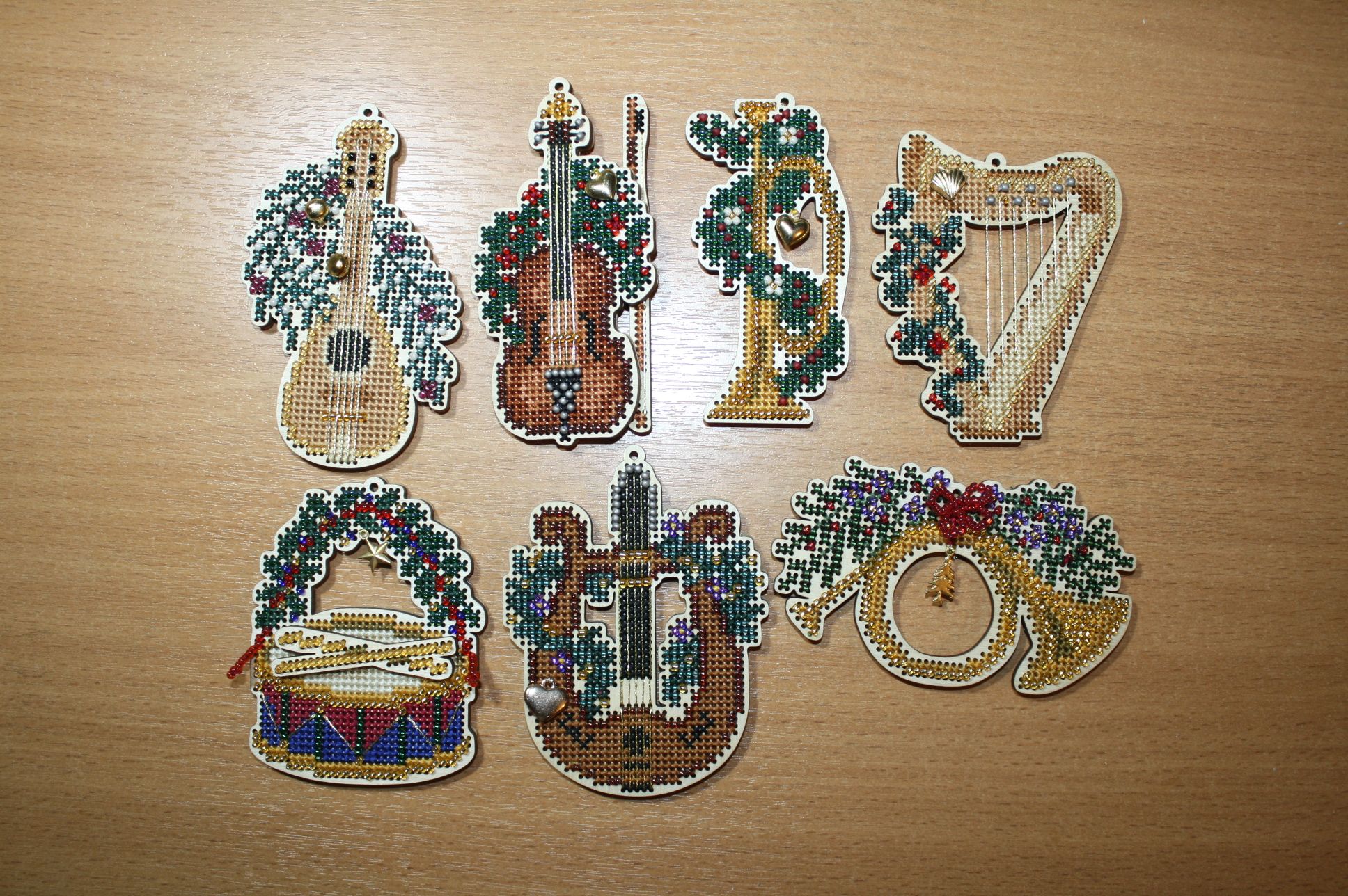 6 декабря 2022 Дикая белочка, maui, девочки, спасибо! Дошила серию МХ-игрушек! Струны сделала целой пасмой металлика, мне так больше понравилось. Из-за жесткой основы они натянуты прочно. Лиру вышивала из остатков, поэтому немного не хватило одного цвета бисера. Ниток хватило и даже еще осталось. Сзади фетр. На лире пришила шармик -сердечко, а по идее должны было бубенчики. Получилась нарядная серия. Общий вид на последнем фото. 1. МН16-7301 2. МН 16-7303 3. По схеме из интернета. LYRA ORNAMENT Дикая белочка, Beniki, Кисуля и 4 других сказали спасибо Поделиться сообщением Ссылка на сообщение