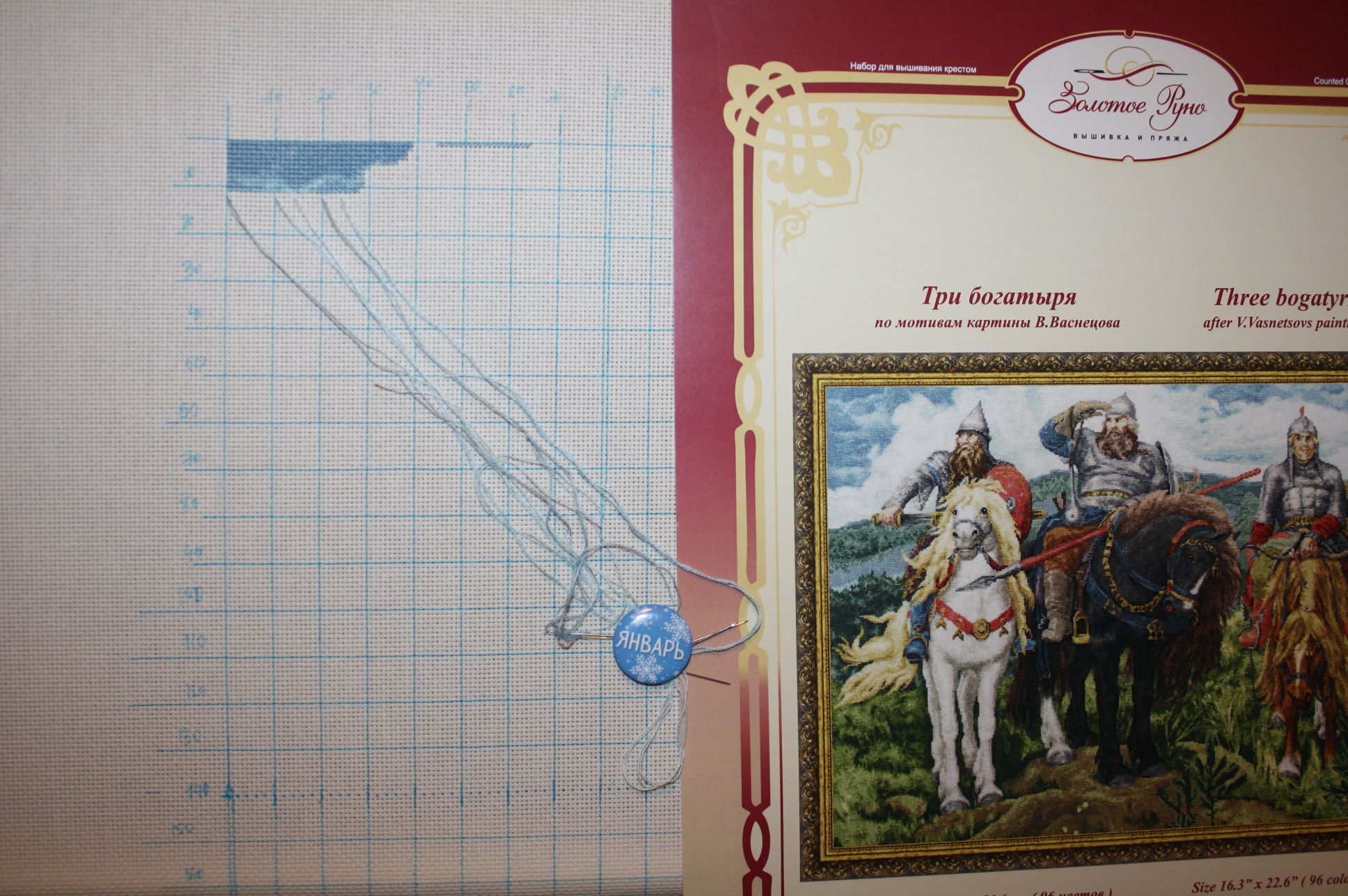 5 января 2023 Покажу, что я настартовала за 4 новогодних праздничных дня. 1. ЗР "Три богатыря", Канва 18 каунта, 96 цветов Мадейра, размер 406*287. Первые 1500ххх, ооочень надеюсь закончить к концу года. Шить ниточками Мадейра сплошное удовольствие. Вроде ничего особенного, но вышитая часть неба выглядит хорошо, как кусочек дорогой ткани. 2. МП-студия, НВ-608, 18 канва, мулине Гамма 25 цветов, размер 163*113. Схема цвето-символьная. Это подарок старшего сына на НГ. Забавный, милый сюжет. Пока на вышитой части не сделал бэк- вообще было непонятно что на канве. 3. Dimensions 70-35404. Синяя канва 14 каунта, куча ниток и весь дизайн шьется в 2 нити, крест и полукрест, бэк.. Пока только начало, ничего сложного. Буду шить потихоньку. Alinia, solnishko-ym, Дикая белочка и 5 других сказали спасибо Поделиться сообщением Ссылка на сообщение