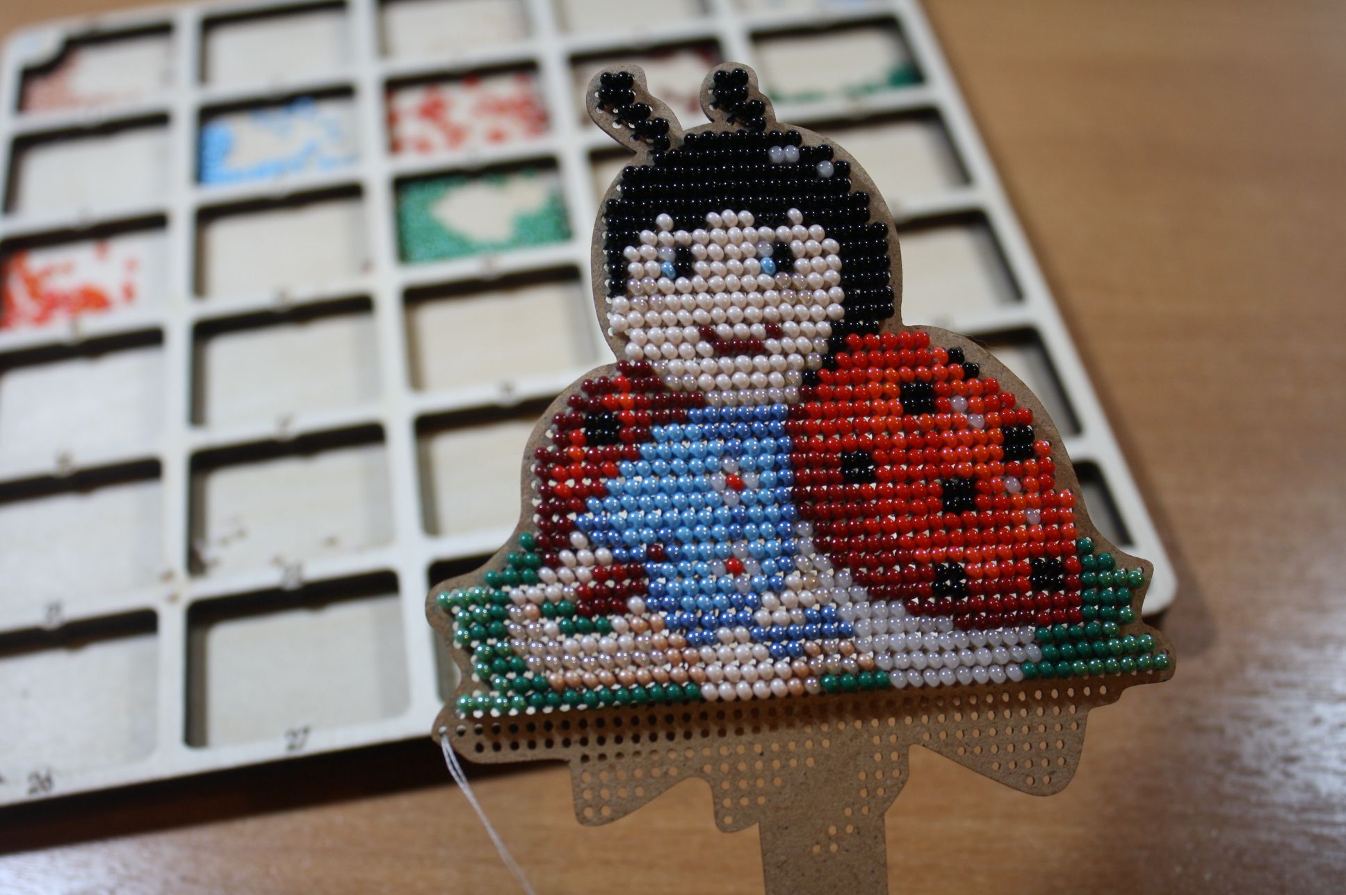 7 июня 2023 1. Немного пошились богатыри. Очень тормозит небо. Как-то тяжко: белым по белому. 2. Начала и закончила небольшую сумочку на пояс. Баттерфляй LB101, Иньи Янь. Это я попала на какую-то распродажу сумок и купила от жадности сразу 3 штуки. Мягкий кожзам, всего 2 цвета бисера. Как обычно: немного неудобно вышивать на уже готовом изделии, ну все равно в удовольствие. Возможно подарю, если пойму что она кому-то подойдет, либо сама буду использовать когда катаюсь на роликах. 3. Начала новый бисерный процесс. Золотые ручки , И-002, Ангел Хранитель, 30 цветов бисера, 2 вида страз. Страз прямо по счету. Пришлось пересчитать каждую на бумажной схеме. Только по цвету положили рандомно, не получится так на обложке. Размер 186*194ххх. Первые тысяча бисеринок. Хозяйка смешных зверей, Ксен40, Кисуля и 5 других сказали спасибо Поделиться сообщением Ссылка на сообщение