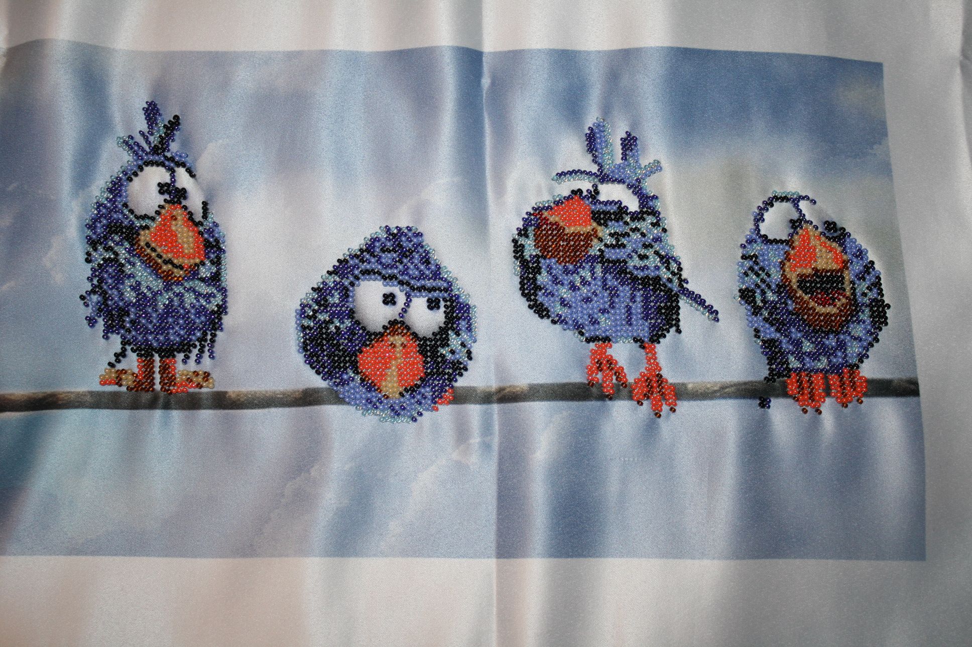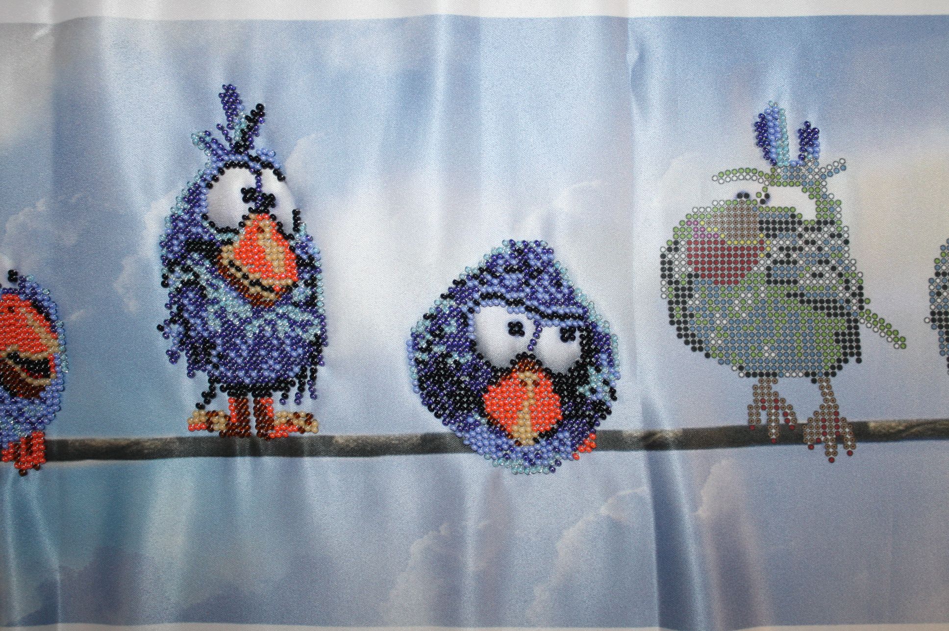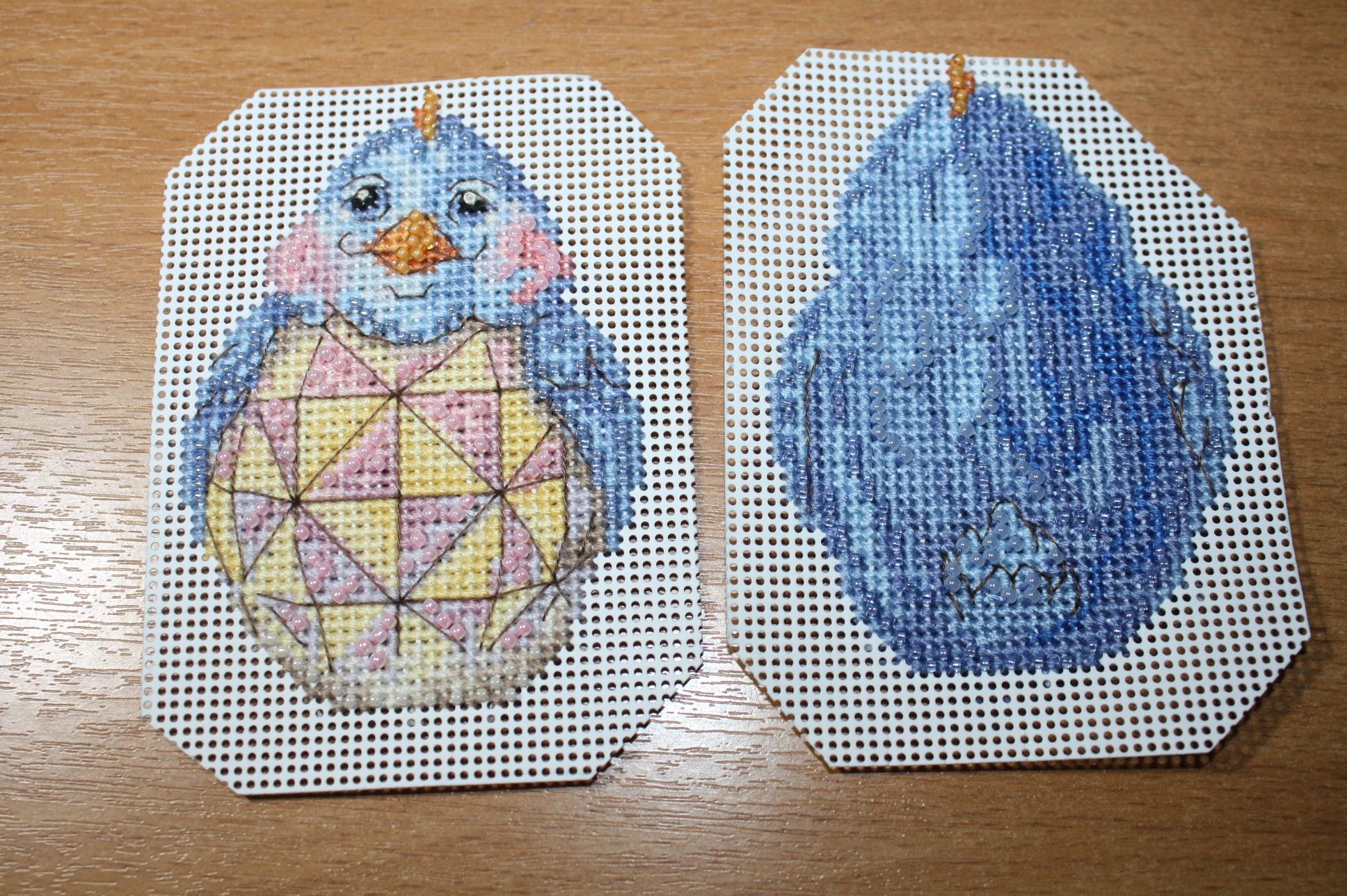 25 марта 2023 1. Закончила своих воробьев. Бисера всего хватило. Ткань тонковата и как бы я не шила, все равно стянуто. Но при натяжке все исправится. Полностью сфотографировать не получается, т.к. в длину все это больше метра. 2. МН JH18-1711.Синий цыпленок. 19 цветов мулине и 5 цветов бисера. Этот с пухлыми щечками. Хозяйка смешных зверей, Забава_, ЛАДОМИРА и 6 других сказали спасибо Поделиться сообщением Ссылка на сообщение