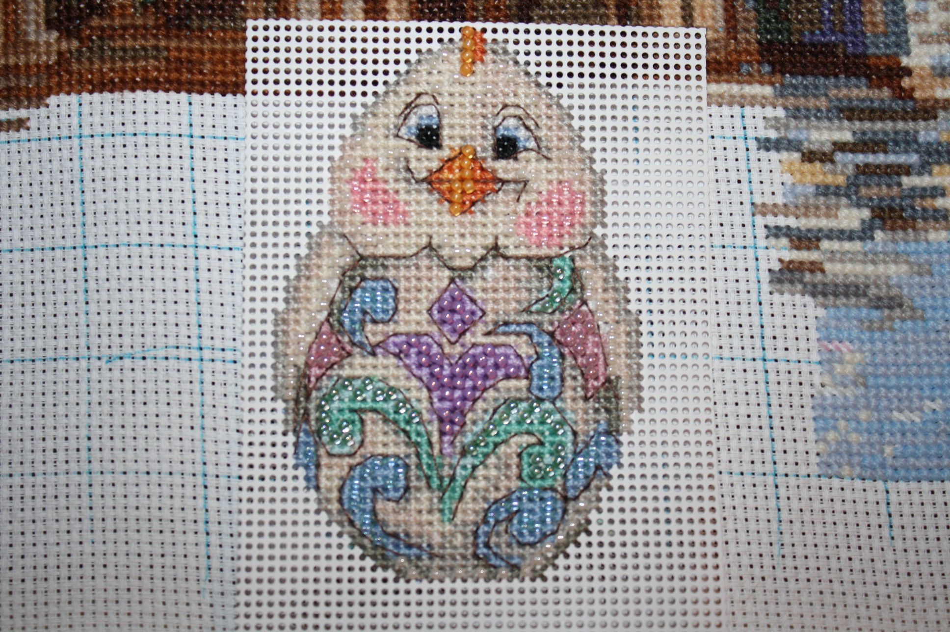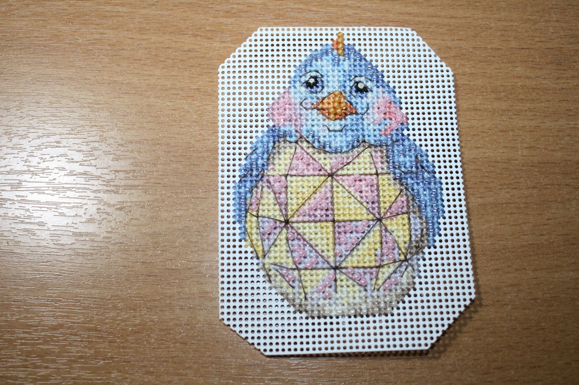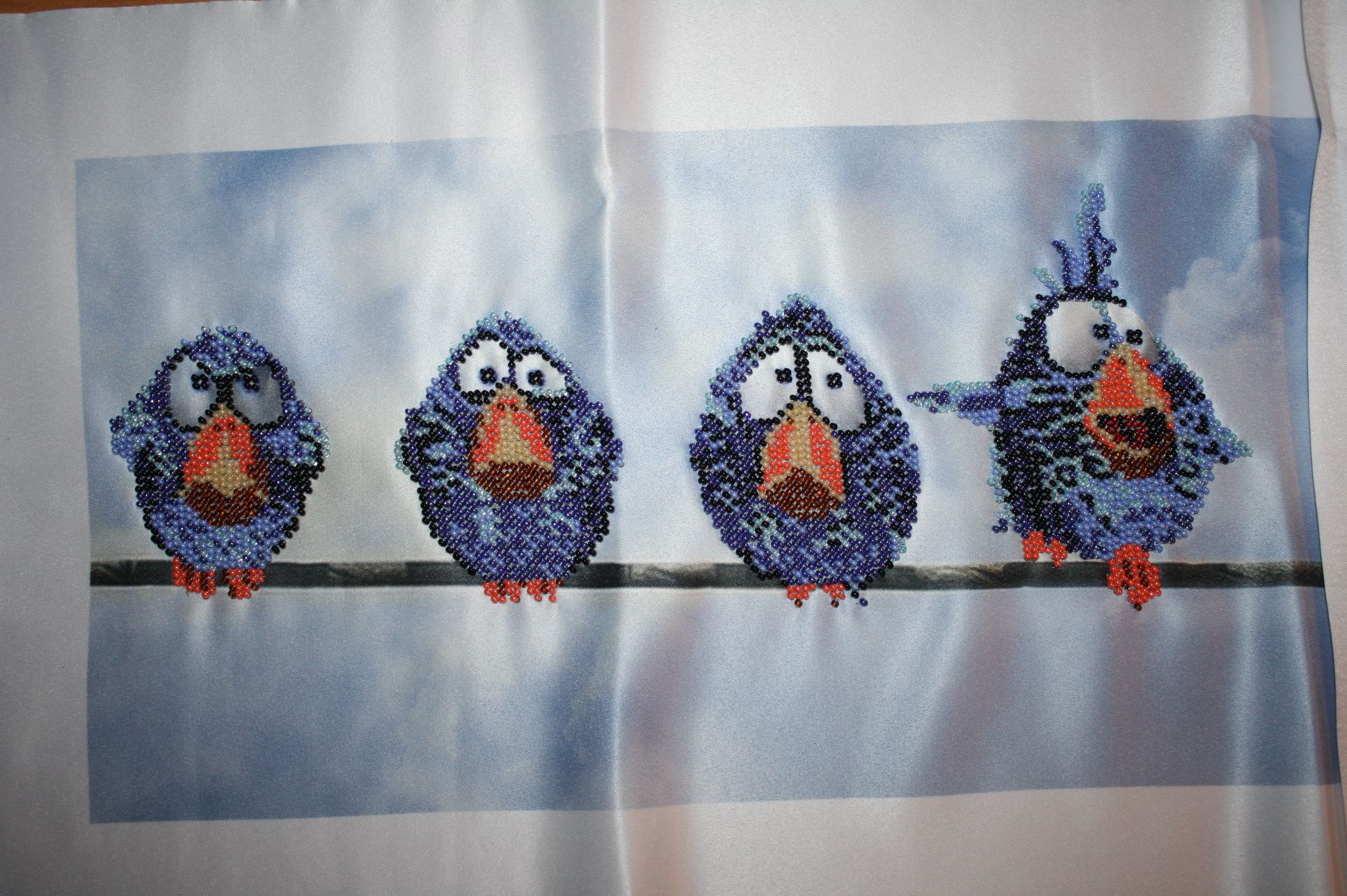 25 марта 2023 1. Закончила своих воробьев. Бисера всего хватило. Ткань тонковата и как бы я не шила, все равно стянуто. Но при натяжке все исправится. Полностью сфотографировать не получается, т.к. в длину все это больше метра. 2. МН JH18-1711.Синий цыпленок. 19 цветов мулине и 5 цветов бисера. Этот с пухлыми щечками. Хозяйка смешных зверей, Забава_, ЛАДОМИРА и 6 других сказали спасибо Поделиться сообщением Ссылка на сообщение
