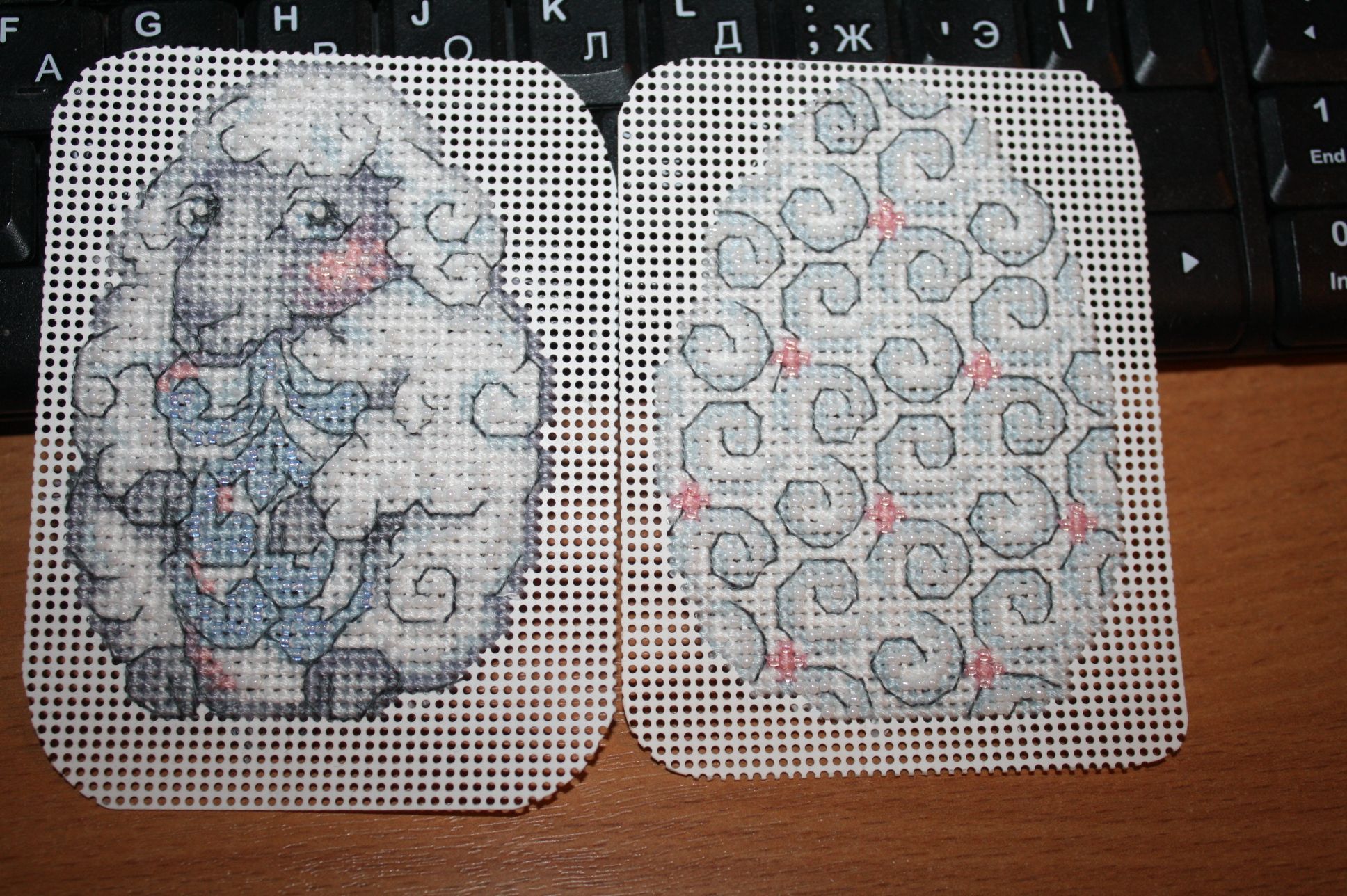28 апреля 2023 1. Закончила матрешек. Вышила и оформила двух последних. 2. Закончила овечку. Вышивать её было сложно из-за обилия белого. Из бисера используется только петит. Овечка получилась ажурная и очень нежная. 3. Продвинула своих котов. Эта белая кошка просто не заканчивается. Она огромная и вышивается разными оттенками белого или близкими к белому цветами. Дикая белочка, Кисуля, Забава_ и 6 других сказали спасибо Поделиться сообщением Ссылка на сообщение