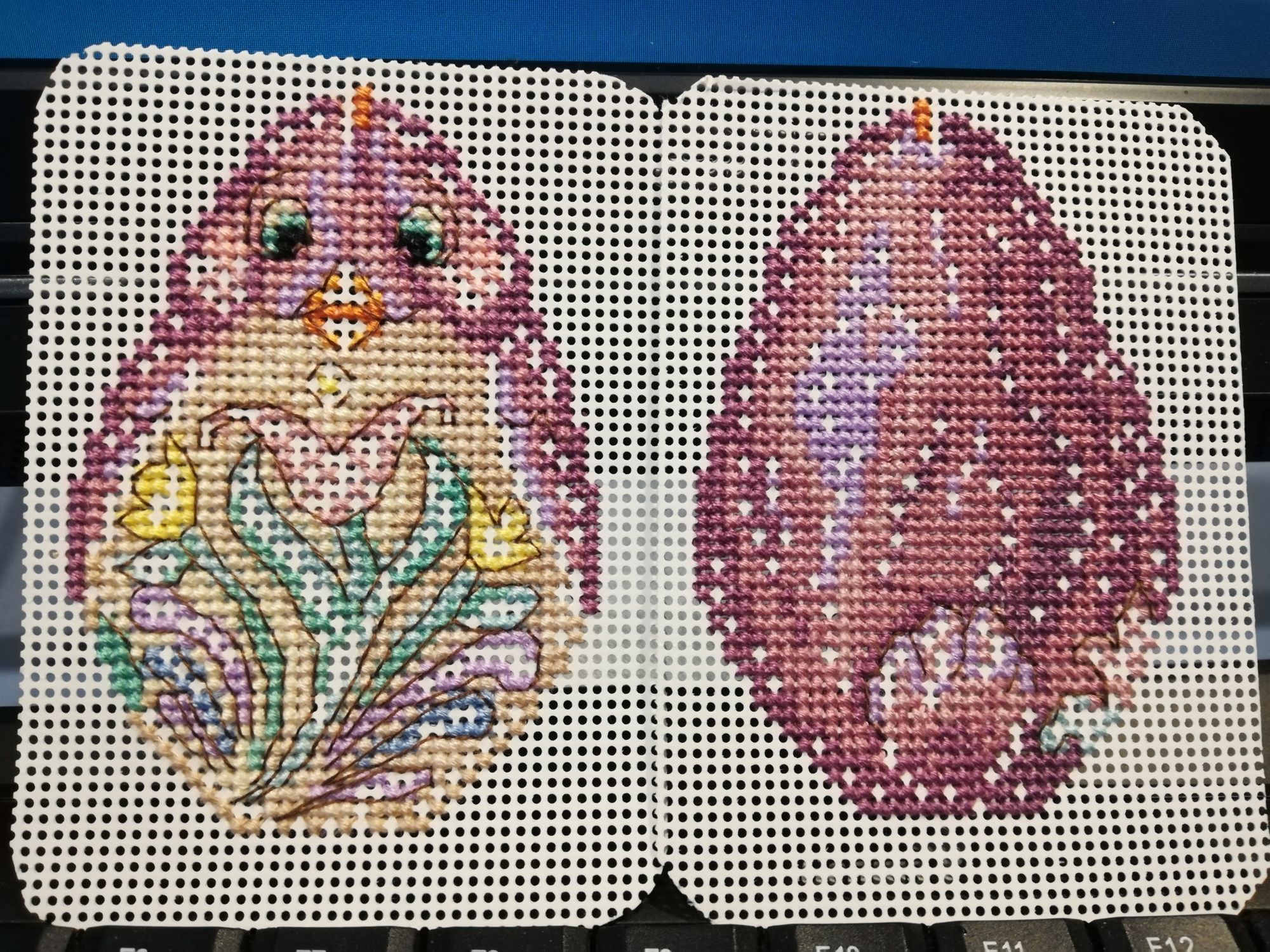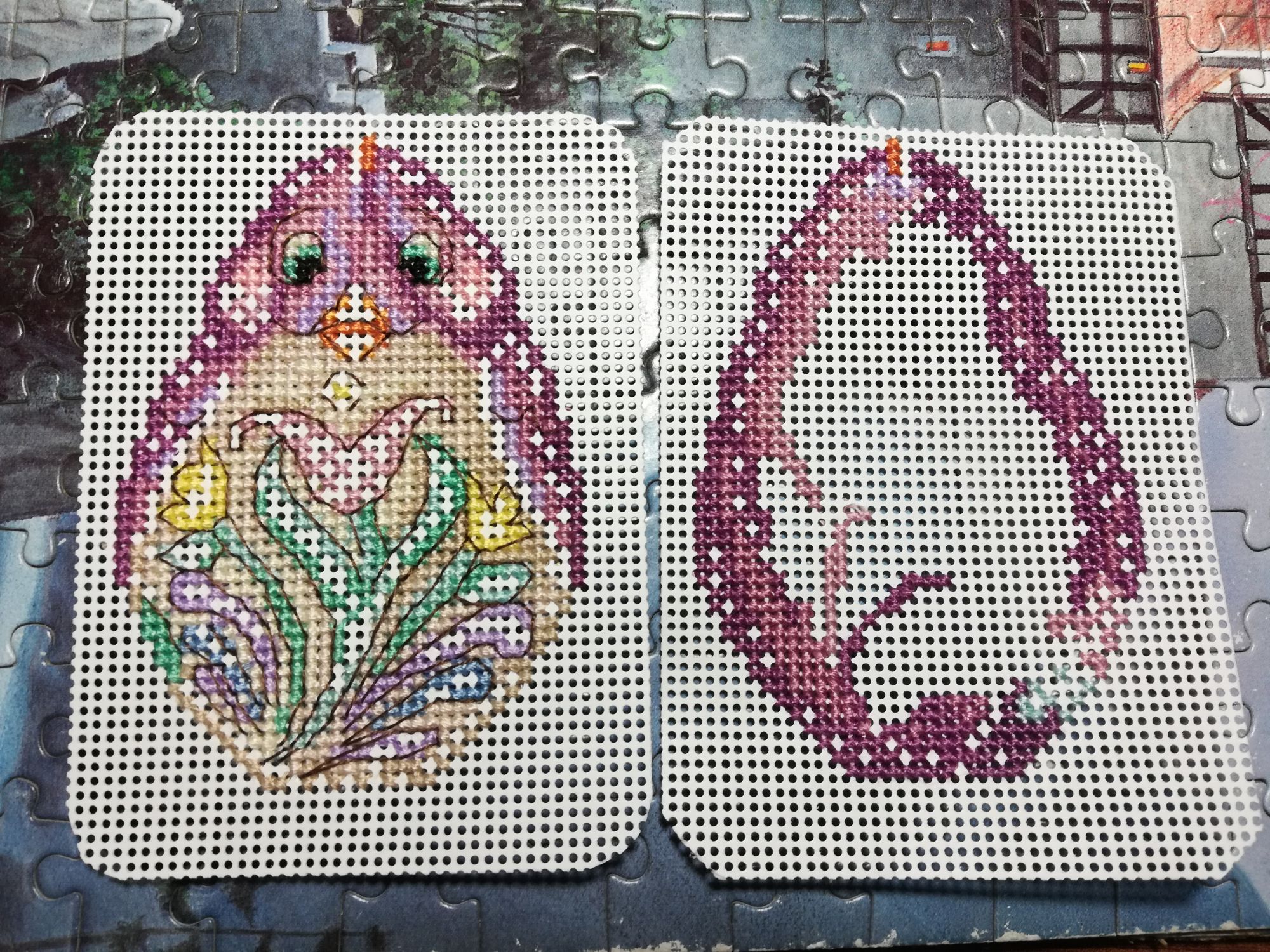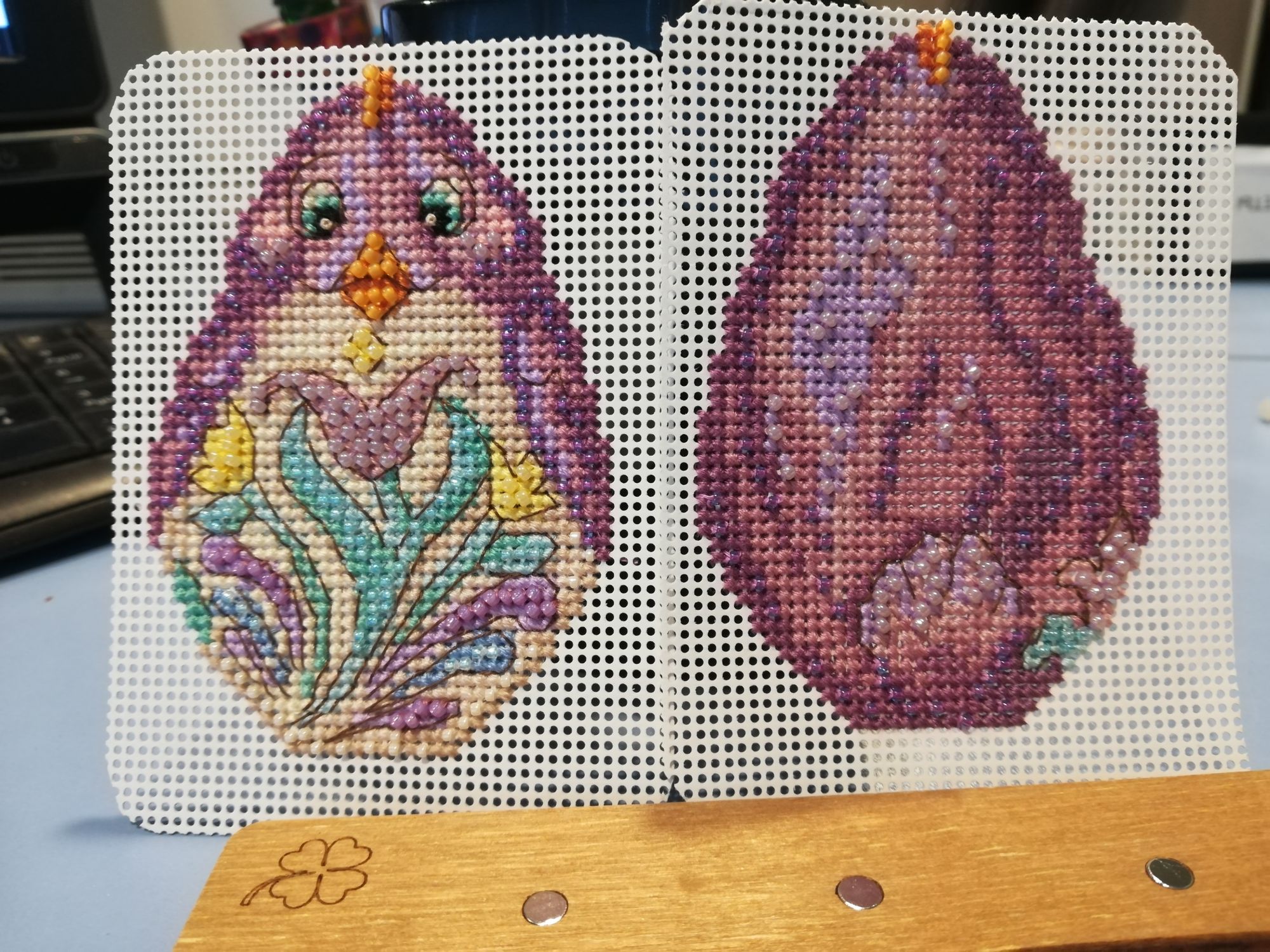 30 мая 2023 Сегодня день МиллХилла. 1. Закончила фиолетового цыпленка. 2. Начала и закончила игольницу. МНВРР3, 6 цветов мулине, 5 цветов бисера, 2 иголки и 2 магнита, небольшой кусок равномерки. Очень мне хотелось попробовать сделать эти висюльки, да и на такой ткани я ни разу не вышивала. Никаких проблем. Сборка тоже не вызвала затруднений. Получилась невероятно прелестная функциональная штучка. Планирую наделать таких игольниц по мотивам. Ксен40, Забава_, Хозяйка смешных зверей и 8 других сказали спасибо Поделиться сообщением Ссылка на сообщение