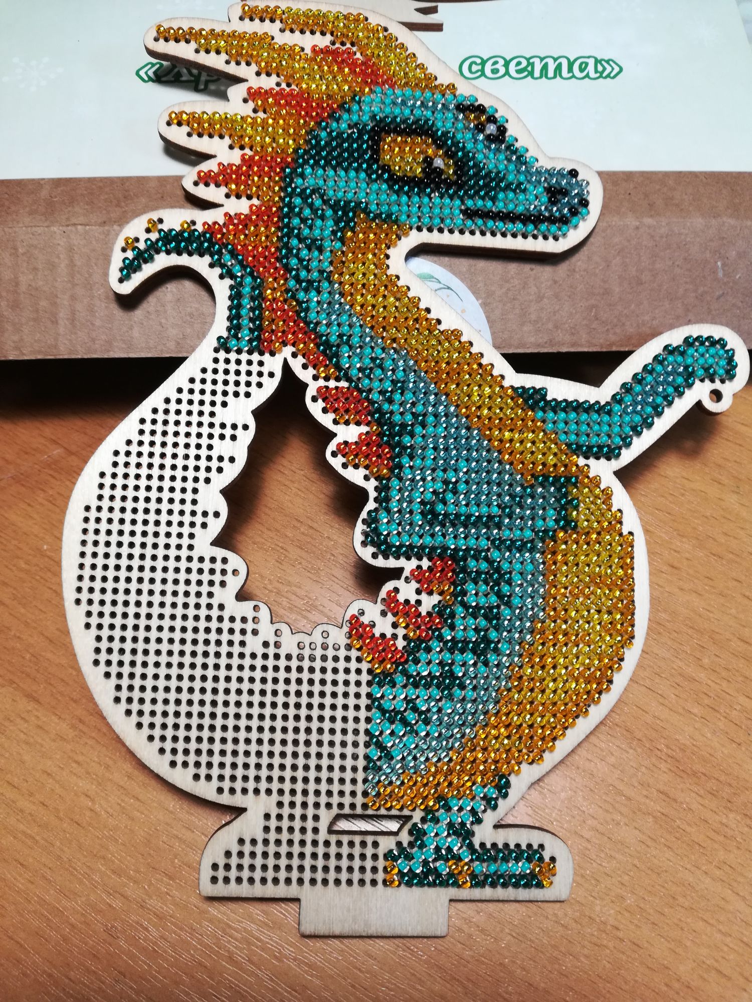 22 июня 2023 1. ЗР, Три Богатыря 2. Нитекс, маки 3. Дим, Ваза и кот. Как-то "не пошел" у меня этот процесс. 4. Начала и закончила . Набор от магазина "У Аннушки" Арт.НБ01, Хранитель света", 8 цветов бисера, деревянная заготовка, фетр на задник, нитки, иголка, бумажная схема и даже файл для Саги. Отличного качества бисер. По количеству -хватило впритык, пару номеров осталось по 7-10 бисерин. Но мне и не нужно было никаких остатков, главное, что всего хватило. Получилась такая прикольная ящерка. Достаточно приличного размера, высотой 17 см. Leutnant Ripley, Кисуля, Хозяйка смешных зверей и 3 других сказали спасибо Поделиться сообщением Ссылка на сообщение