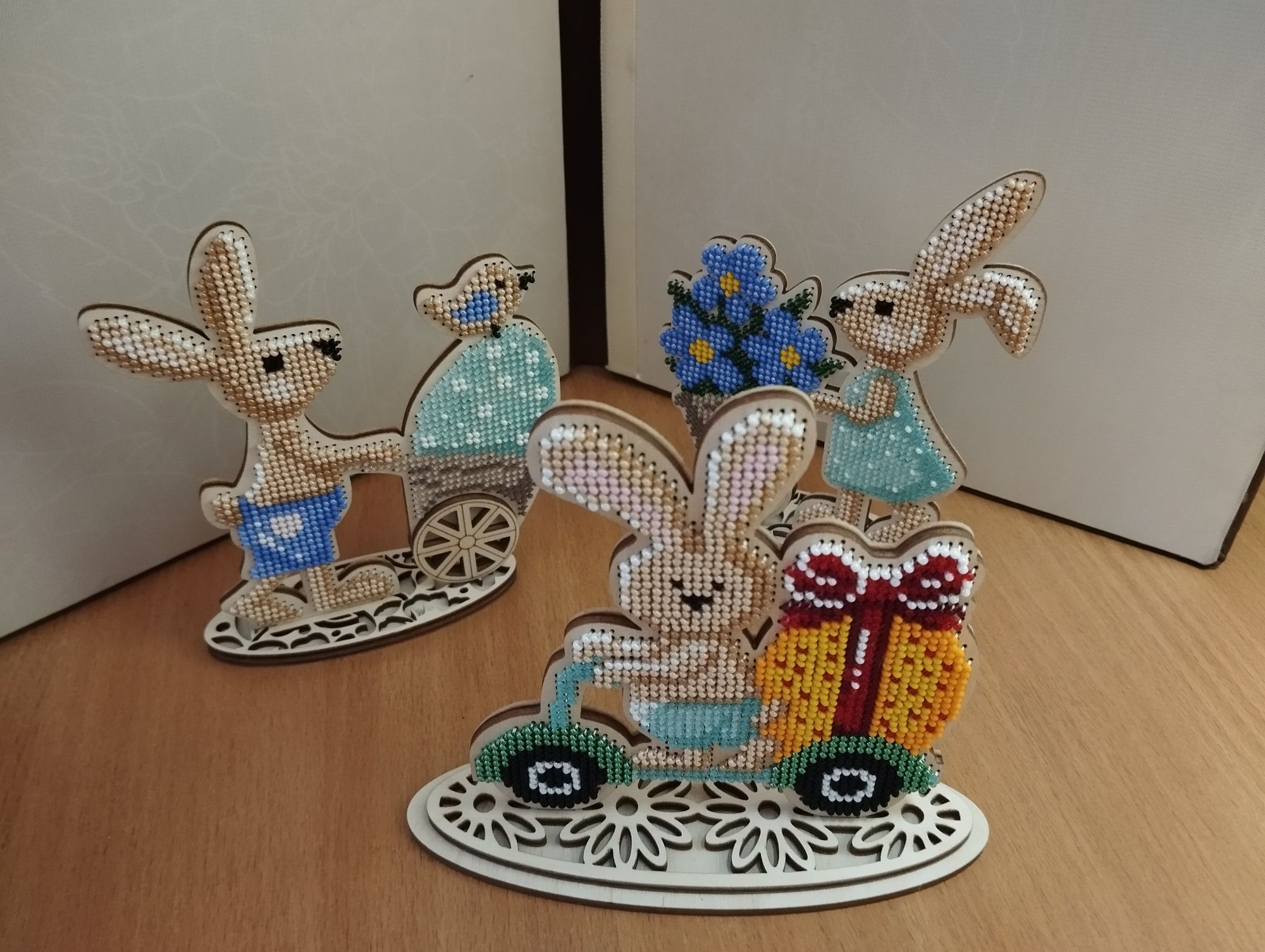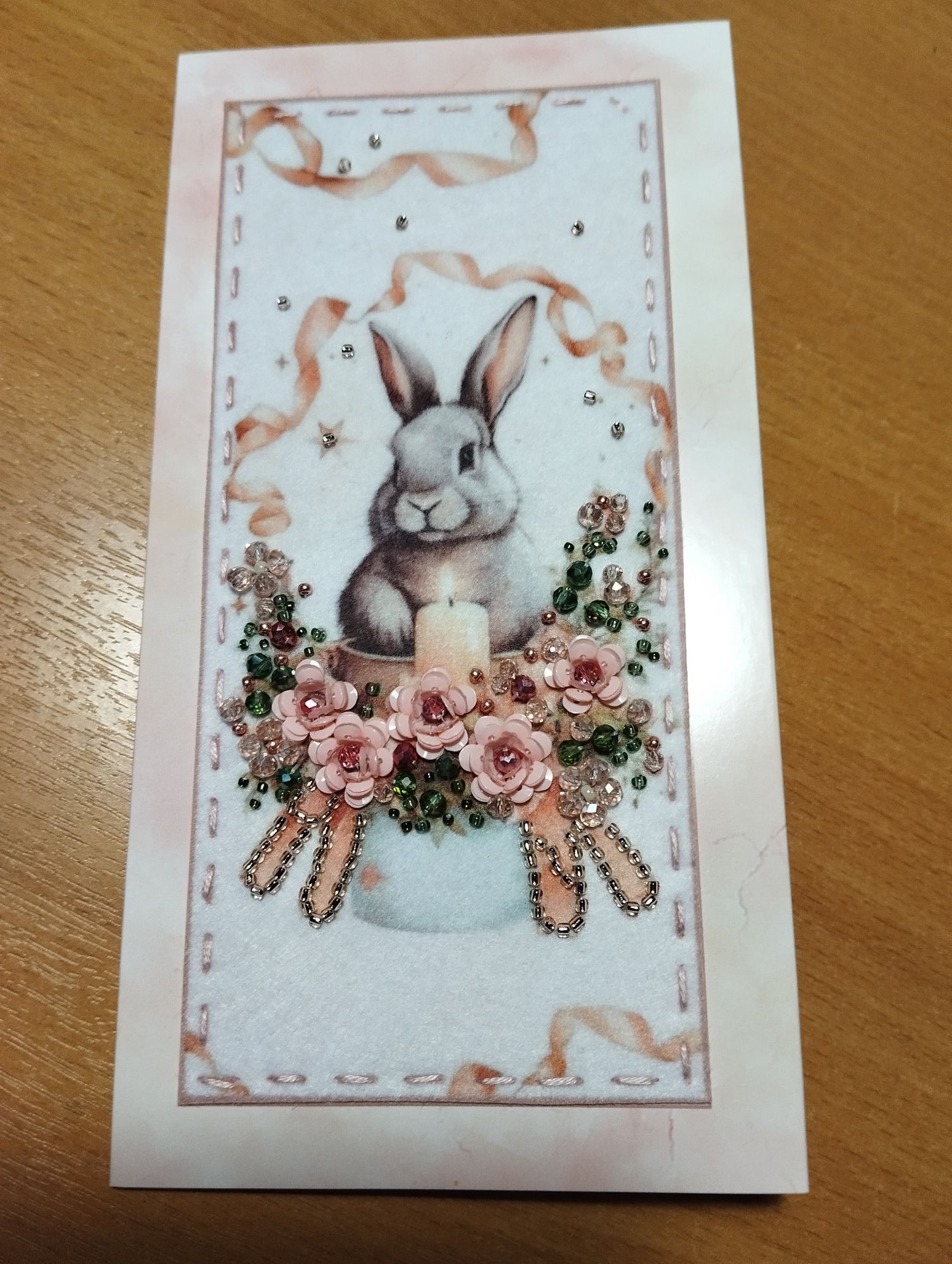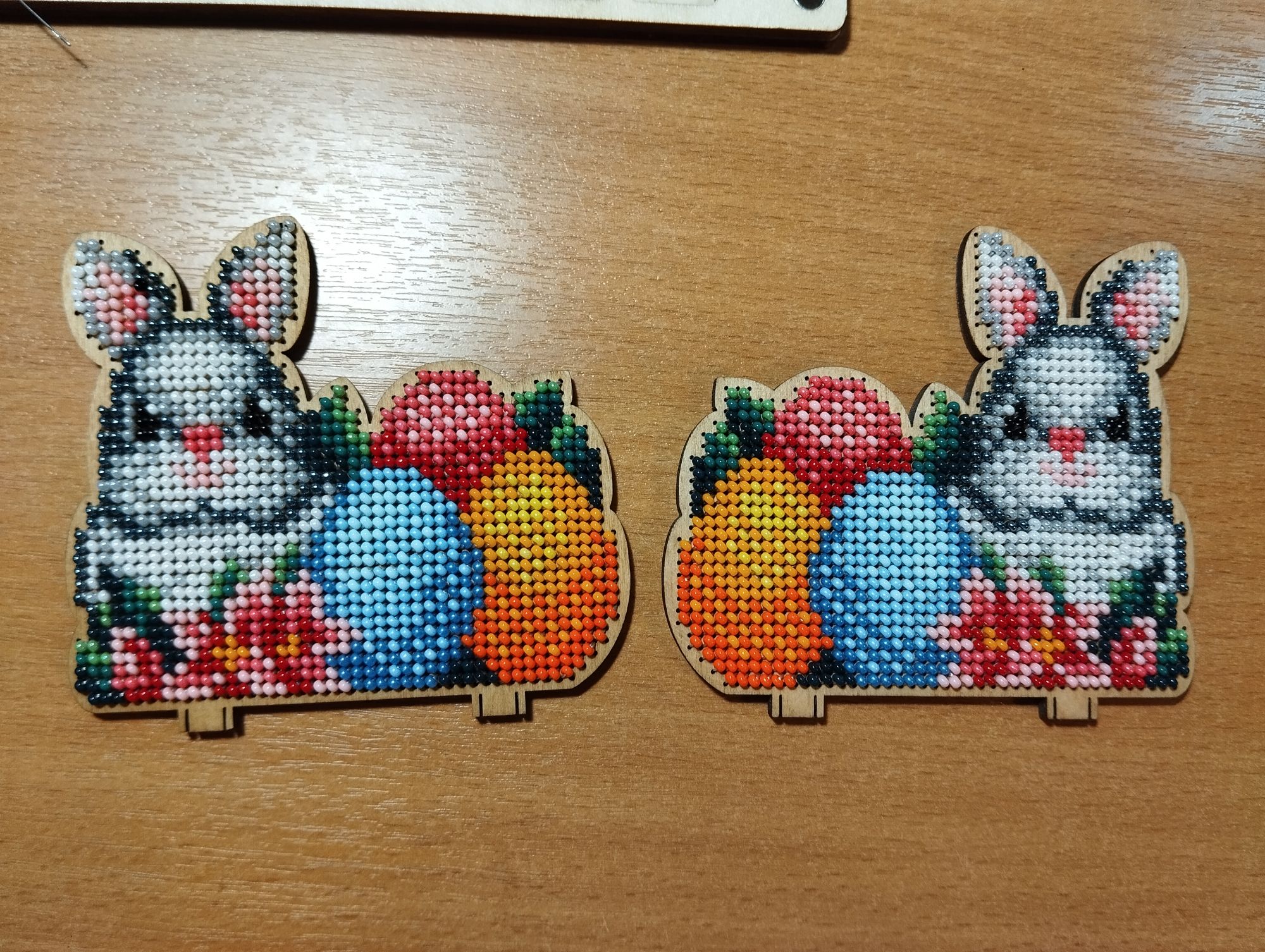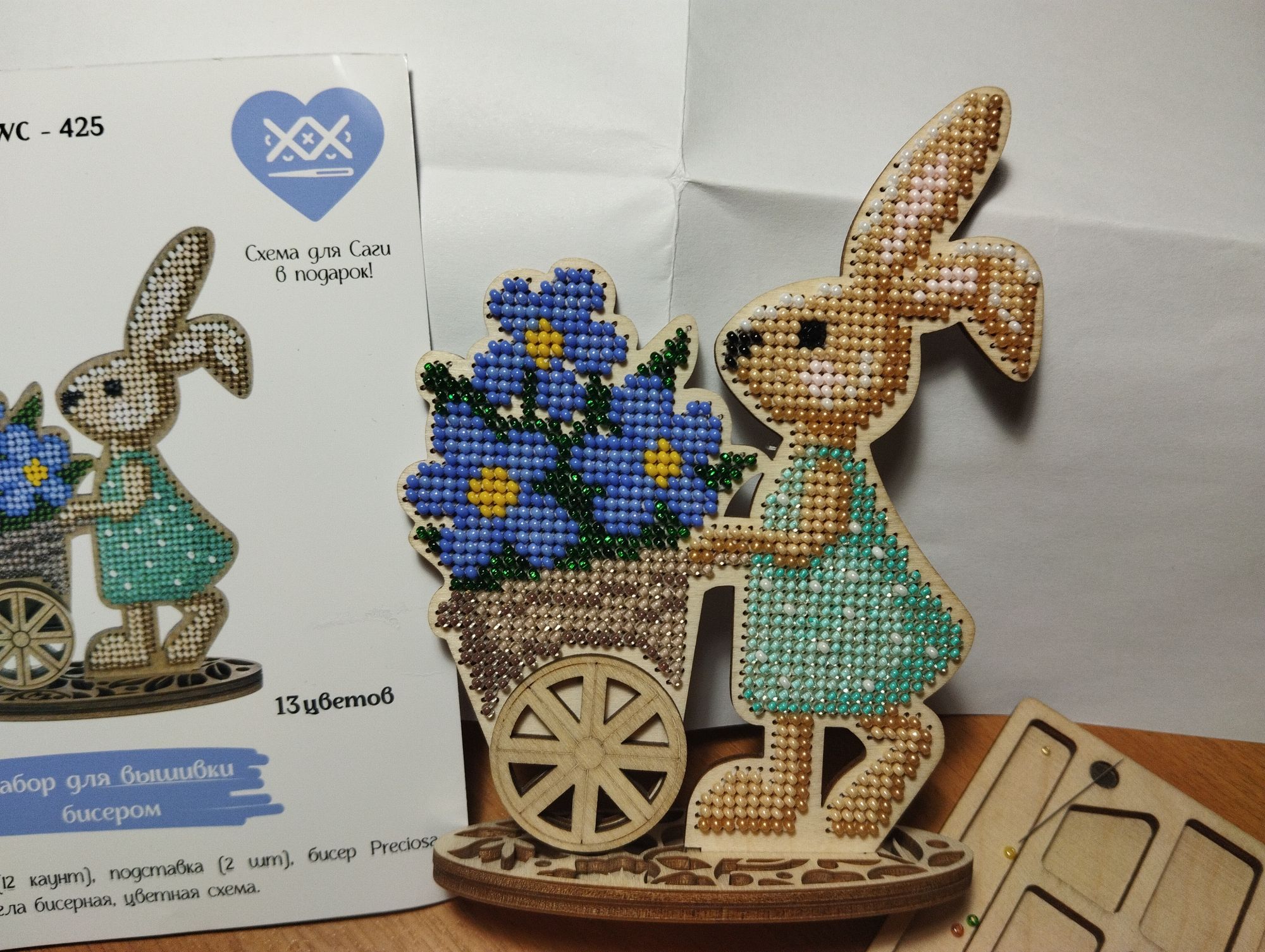 13 апреля 1. Новый процесс, Риолис 2263, шерсть, Сага в комплекте. Потихоньку шью. Давно не вышивала риолис. Забыла уже какое месиво тут может быть. Шью пока фон вокруг. Готовила небольшие подарочки к Пасхе. У всех трех наборов похожий бисер. никаких проблем. 2. Гусь Вышивусь, WC-428. 1620 бисерин. 3.Гусь Вышивусь, WC-425. 1254 бисерины. 4.Гусь Вышивусь, WC-426. 1170 бисерин. 5. Образа в каменьях Открытка-конверт 77-0-04. Вышивается буквально за пару часов. Пойдет на подарок. Мне кажется получить такой конверт с денежкой внутри будет приятно. Такая необычная техника, чтобы делать цветочки из пайеток. Красивые комплектующие используются. Потом фетр пришивается к открытке. В комплектации есть всё, чтобы оформить, даже двусторонний скотч положили. Всего хватило с запасом. Вообщем вот такие заячьи выходные у меня были. Юлена, Хозяйка смешных зверей, Охотница и 10 других сказали спасибо Поделиться сообщением Ссылка на сообщение
