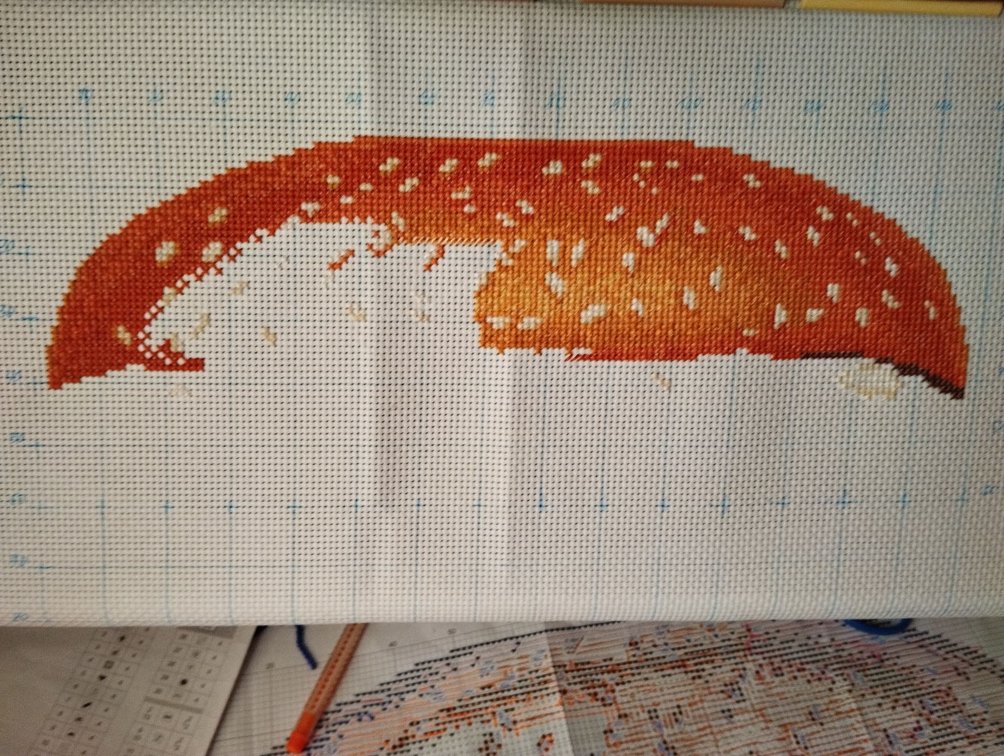 8 июня 1. Закончила Котика. Котик шьется сложно, просто какое-то месиво крестиков. Весь фон вокруг попроще. Много бэка. Ниток хватило, но один цвет ушел полностью, некоторых хватило впритык, некоторых осталось прилично. Намотали ниток наугад. 2. Вышила очередную игрушку на деревяшке. Убеждаюсь, что шить нитками на деревянной заготовке-это просто необоснованный расход ниток. 3. Бургер. Дачный процесс. Берусь редко и шью мало. Какая-то бесконечная верхняя булка. relax_cross_stitch, Аринесса , Хозяйка смешных зверей и 6 других сказали спасибо Поделиться сообщением Ссылка на сообщение