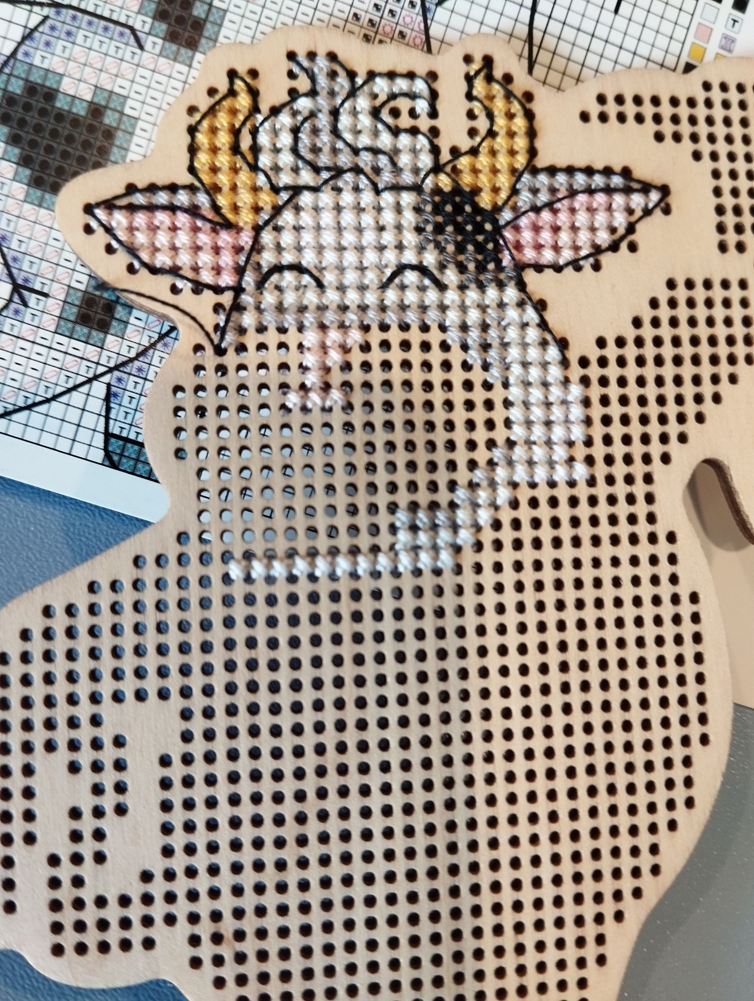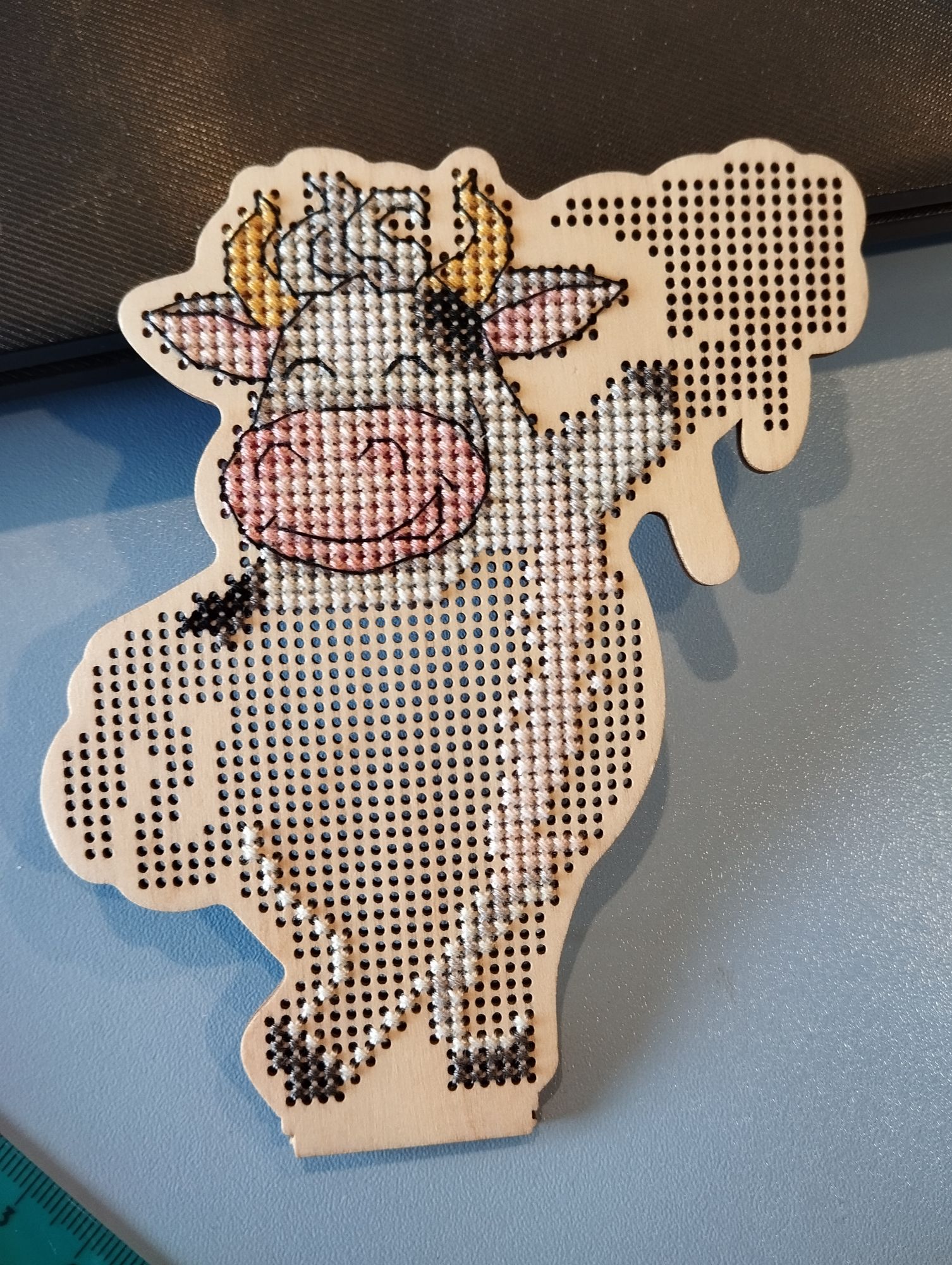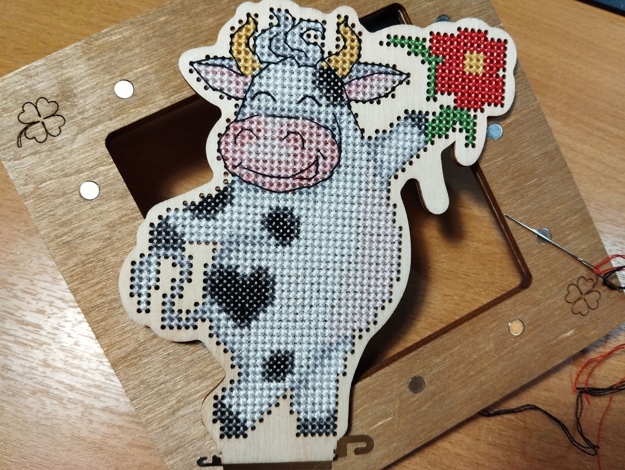 10 июня 1. Продвижение по китайскому пейзажу. 2. У Аннушки, "Валентин", старенький набор, снятый с производства. Мулине Гамма 11 цветов на деревянном органайзере, деревянная заготовка с вырезанным задником, магнит для игл и схема-открытка- для меня прям супер-мелкая. Уже и не помню, сколько лет назад пыталась вышить этого бычка, из-за схемы забросила. Так и валялся он в коробке заброшенных процессов пока не попался на глаза. Потихоньку дошился. И я прям рада-рада! Надо еще поковыряться и вышить что-нибудь из этой коробки.... Auria, Хозяйка смешных зверей, relax_cross_stitch и 4 других сказали спасибо Поделиться сообщением Ссылка на сообщение