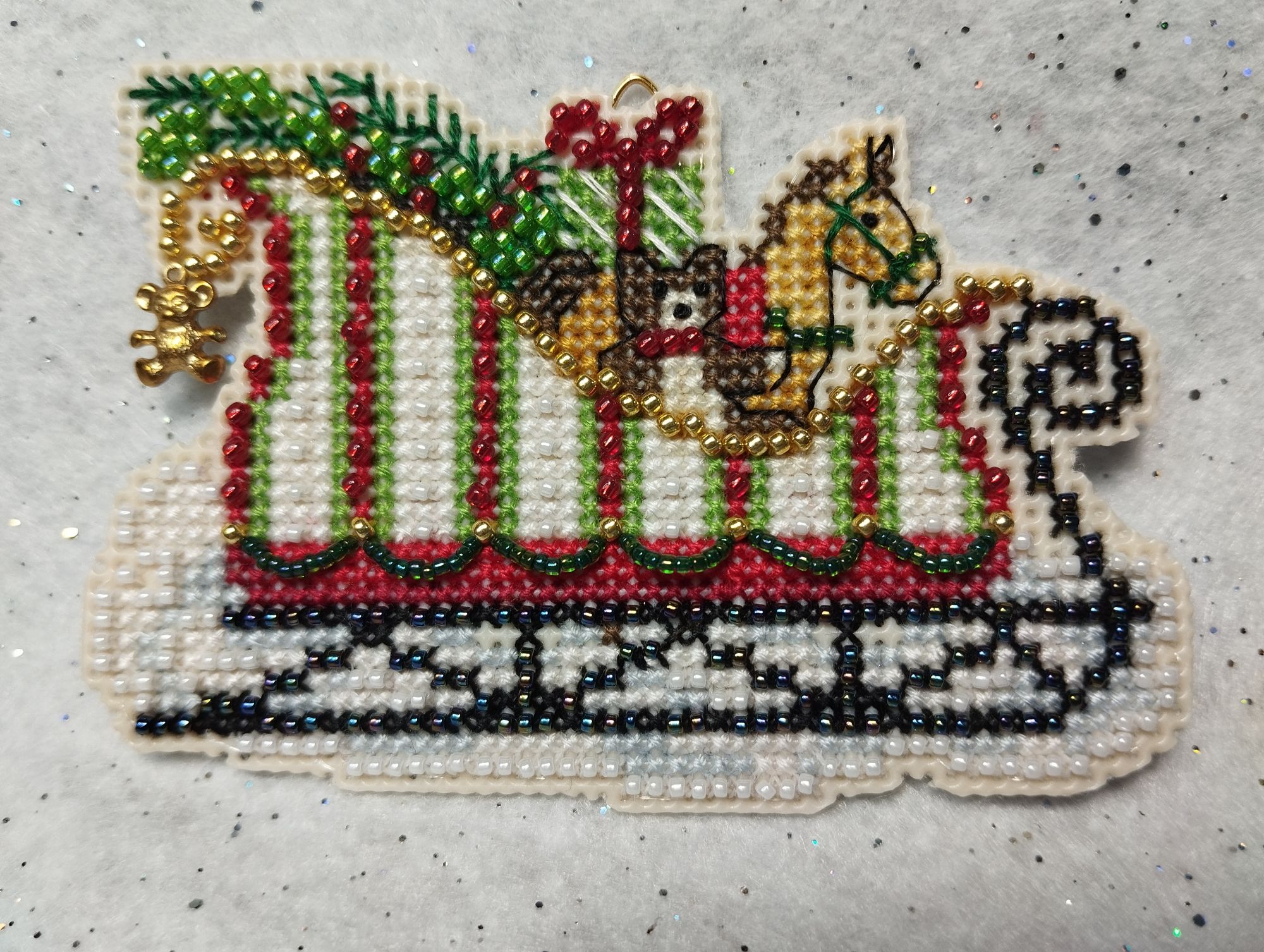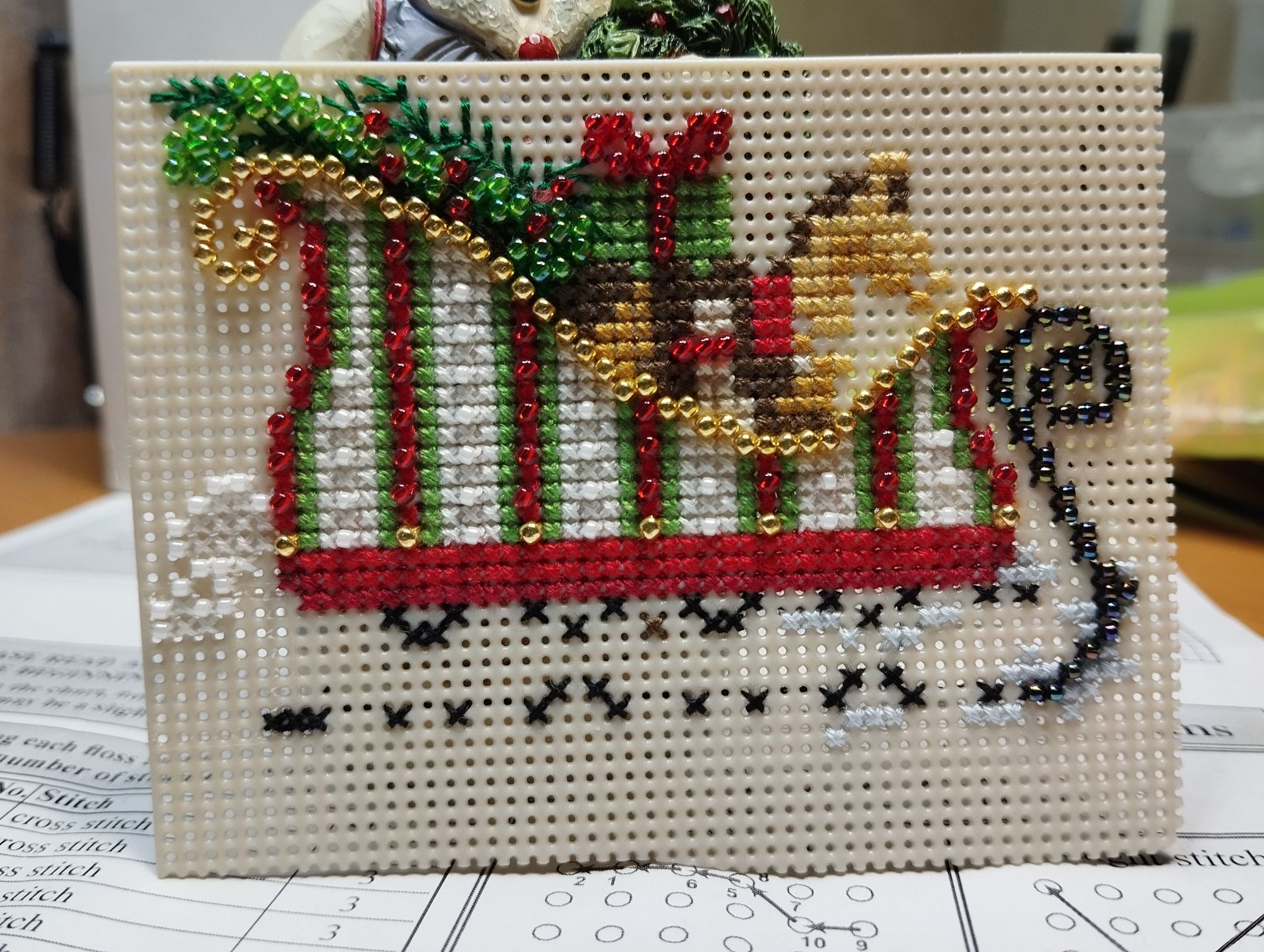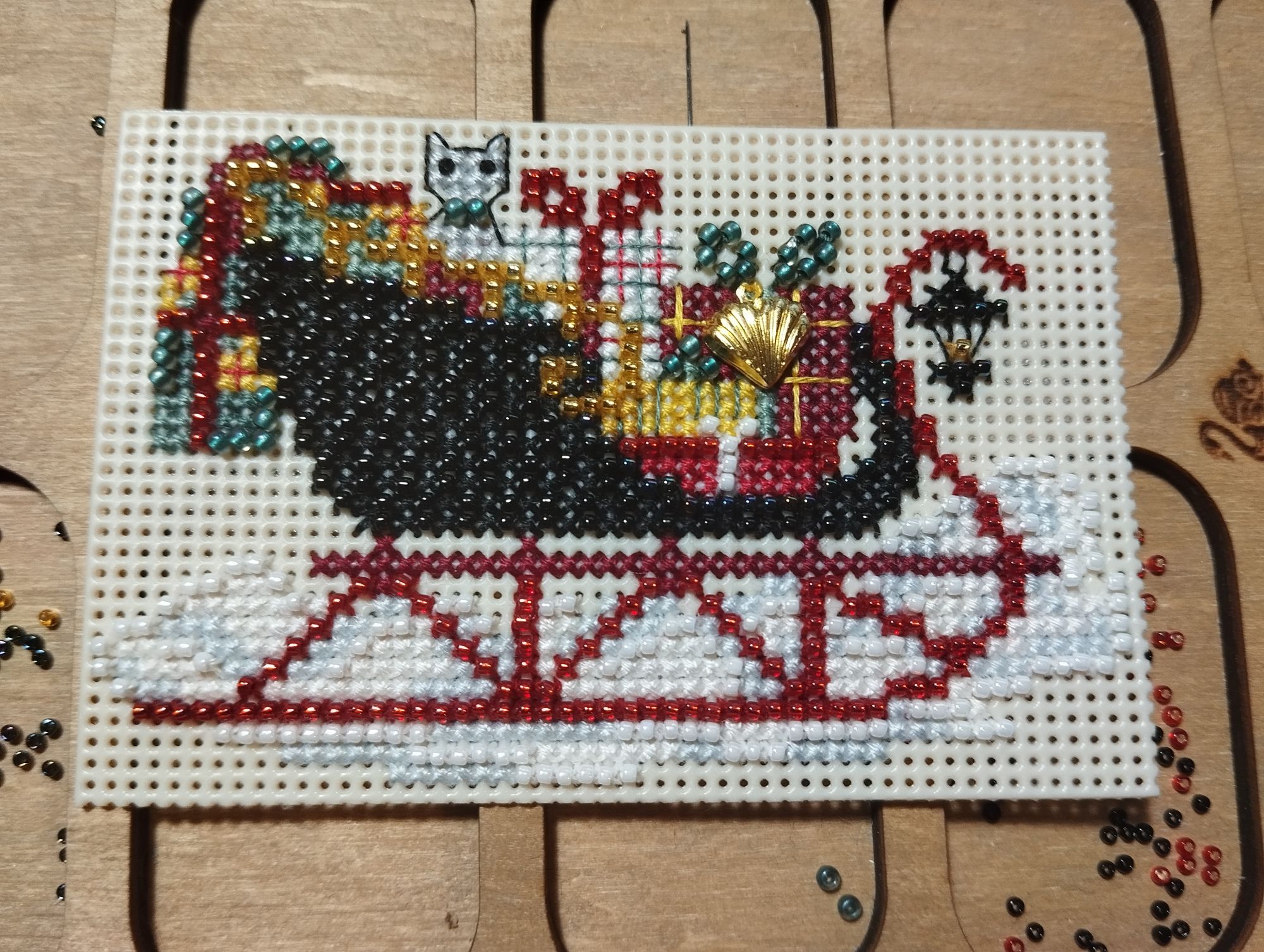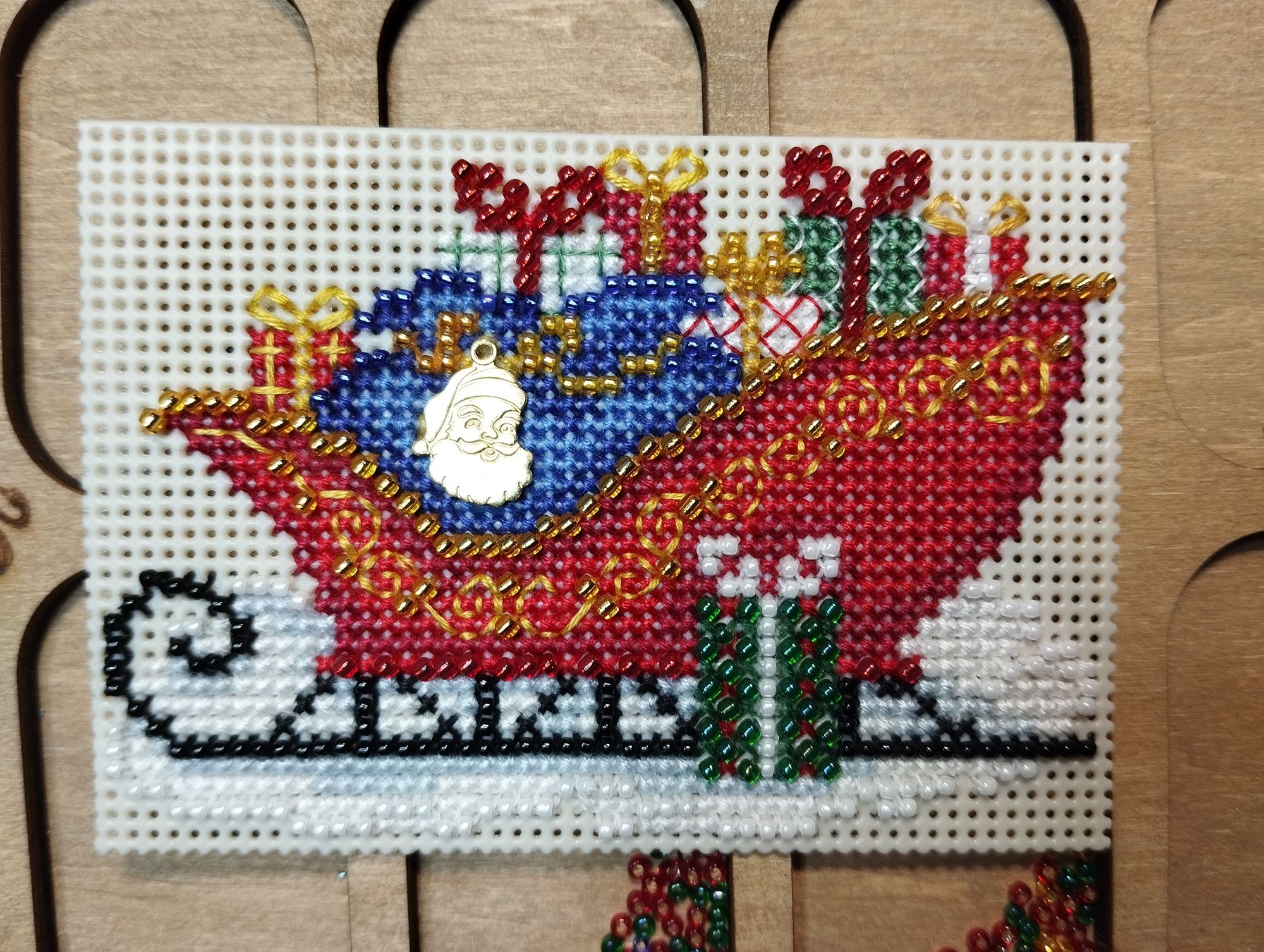 19 июня Активно шью пейзаж, уже показался домик. Как обычно отвлекаюсь на небольшие игрушки, их будет много, т.к. я как-то знатно закупилась бисерными игрушками. А пока что решила наконец-то продолжить серию саней от МХ. Если не сдуюсь, то вышью оставшиеся 5 штук. МН 16-1732 Сани с котом. К чему тут ракушка-непонятно. 10 цветов мулине и 7 цветов бисера. Бумагу заменила на пластик телесного цвета. Шью в 2 нити, сзади белый фетр, внутри скрепка. Я теперь всем игрушкам скрепки делаю, чтобы потом можно было бы либо на крючок подвесить, либо гирляндой сделать. МН16-1734 Сани с собакой. 9 цветов мулине+7 цветов бисера. В этих санях мне попались 3 новых цвета бисера, такими я еще не вышивала( остатки по номерам я собираю). Канву также использовала телесную. Всю серию буду дошивать на такой канве. Во всех санях примерно+/- 1200..1300 ххх. Ave, Хозяйка смешных зверей, Bogdan и 5 других сказали спасибо Поделиться сообщением Ссылка на сообщение