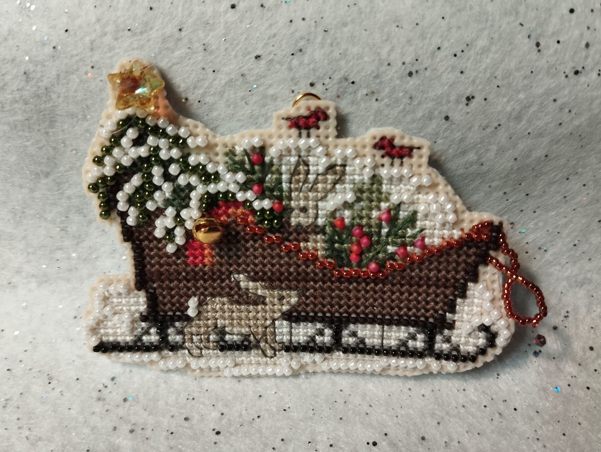 10 июля 1. Мне случайно позеленили процесс с совой от Образов. Добавляю фото к процессу. Дошила заднюю половинку и сразу сшила. По схеме все обшивается разными бусинами, я же обшила простым прозрачным бисером. Мне так больше понравилось. Внутри немного синтепона. 2. Дошила сани. Добавила немного отсебятины. 3. Ну и покажу на каком этапе у меня мой пейзаж. Ave, Аринесса , BONA-чка и 4 других сказали спасибо Поделиться сообщением Ссылка на сообщение