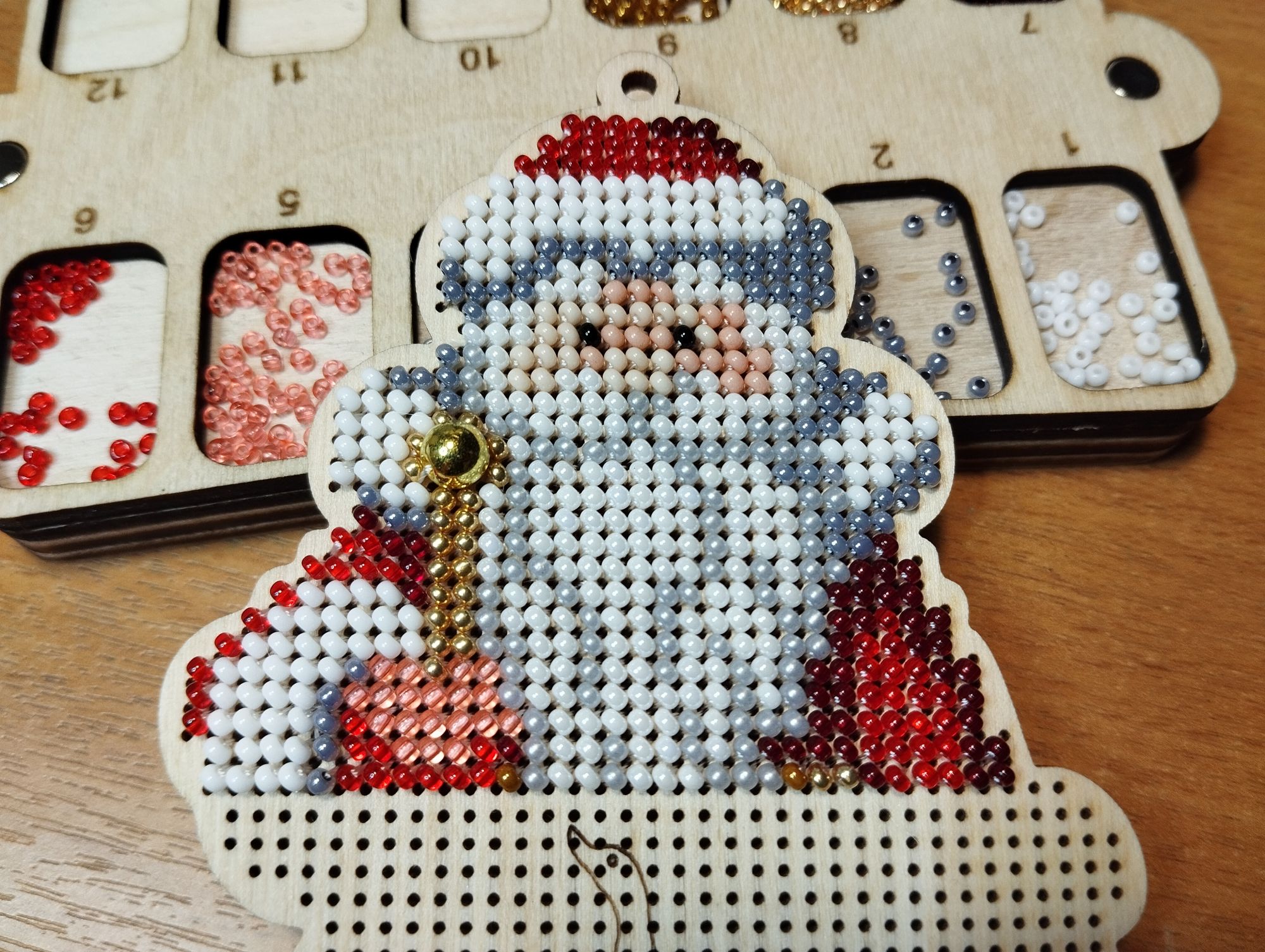 18 июля 14.07.2025 в 22:19, BONA-чка сказал(а): В готовом виде выпукло смотрится. Хорошо - крестик + бисер. Надя, спасибо! Бисер немного толкается, но в готовом виде весь бисер как-то выстраивается и вроде все нормально. У меня еще есть пара наборов где крестики+бисер. Просто там размер побольше. Сразу вдогонку пару игрушек. Почти вся ВС прошла мимо меня стороной. Теперь же мне вообще ничего больше и шить не хочется. Вышиваю их после того, как устану от крестиков и берусь за них, посижу часик и в результате прелестная игрушечка готова. 1. Гусь Вышивусь WC-322, Снегурочка. 10 цветов бисера+1 вид бусин, деревянная заготовка и Сага, 1140 бисерин. За вечер можно справиться. 2. Гусь Вышивусь WC-323 Дед Мороз, 12 цветов бисера+1 вид бусин, деревянная заготовка и Сага, по которой вижу 1481 бисерин. Меня статистика вообще никогда не интересовала, но тут просто можно легко посчитать за сколько вечеров можно вышить. Ну за пару вечеров легко! Дикая белочка, Аринесса , Ave и 5 других сказали спасибо Поделиться сообщением Ссылка на сообщение