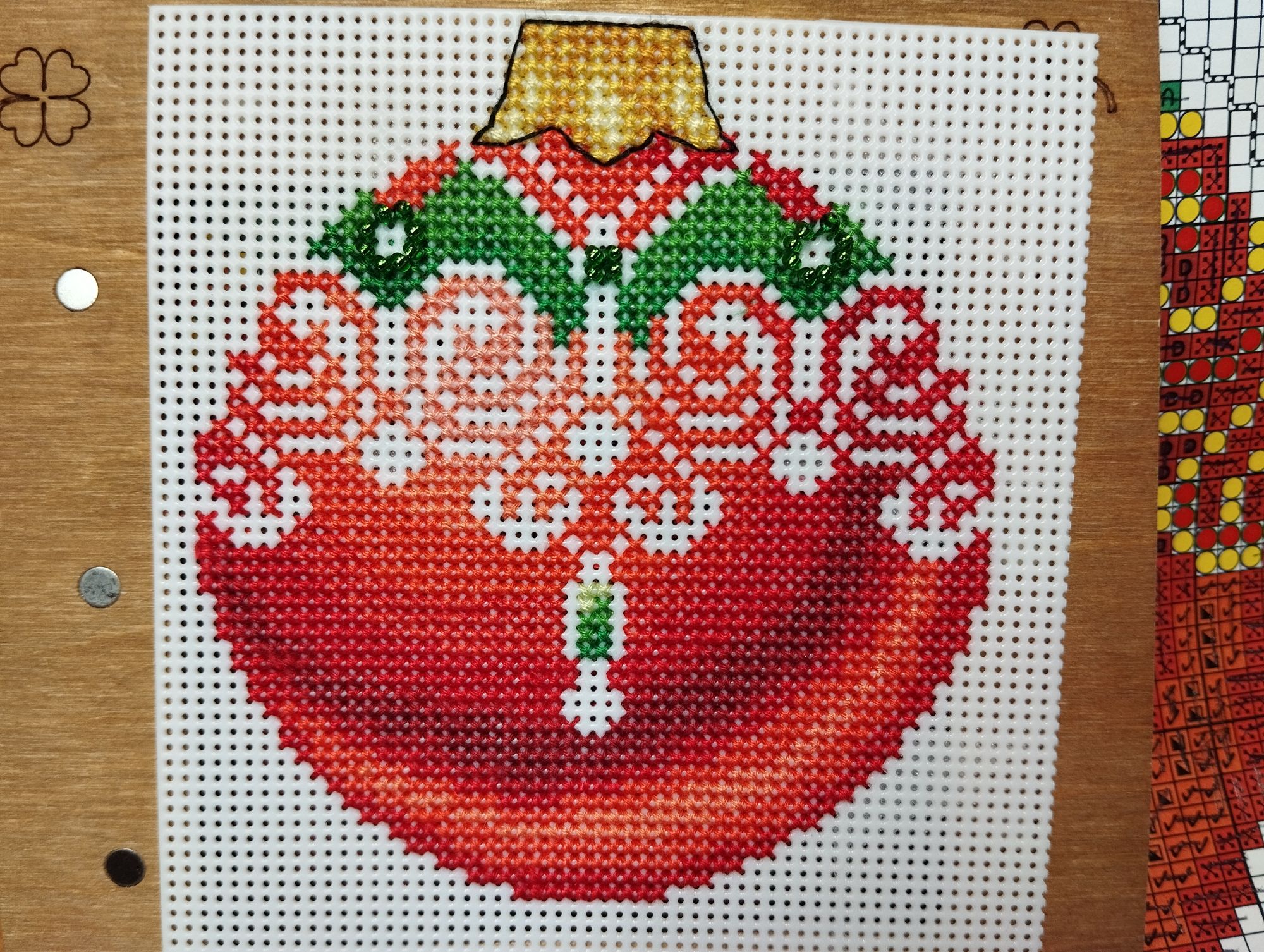 8 августа 1. Закончила шарик от Булавочки. Результат так себе. Производитель хорошо так поигрался с цветопередачей на обложке. В реальности шарик не такой яркий. Поменяла на красной стороне бисер в завитушках. Вырезала и сшила обе половинки мононитью. 2. Хорошо так продвинула свой пейзаж. Перемотала раму. Мне осталось на этой работе вышить меньше 30 тыс крестиков! 3. Начала и закончила. Вирена ФIН_088. Гном. 10 цветов бисера, деревянная заготовка и фетр. 1773 бисерины. В наборе очень красивый красный бисер 95076, я таким вышивала впервые и теперь если буду использовать такой оттенок, то только это номер. Очень красивый гном получился. 4. Начала и закончила. МН 16-1733 Санки. Наконец-то я закончила всю серию этих саней. Эти тоже "едут" в другую строну. Никаких проблем. 5.Панна. БН-5010.Зеленая рыбка. Набор был куплен на распродаже и уже успел отлежаться. Никаких планов на него не было, просто как-то проснулась в воскресенье, открыла и вышила столько, сколько есть на последнем фото. Ну, раз распотрошила, то теперь вышьется. 14 цветов бисера. 6. Набор от Мира вышивки по схеме Елены Рощупкиной, МВ018-СВ, семейный вечер. 42 цвета мулине, Сага, канву заменила на Линду 27, размер должен получиться аж 35*34см. Начала с середины и почти вышилась одна пчелка. Это всего 15% работы. А вся работа в крестиках почти 16 тыс. Очень хочется дойти до картин на стене. Там Ван Гог и пародию на Даму с сережкой. Забава_, dinakopacheva, Хозяйка смешных зверей и 6 других сказали спасибо Поделиться сообщением Ссылка на сообщение