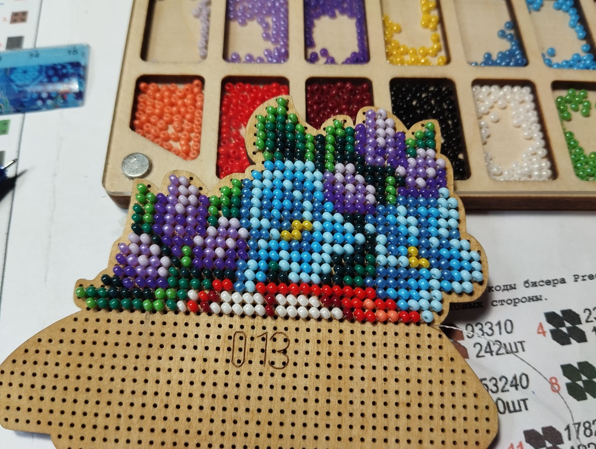 4 июля 1. На своем пейзаже дошила очередной столбик, буду перематывать раму, готово почти 59%. Место, где цветочки, очень сложное практически рассыпанная крупа, а на готовом результате вроде все просто. Начала несколько процессов. Сначала хотела их дошить, потом выложить фото, чтобы не усложнять работу модераторам, но поняла, что просто потеряюсь в фото. 2. МН 16-1735, лесные сани. 12 цветов мулине, 8 цветов бисера. Перевернула их в программе. Мои сани едет в другую сторону. 3. Булавочка, ВР-011, Шар с узором. Набор очень похож на МП-студию. 15 цветов мулине, 3 цвета бисера и бусины.. Огромная удобная цветная схема. Я ее даже и не зачеркиваю. 2 иголки, белая пластиковая канва и в наборе шел такой органайзер, поролоновую полоску- это я уже сама наклеила, я туда иголки паркую. 4. Панна Ц-1712, Астры, набор в смешанной технике. Фон, листочки-нитками, сами цветочки- бисером. Подобрали очень красивый бисер. Вначале хотела заменить канву на серую Лугану, но потом решила, что просто зашью фон. 5. Образа в каменьях Е-33, Елочная игрушка (двухсторонняя), Дива-сова. Набор конечно шикарный, очень много разного бисера, бусин и трунцала с канителью. Пока готова лицевая половинка, задняя тоже очень красивая. 6. Совсем забыла про игрушки на деревяшках. Вышила еще один персонаж, немного добавила мелкого бисера для нарядности. В очередной раз убеждаюсь. Самое неудачное решение было- шить этот набор на дереве. Ну теперь уже поздно, дошиваю так как есть. zhmary, Аринесса , Дикая белочка и 6 других сказали спасибо Поделиться сообщением Ссылка на сообщение