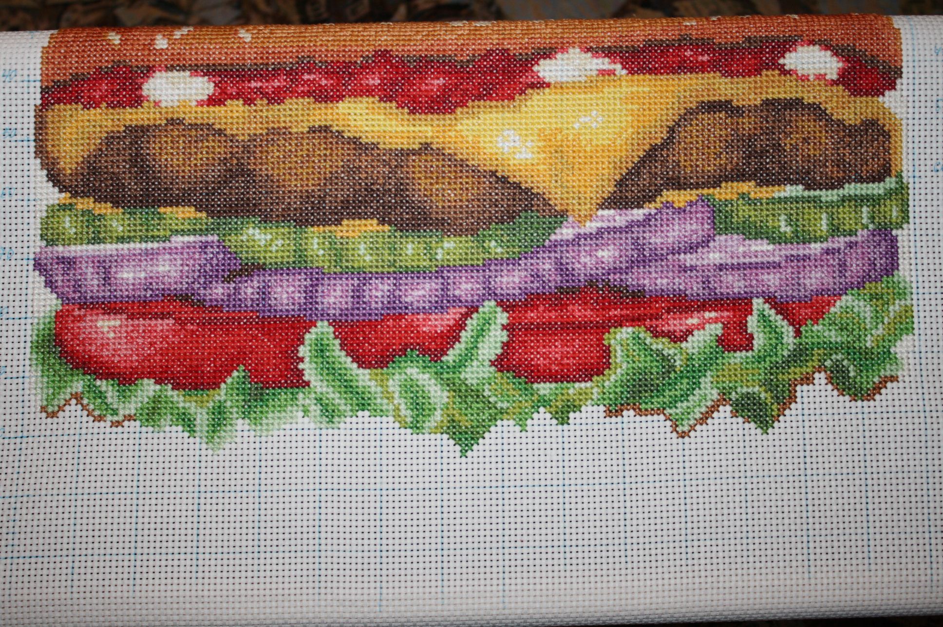 5 сентября Продвижения по моим процессам: 1. Пейзаж. На данный момент вышито 87%, перемотала раму , осталось вышить еще один столбик на 14.412ххх. раскрутила, чтобы показать общий вид. 2. Многострадальная подушка Бургер. Никак не дошьется. Я уже и домой с дачи её забрала, но нек хватает на неё времени. 3. У Аннушки, вышились еще две заготовки. Хозяйка смешных зверей, BONA-чка, Дикая белочка и 6 других сказали спасибо Поделиться сообщением Ссылка на сообщение