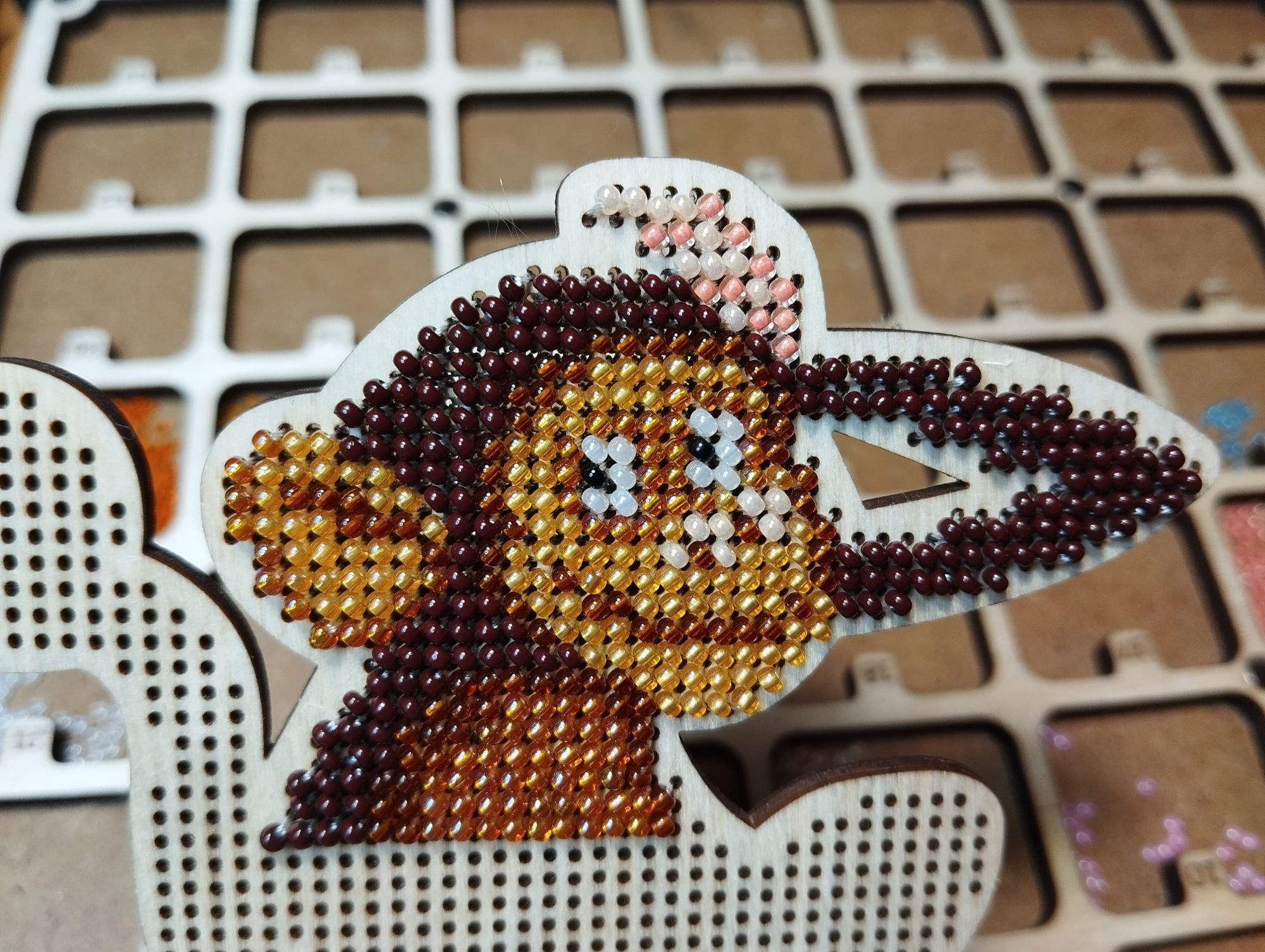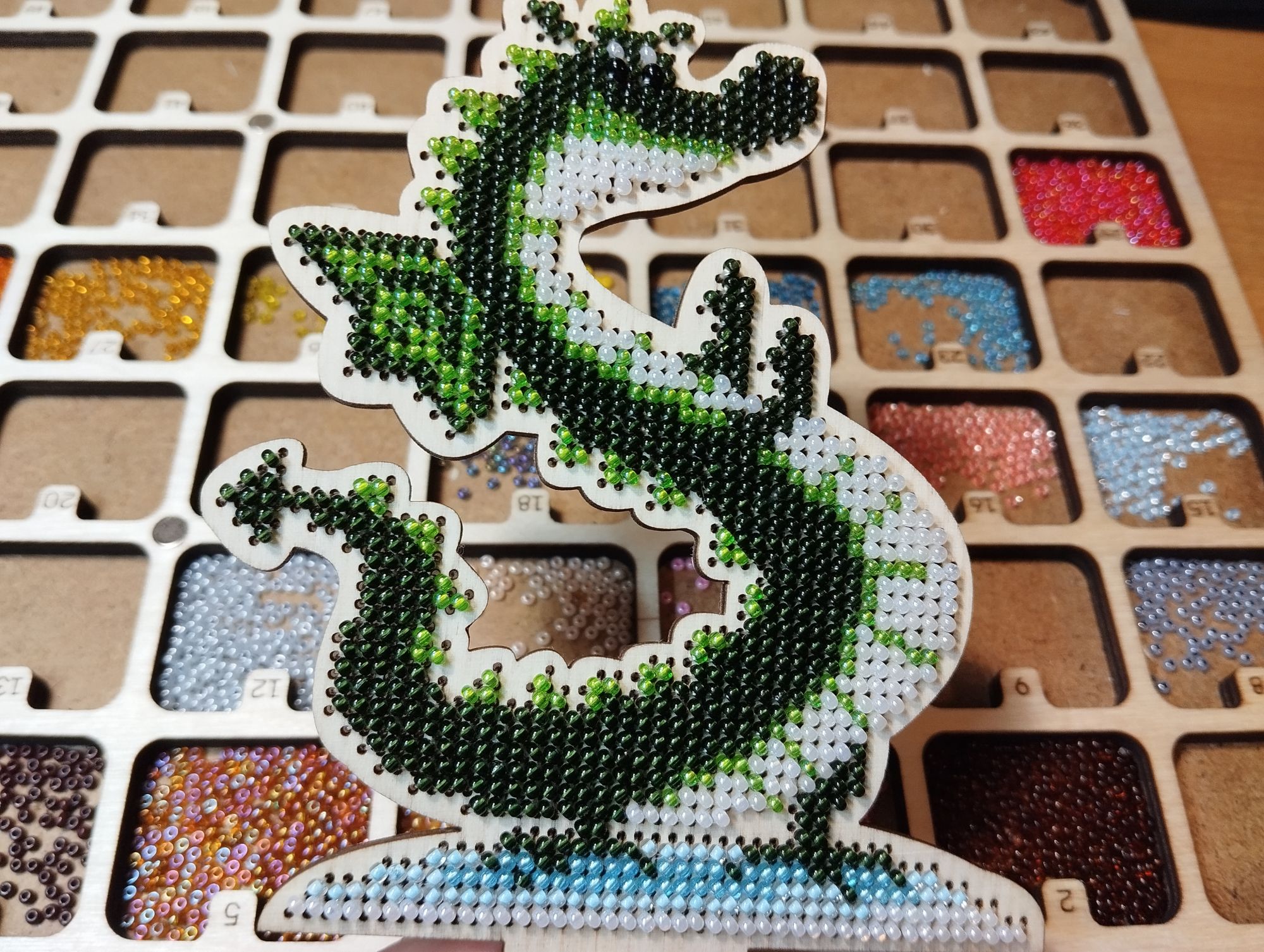 7 октября 30.09.2025 в 11:58, Auria сказал(а): Ура! Поздравляю с финишем Снежанна, не отбило охоту к настоящим бургерам? Оля, спасибо! Нет , к бургерам не отбило, а вот к подушкам рука пока не тянется. Я обычно одну заканчиваю и сразу же начинаю следующую. 1.Продвинула своих пчел. Сначала шился бесконечный желтый телевизор, потом огромная тумба. На тумбе даже частично бэк сделала. 2. Начала и закончила Змею от Булавочки. Заготовка какого-то мрачного темно-коричневого цвета, покрасила золотой краской, чтобы хоть как-то повеселее было. Вообще у Булавочки мне не нравятся бисерные наборы. Огромные дырки за заготовке и просто невероятное количество используемого бисера. Этот набор мне достался случайно, при покупке органайзера он лежал внутри как подарок. Вот так неожиданно для меня. Я еще по ежику, которого шила чуть раньше, поняла, что мне не нравятся наборы от этого производителя. 3. Начала и закончила. Гусь Вышивусь WC-210, фиолетовый гном. Заготовка 12 каунта, подставка, бисер и задник из фетра. Всего 8 цветов бисера и просто прелестный результат. Как ни странно, я не люблю гномов и именно поэтому вышиваю их регулярно . Этого взяла в пару к красному гному. Никаких проблем, отдыхаю я на бисере с деревяшками. Я вообще много шью бисером на деревянных заготовках, только не на всё делаю фото. 4. Щепка, О-007. Этот набор получила в подарок от Аннушки при покупке новогодней инсталляции. Дорожный процесс. Хозяйка смешных зверей, Забава_, BONA-чка и 4 других сказали спасибо Поделиться сообщением Ссылка на сообщение