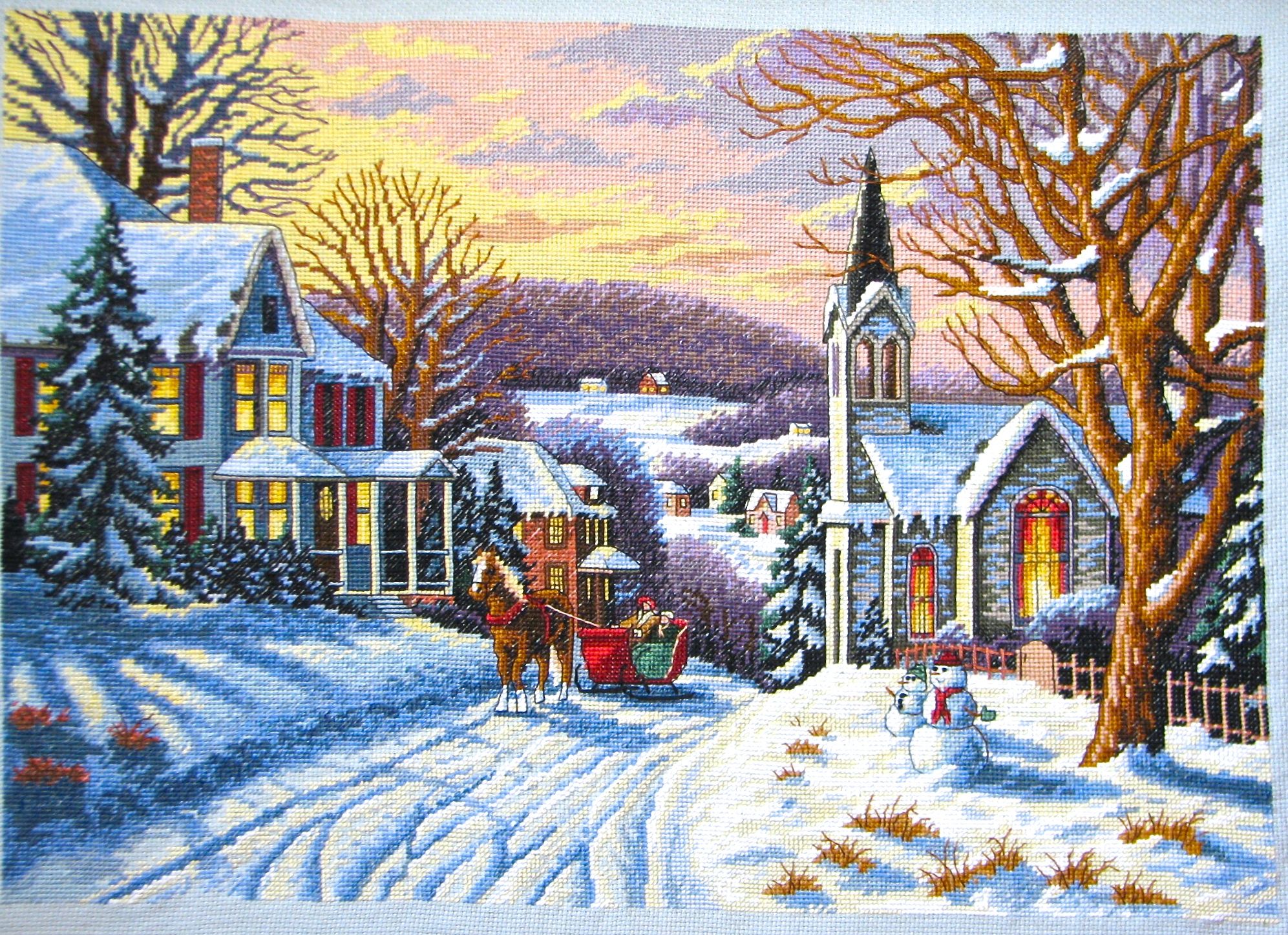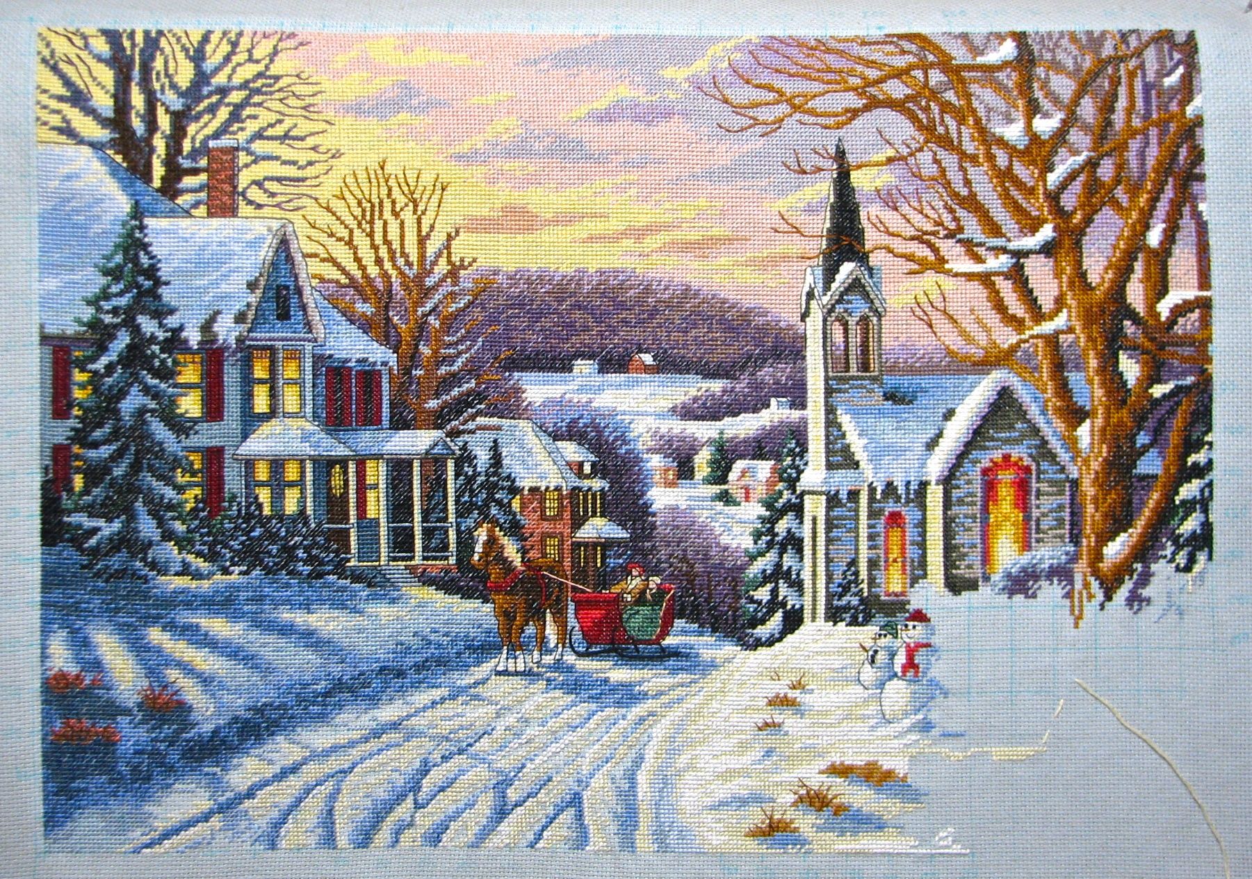 1 мая 2018 Вчера вечером завершила свой прекрасный пейзаж от Dimensions "Wintry eve". Надо сказать, что получилось красиво и красочно. Работа не маленькая, 43 на 30 см, 39 цветов, 11 блендов в 2, 3 и 4 нити, но вышивка не сложная, в основном, полукрестом. Крестика очень немного, чуть-чуть на домиках, и побольше на большом дереве справа. Кстати на дереве самый трудный бэк, неоднократно путалась и разбиралась, куда "ехать" дальше. Эти тени на снегу, дорога и свет в окнах совершенно настоящие. Очень довольна! Оформлять буду позже. Схему сканировала и увеличивала, так как мелковата, на одном листе вся, да и жаль черкать такую редкость. Осталось немного ниточек, ни один цвет не кончился совсем. Если кто-то из моих дорогих подружек-вышивальщиц захочет вышить, поделюсь с удовольствием. Не устаю повторять: красоты должно быть больше! Тропинка, МамаЛё, nogres и 17 других сказали спасибо Поделиться сообщением Ссылка на сообщение