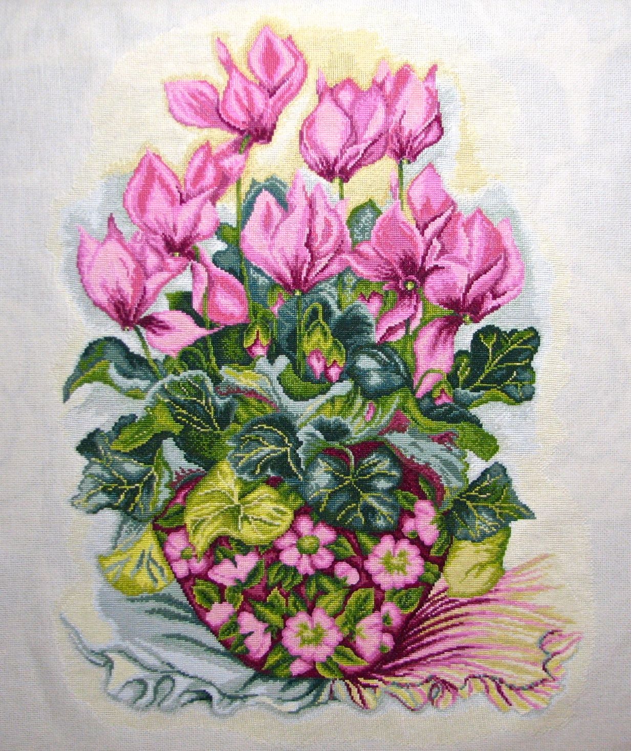 10 июня 2018 Ура! Ура! Ура! "Цикламены" готовы! Прямо гора с плеч! Размер получился 45 на 60 см, здоровенная! оформлю её чуть позже. пеларгония, irisheckin, Графиня и 15 других сказали спасибо Поделиться сообщением Ссылка на сообщение