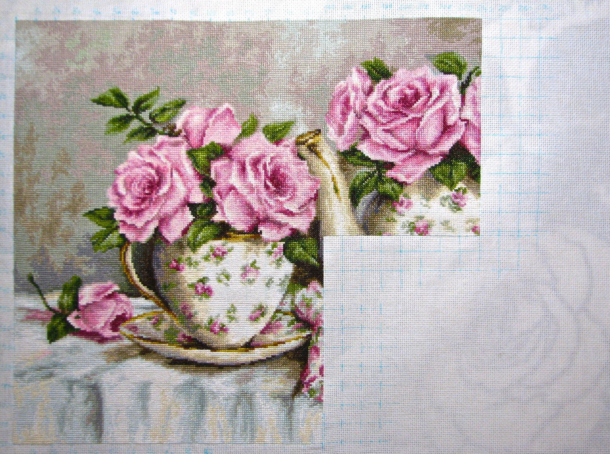 25 августа 2018 27 минут назад, Сэйко сказал: Быыыстро.. только очень уж переходы на фоне и на скатерти резки. Или в жизни мягче? Помягче, Оль! Но всё-таки работа отличается от картинки. На картинке розы и розочки на посуде более насыщенного цвета. И вообще, в более крупном варианте (работа, естественно, крупнее картинки на на наборе) все переходы не такие уж плавные. Хозяйка смешных зверей, Tata44, махно и 2 других сказали спасибо Поделиться сообщением Ссылка на сообщение