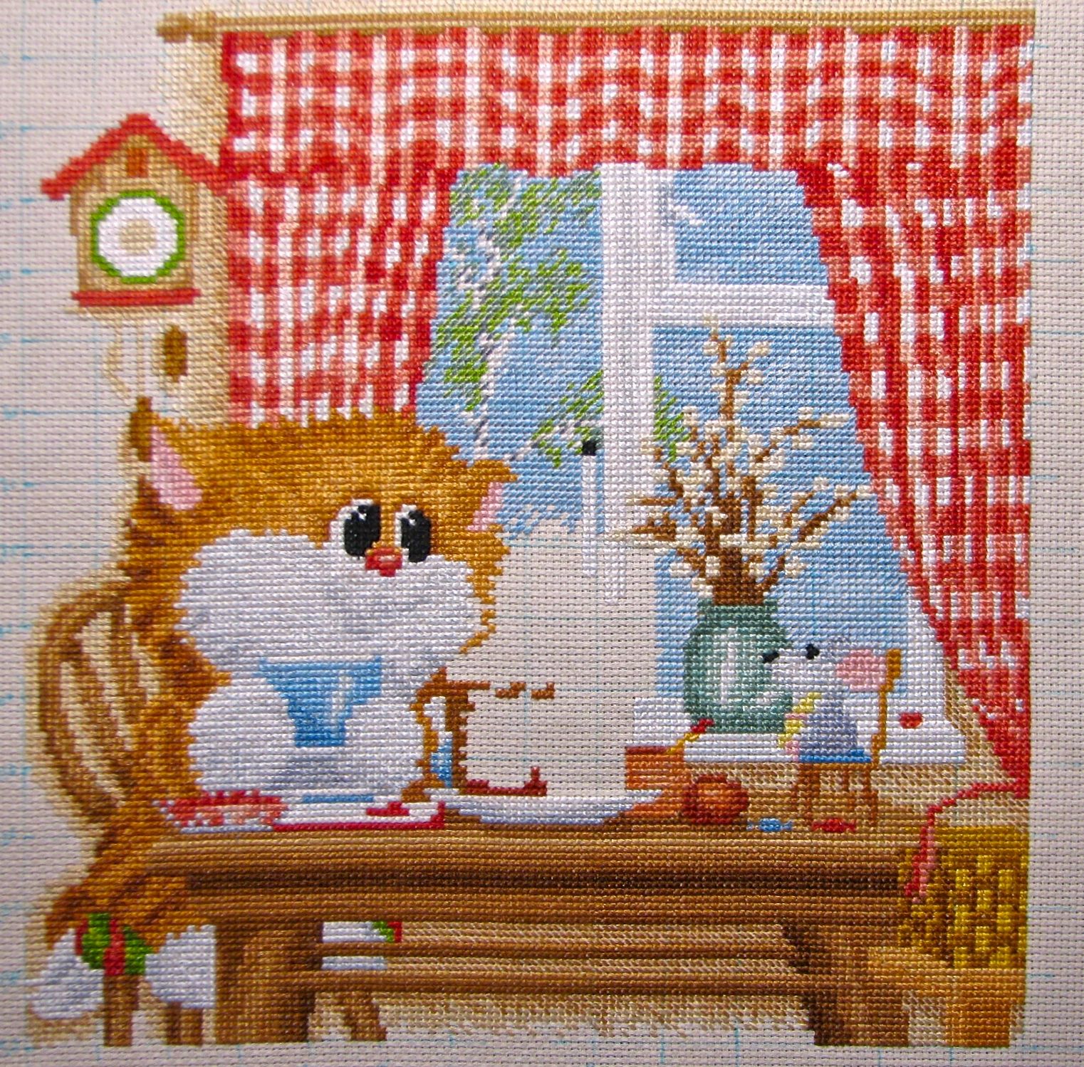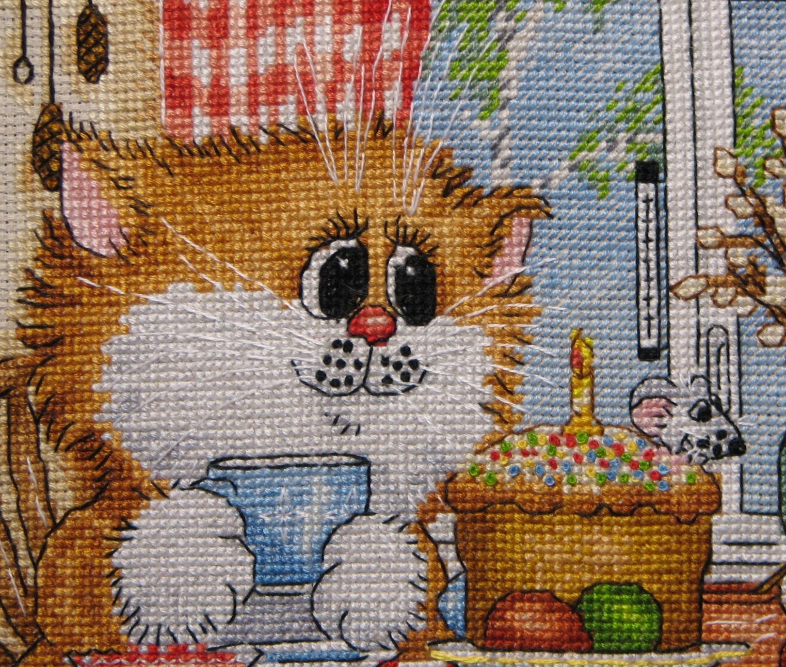 7 июля 2019 Всем добрый, добрый вечер! Только-только закончила ещё один лист "Котёнок и листья". В основном всё время ушло на котика. Его чудесная шубка - это мрак кромешный! Черно-серо-коричнево-бежевая гамма цветов всех оттенков, в том числе большое количество блендов, воплощена в небольшие раскиданные группы крестиков! Прямо - здравствуй, Kustom Krafts!!! Но зато шерстка смотрится очень натурально! Котику отбэкала только глазки и носик, усы и шерстку решила оставитьб на потом. Сэйко, махно, МамаЛё и 13 других сказали спасибо Поделиться сообщением Ссылка на сообщение
