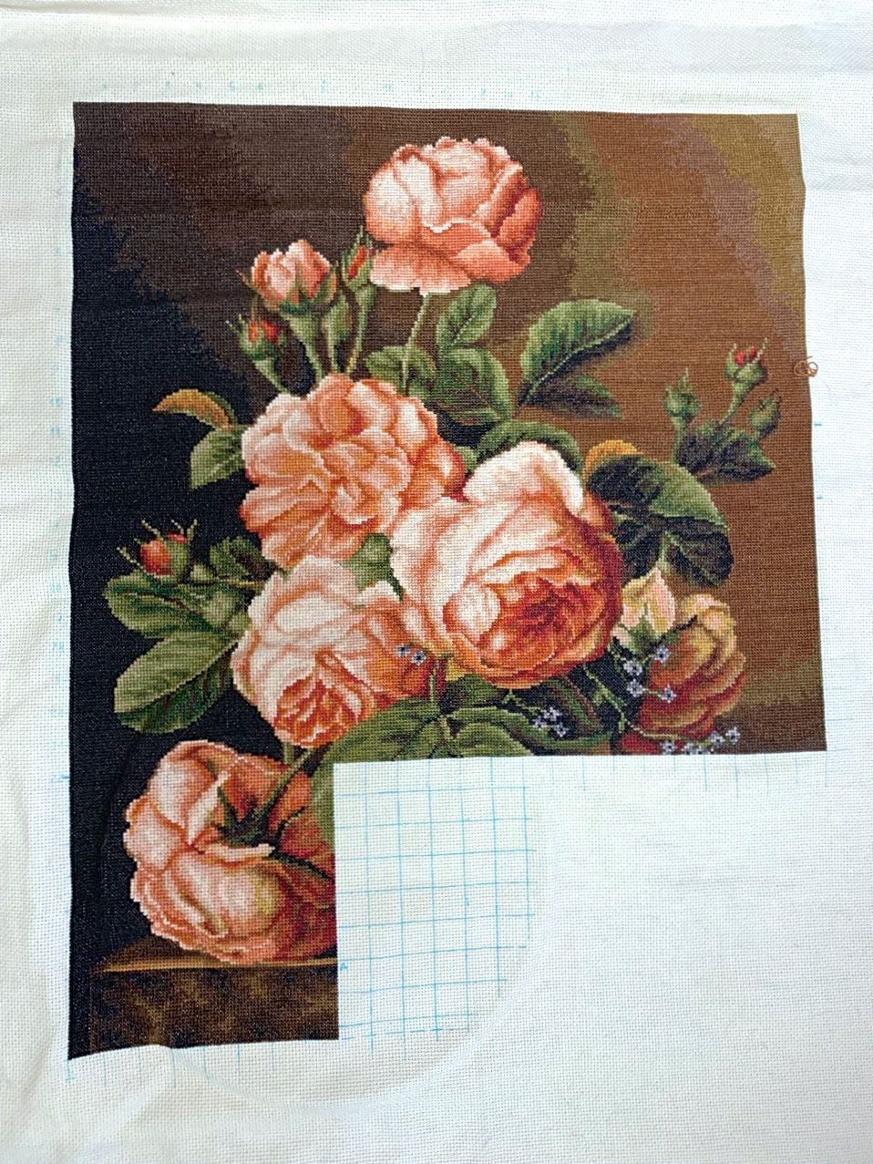 12 мая 2024 Медленно приближаюсь к окончанию работы. Полотно легло немного неровно, но на самом деле всё нормально, ничего не перекошено. Рассматривать эти розы спложное удовольствие! Они такие винтажные. Как на старой открытке. Этим мне работа и понравилась. Tata44, Bogdan, Сэйко и 6 других сказали спасибо Поделиться сообщением Ссылка на сообщение